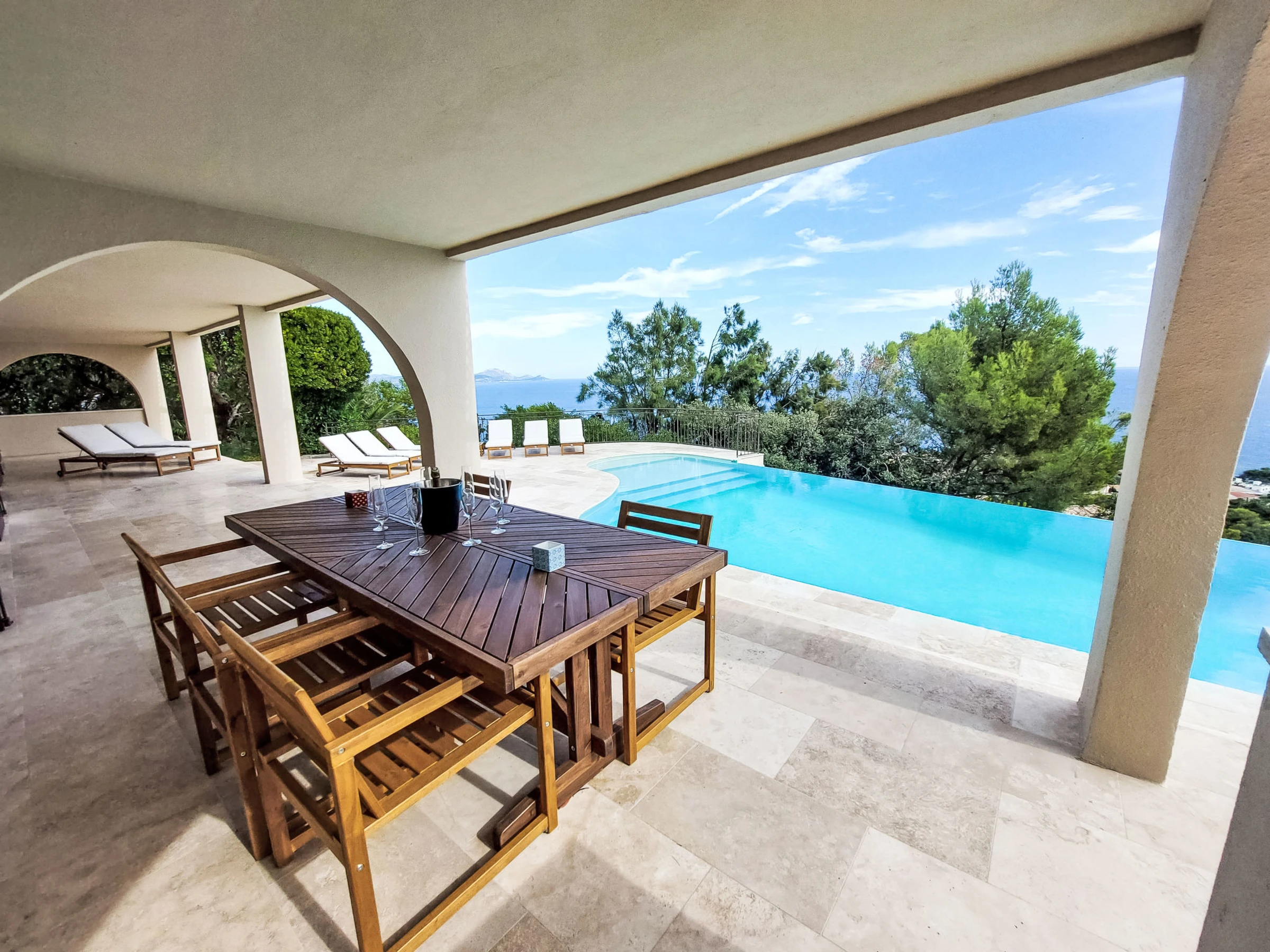 Villa "Odyssee", de 2 étages, année de construction 1965 en 2024. Dans le quartier d'Issambres, situation tranquille dans un quartier résidentiel, à 900 m de la mer, à 1 km de la plage. A usage privé: terrain 1'000 m2 (clôturé), jardin naturel 500 m2 (clôturé), piscine rectangulaire (10 x 3 m, profondeur 50 - 300 cm, disponibilité saisonnière: [hidden] - [hidden] avec marches intérieures et alarme de sécurité. Place de parking, garage individuel. Magasin d'alimentation 2 km, centre commercial 15 km, restaurant 2 km, boulangerie 3 km, arrêt de bus "Village Provencal" 2 km, plage de sable "La Pinède" 2.8 km plage de graviers "Calanque de Tardieu" 2.4 km, parc "Areca" 8 km, centre de plongée 3 km, centre thermal "Thalasso des Issambres" 3 km. Port plaisance 3.8 km, terrain de golf (18 trous) 17 km, ecole de voile 4 km, tennis 3 km, centre équestre 7 km, centre sportif 7 km, chemins de randonnées pédestres depuis la maison 2 km. Attractions à proximité: Aqualand, Lunapark 15 km, Frejus 16 km, Saint-Raphael 19 km, Ste Maxime 10 km, Saint-Tropez 25 km, Cannes 50 km. Les domaines skiables de renommée sont facilement accessibles: Auron, Isola 2000 155 km. Les lacs connus sont facilement accessibles: Lac de St Cassien 50 km, Lac du Du Verdon 95 km. Région de randonnées: Petites Maures 2 km, Estérel 25 km, Sentier du Litoral 1 km. Veuillez noter: voiture recommandée. Groupes de jeunes sur demande seulement. Certaines parties de la maison sont fermées et inoccupées. La remise des clés a lieu à l’agence de Saint-Aygulf, 6 km.