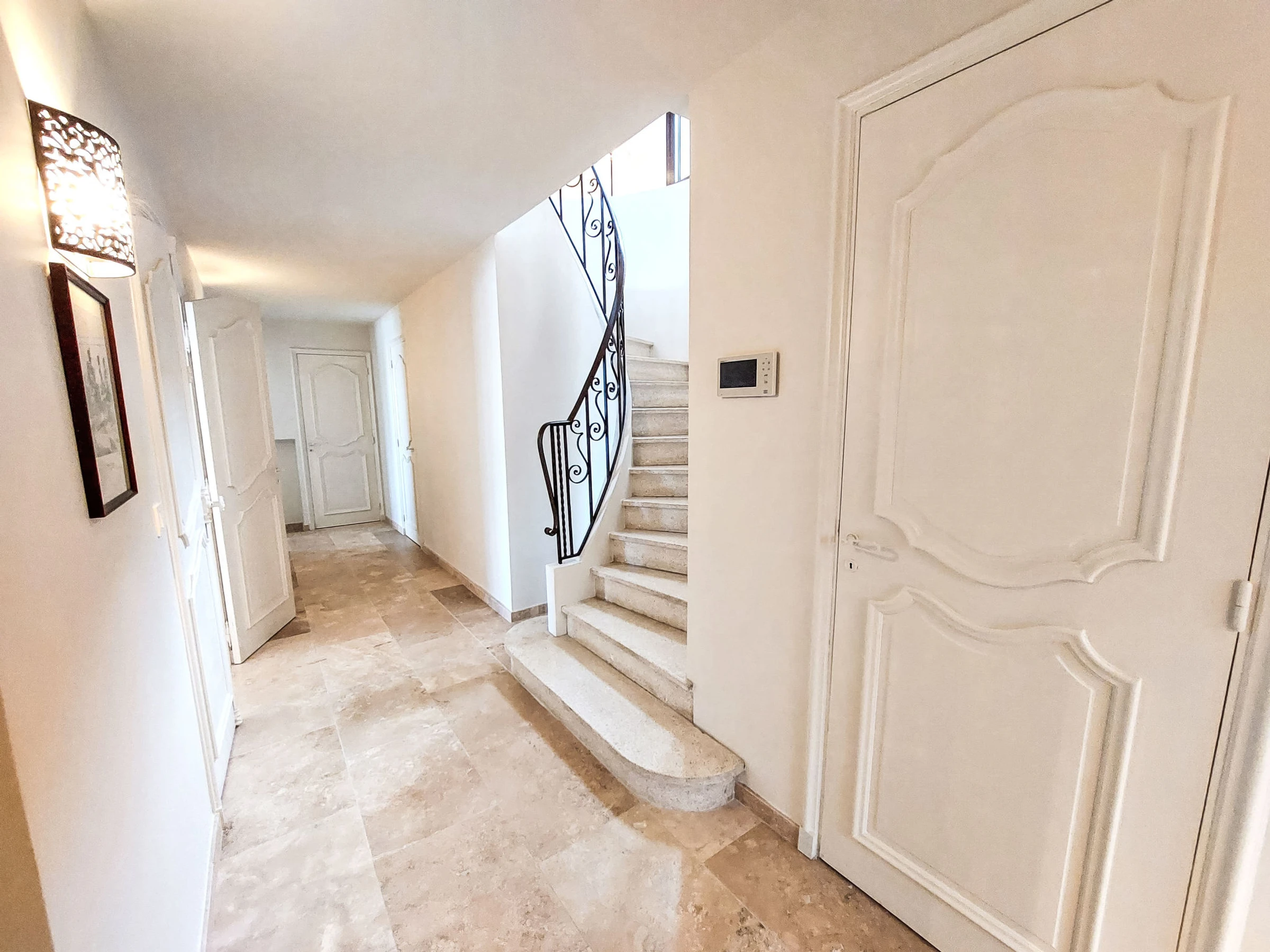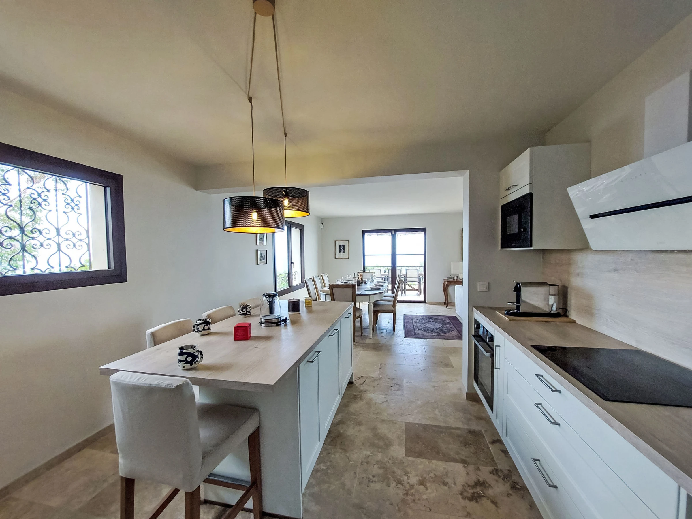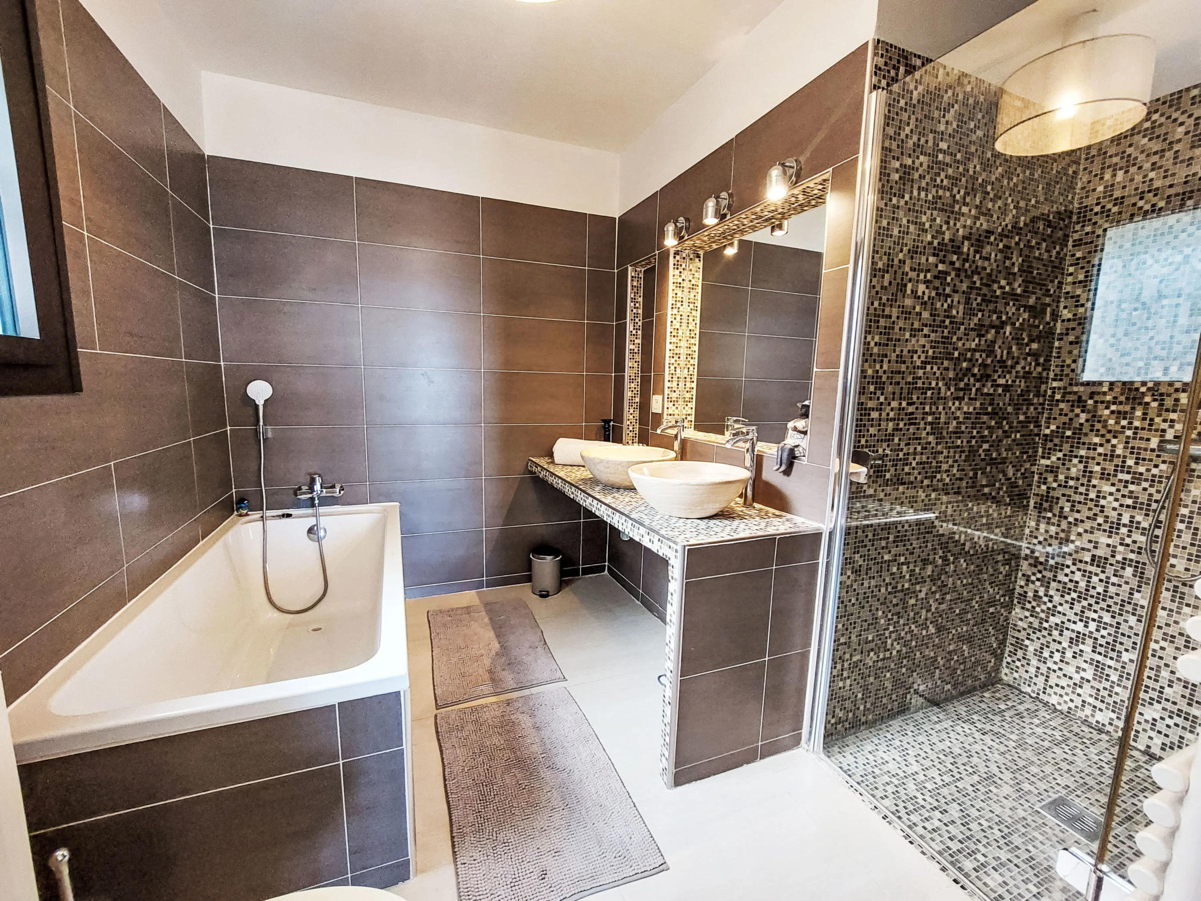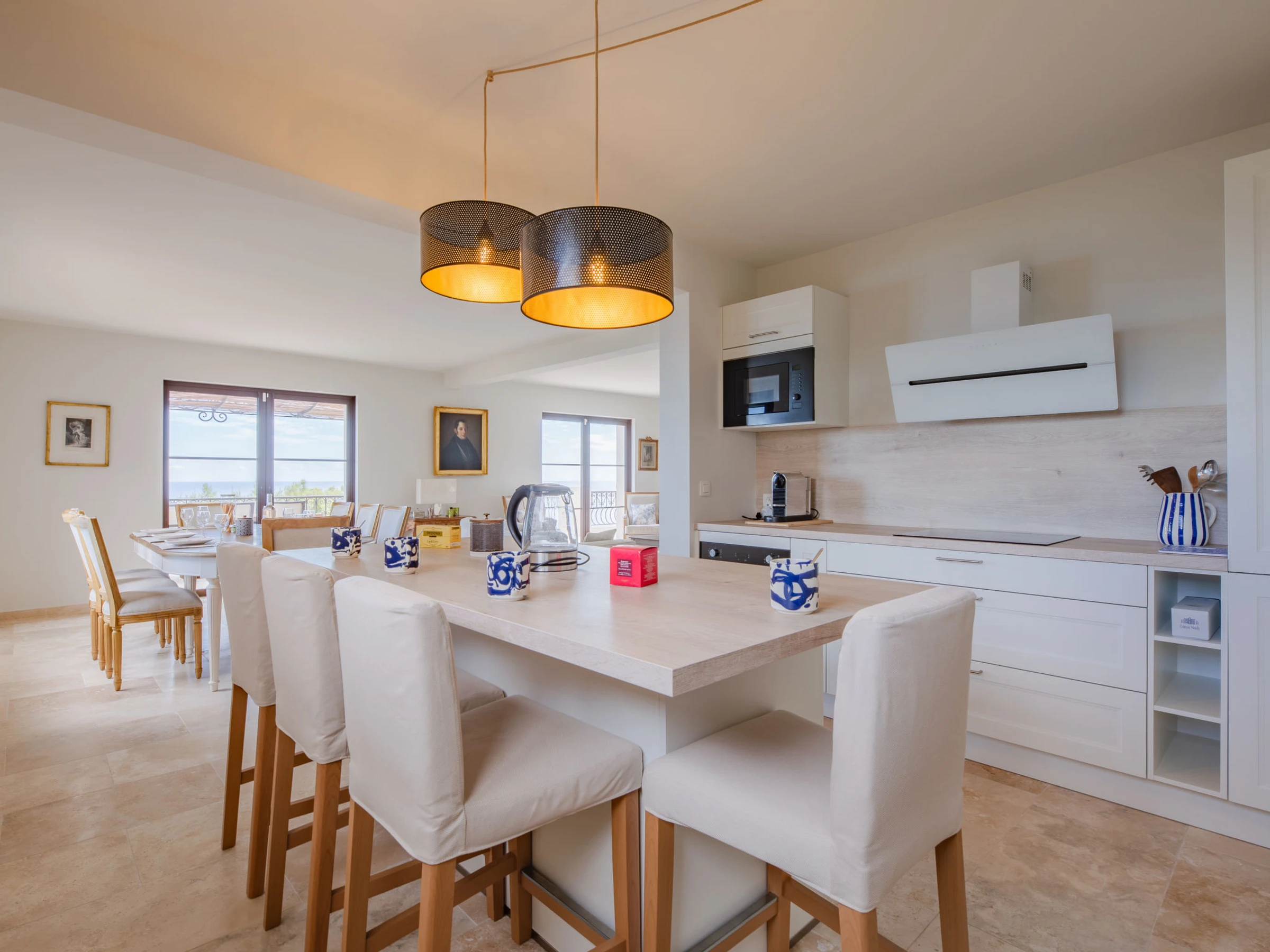 Villa 5 pièces 220 m2 sur 2 niveaux. Aménagement moderne: grand séjour/salle à manger avec baie vitrée avec TV (écran plat). Sortie sur la terrasse. 1 grande chambre avec 1 grand-lit (160 cm, longueur 200 cm), bain/douche/WC et double vasque. Sortie sur la terrasse. Grande cuisine ouverte (four, lave-vaisselle, 4 plaques à induction, grille-pain, bouilloire électrique, micro-ondes, congélateur, cafetière électrique, Capsules pour machine à café (Nespresso) (NON INCLUSES)) avec bar. WC séparé. Chauffage électrique. À l'étage inférieur: 1 grande chambre avec 1 grand-lit (160 cm, longueur 200 cm). Sortie sur la terrasse, sur la piscine. 1 grande chambre avec 1 grand-lit (1 x 160 cm, longueur 200 cm), lavabo. Sortie sur la terrasse, sur la piscine. 1 grande chambre avec 1 grand-lit (1 x 160 cm, longueur 200 cm), bain/douche. Sortie sur la terrasse, sur la piscine. Douche/WC. Chauffage électrique. Grande terrasse 300 m2, situation sud. Meubles de terrasse, mobilier de balcon, chaises longues (8). Vue panoramique sur la mer. A disposition: lave-linge, fer à repasser, chaise haute pour enfant, lit bébé (en sus), sèche-cheveux. Internet (Connexion WIFI, gratuit). Place de parking (1 Voiture). Veuillez noter: maison non-fumeur. Détecteur de fumée. Annonce d'un particulier (art 155, IV du CGI). [hidden]