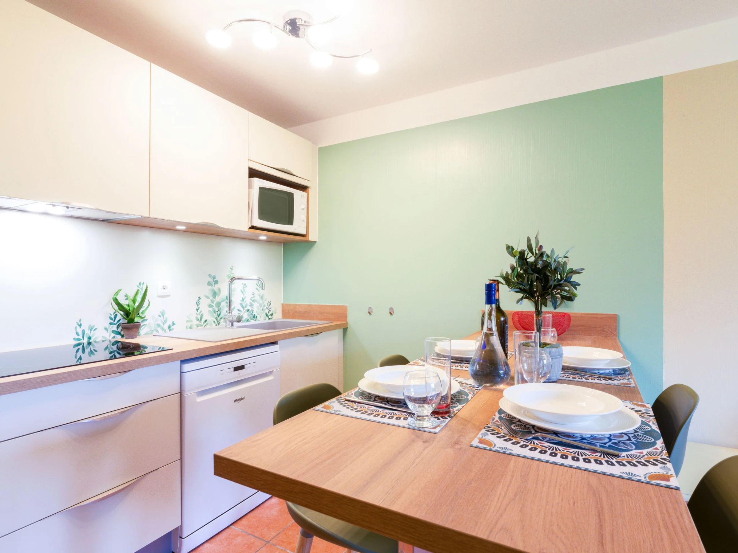 Apt 2 pièces 35 m2, au rez-de-chaussée. Aménagement agréable: séjour/salle à manger avec 2 lits (80 cm, longueur 190 cm), TV (écran plat). Sortie sur la terrasse. 1 chambre avec Dressing avec 1 lit double (1 x 140 cm, longueur 190 cm). Sortie sur la terrasse. Cuisine ouverte (lave-vaisselle, 1 plaques à induction, 3 feux, grille-pain, bouilloire électrique, micro-ondes, cafetière électrique). Salle de bains, douche, WC séparé. Chauffage électrique. Terrasse 4 m2. Meubles de terrasse, barbecue électrique. A disposition: lave-linge. Internet (Connexion WIFI, en sus). Place de parking. Veuillez noter: logement non-fumeur. Détecteur de fumée. Annonce d'un particulier  (art 155, IV du CGI). [hidden]
