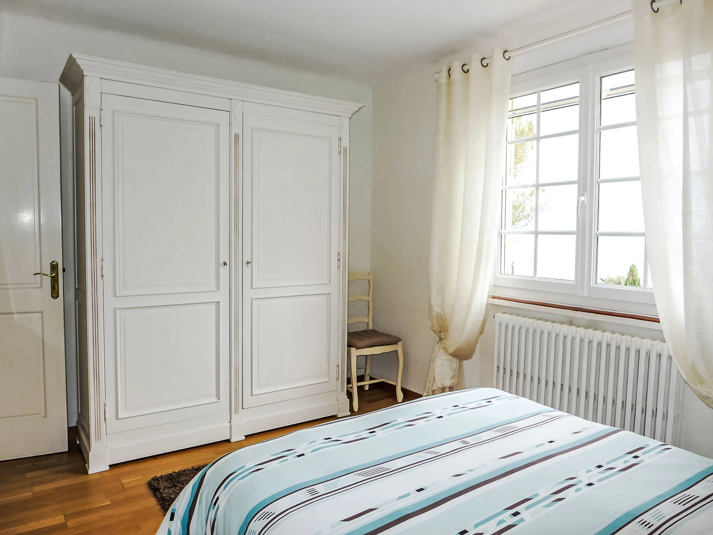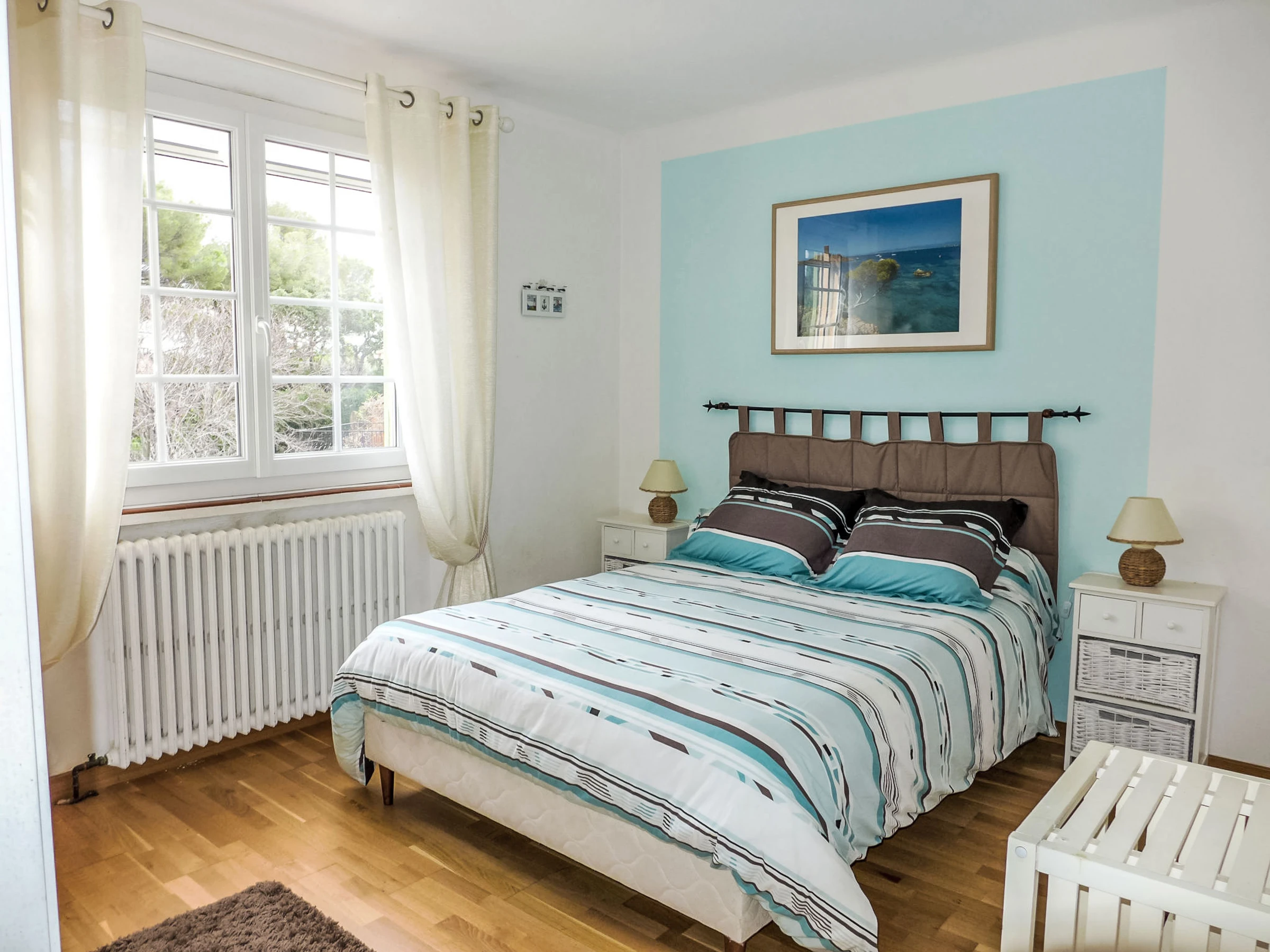 Maison 4 pièces 120 m2. Aménagement confortable: salle à manger avec TV (écran plat), air-conditionné. Sortie sur la terrasse. 1 chambre avec 1 grand-lit (140 cm, longueur 190 cm), air-conditionné. 1 chambre avec 1 grand-lit (160 cm, longueur 200 cm), bain/WC et air-conditionné. 1 chambre avec 1 grand-lit (1 x 140 cm, longueur 190 cm). Cuisine (four, lave-vaisselle, 4 plaques vitrocéramiques, grille-pain, bouilloire électrique, micro-ondes, congélateur, cafetière électrique) avec table pour les repas. Sortie sur la terrasse. Douche, WC séparé. Chauffage. Terrasse, situation est et situation sud. Meubles de terrasse. A disposition: lave-linge, fer à repasser, sèche-cheveux. Internet (Connexion WIFI, gratuit). Place de parking (cloturée, 1 Voiture). Veuillez noter: maximum 1 animal/ chien autorisé. Détecteur de fumée. [hidden]