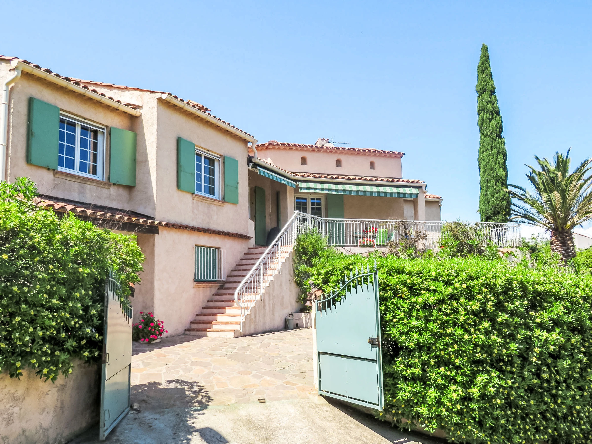 Maison individuelle "Carpe Diem". Dans le quartier de La Gaillarde, en bordure de la localité, à 3 km du centre de St Aygulf en-dehors de la localité, à 4 km du centre des Issambres, situation ensoleillée, surélevée, à 150 m de la mer, à 200 m de la plage. A usage privé: terrain à l'état naturel 1'200 m2 (clôturé), place de parking sur le terrain. Magasin d'alimentation 300 m, supermarché 3 km, centre commercial 7 km, restaurant, boulangerie 300 m, centre à 15 minutes à pieds, arrêt de bus "La Gaillarde" 200 m, gare ferroviaire "Fréjus" 8 km, plage de sable "la Gaillarde" 250 m, parc "Areca" 3 km, centre de plongée 3 km, centre thermal "Thalasso des Issambres" 5 km, lac St Cassien 45 km. Port plaisance 3.5 km, terrain de golf (18 trous) 13 km, ecole de voile 8 km, tennis 3 km, golf miniature 12 km, centre équestre 6 km, centre sportif 3 km, chemins de randonnées pédestres depuis la maison 2 km. Attractions à proximité: Aqualand, Luna Park 7 km, Fréjus 7 km, Saint Raphaël 9 km, Saint Tropez 30 km, Cannes 50 km. Les domaines skiables de renommée sont facilement accessibles: Auron 150 km, Isola 2000 150 km. Les lacs connus sont facilement accessibles: Lac de St Cassien 45 km, Lac du Du Verdon 90 km. Région de randonnées: Petites Maures 2 km, Estérel 20 km, Sentier du Litoral 1 km. Veuillez noter: voiture recommandée. Le propriétaire n'accepte pas les groupes de jeunes. Certaines parties de la maison sont fermées et inoccupées. La remise des clés a lieu à l’agence de Saint Aygulf, 3 km.