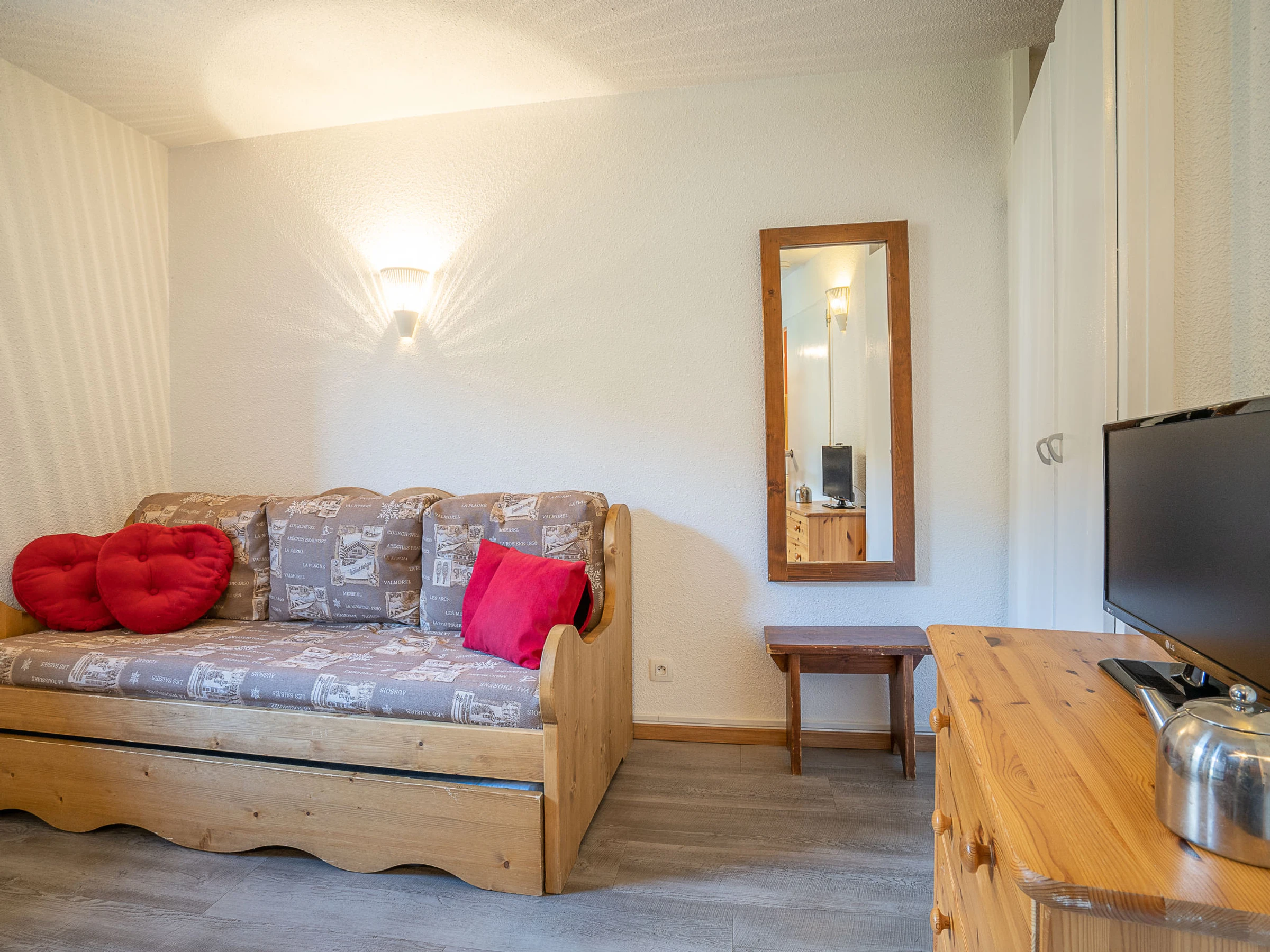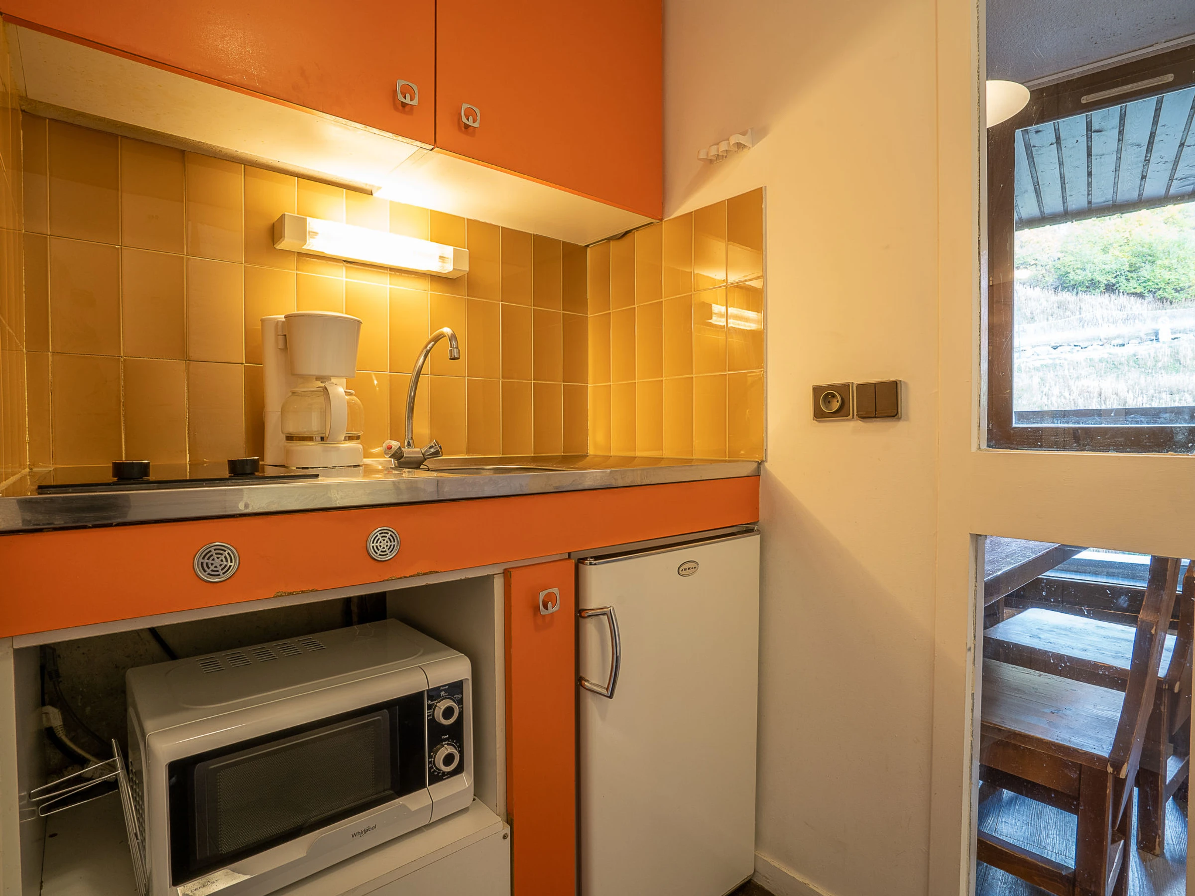 "Armoise 73" studio 18 m2 au 6ème étage. Aménagement agréable: séjour/salle à manger avec 1 lit gigogne (2 pers. 2 x 80 cm, longueur [hidden] cm), TV (écran plat). Sortie sur le balcon. Coin cuisine dans l'entrée (2 plaques de cuisson, bouilloire électrique, micro-ondes, cafetière électrique). Douche/WC. Chauffage électrique. Balcon, situation nord-est. A disposition: Internet (Connexion WIFI, en sus). Veuillez noter: logement non-fumeur. Maximum 1 animal/ chien autorisé. Détecteur de fumée. [hidden]