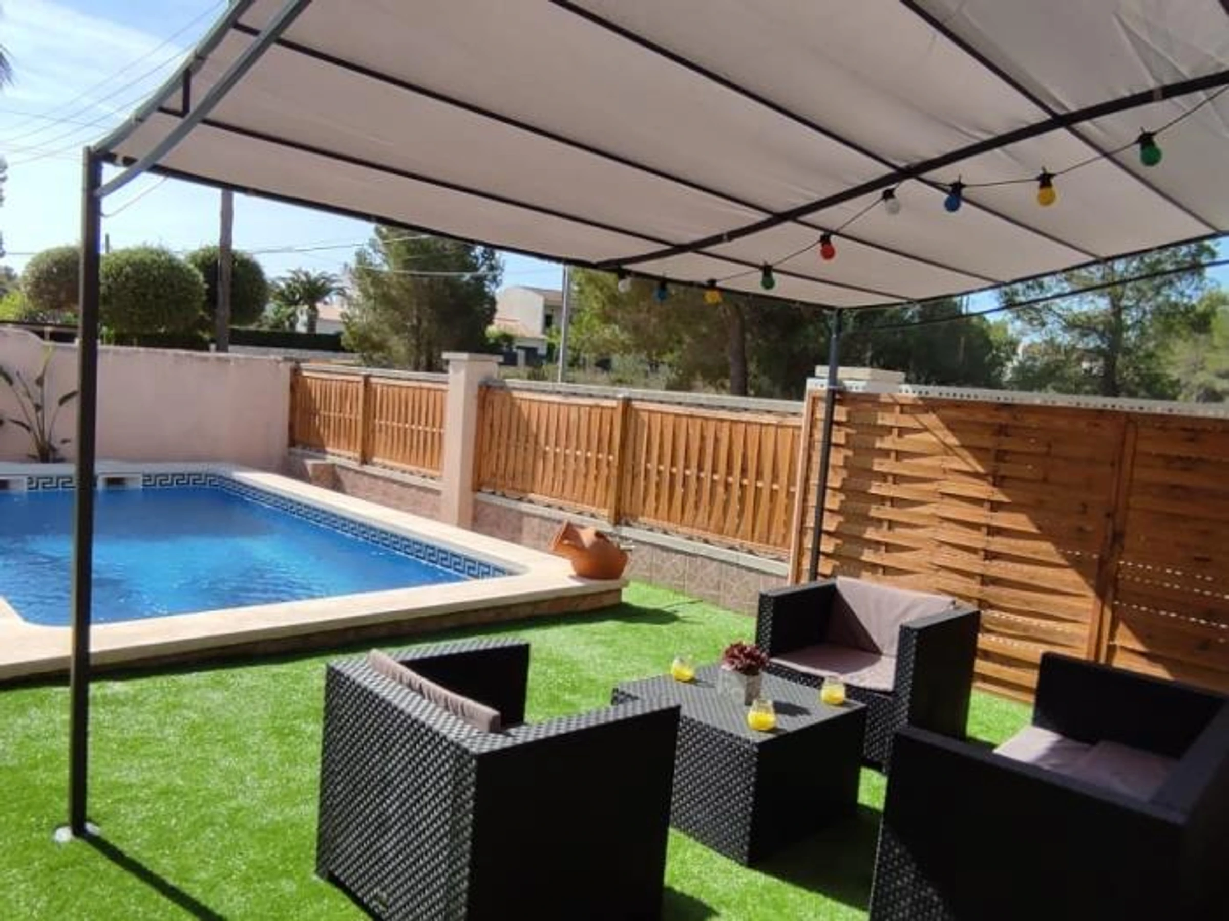 Dimensiones de la piscina: 7 x 3 x 1,5 aprox.Tipo de cafetera: SenseoBarbacoa: GasPlancha: NoVentiladores adicionales disponibles en el sitio: 3