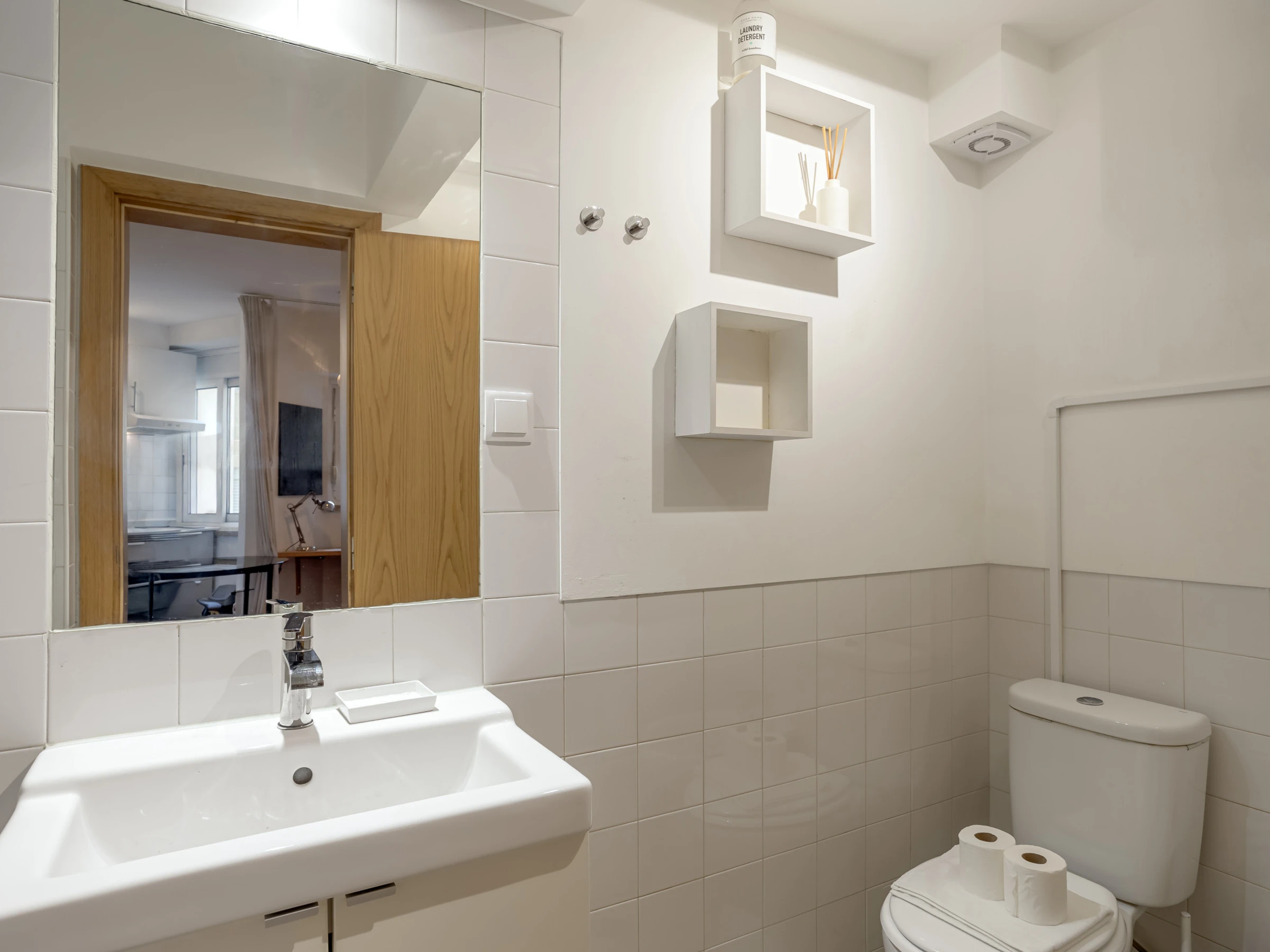 L'appartement dispose d'un Wi-Fi haut débit, essentiel pour les voyageurs d'affaires ou pour rester connecté pendant le voyage. La salle de bain complète avec baignoire offre une touche de confort.