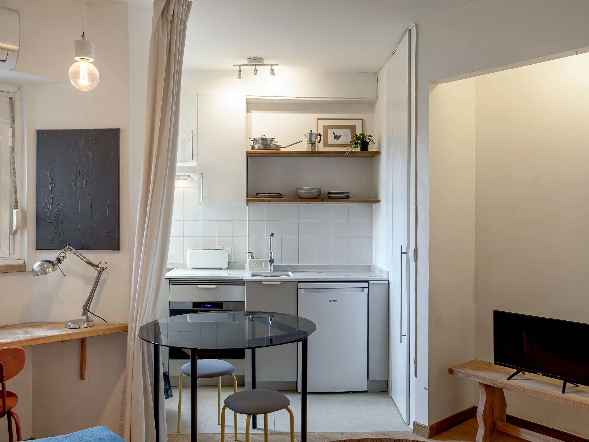 L'espace dispose d'une chambre élégante équipée d'un lit double confortable, idéal pour se reposer après une journée d'exploration. La climatisation garantit une température agréable à toute époque de l'année, créant un environnement parfait pour se détendre.