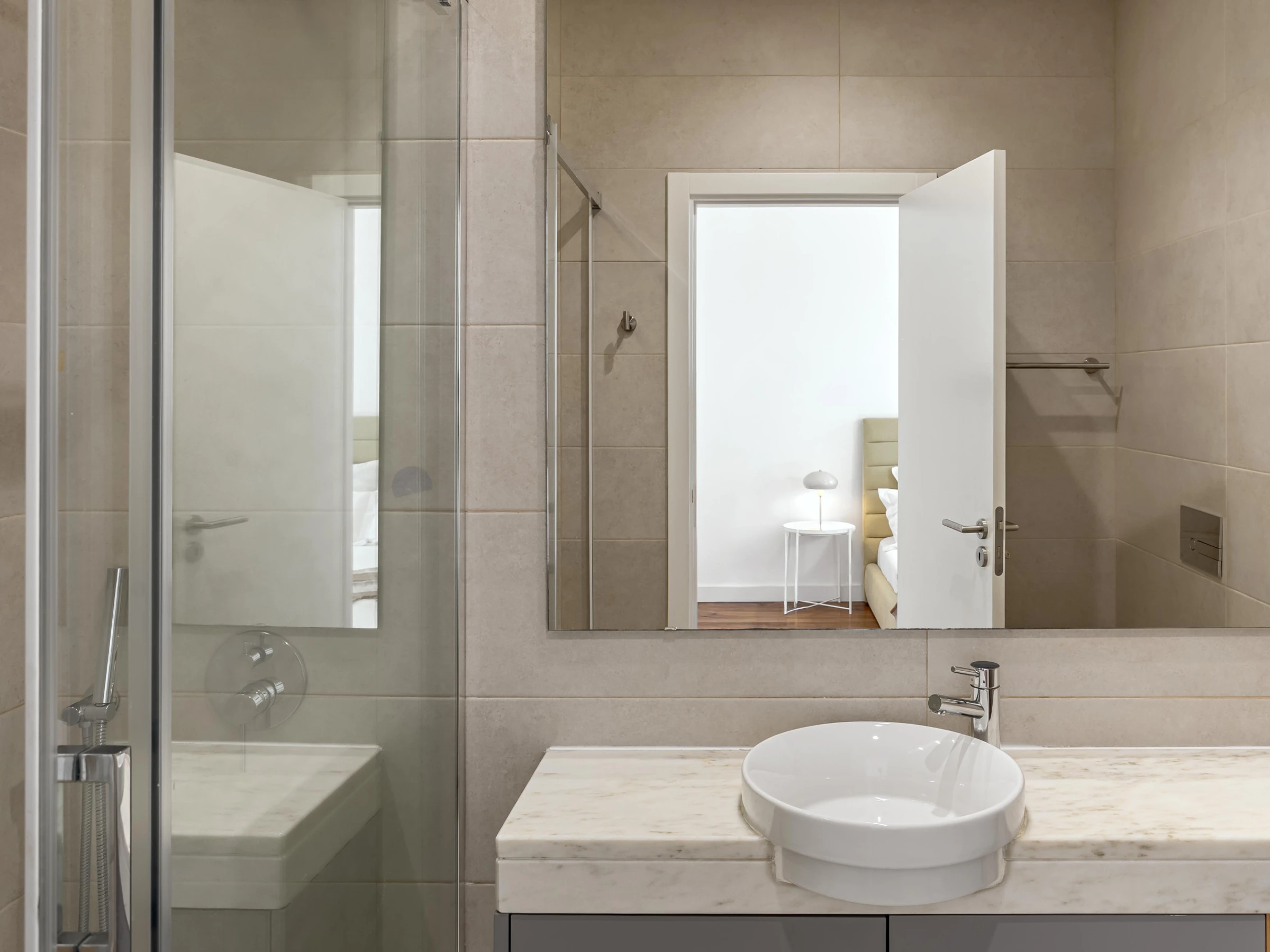 Cet appartement accueillant dispose de deux chambres spacieuses, chacune équipée d'un lit double confortable, idéal pour se reposer après une journée d'exploration dans la ville. Le logement comprend deux salles de bain complètes, toutes deux avec douche, garantissant intimité et commodité pour tous les invités.
