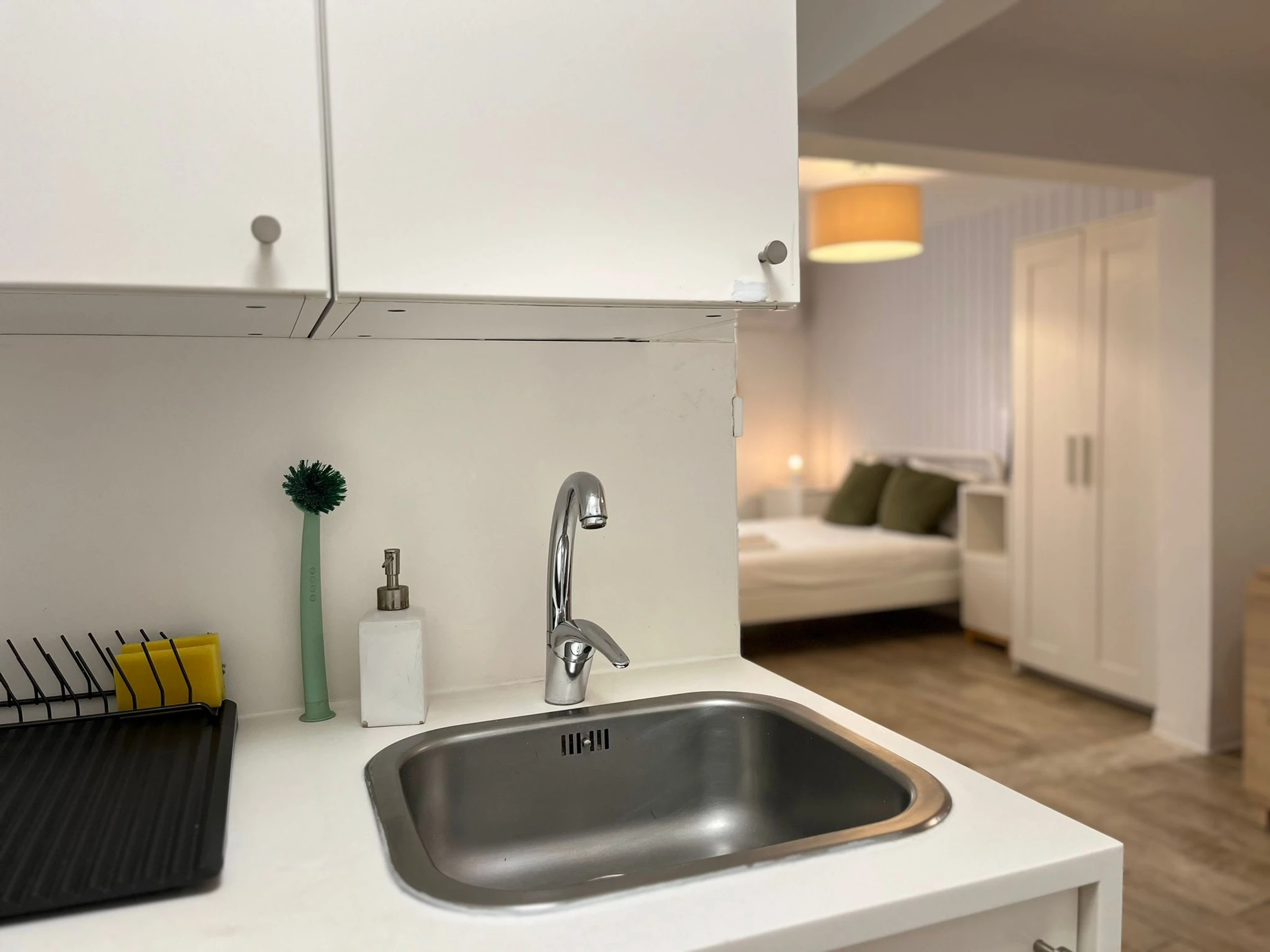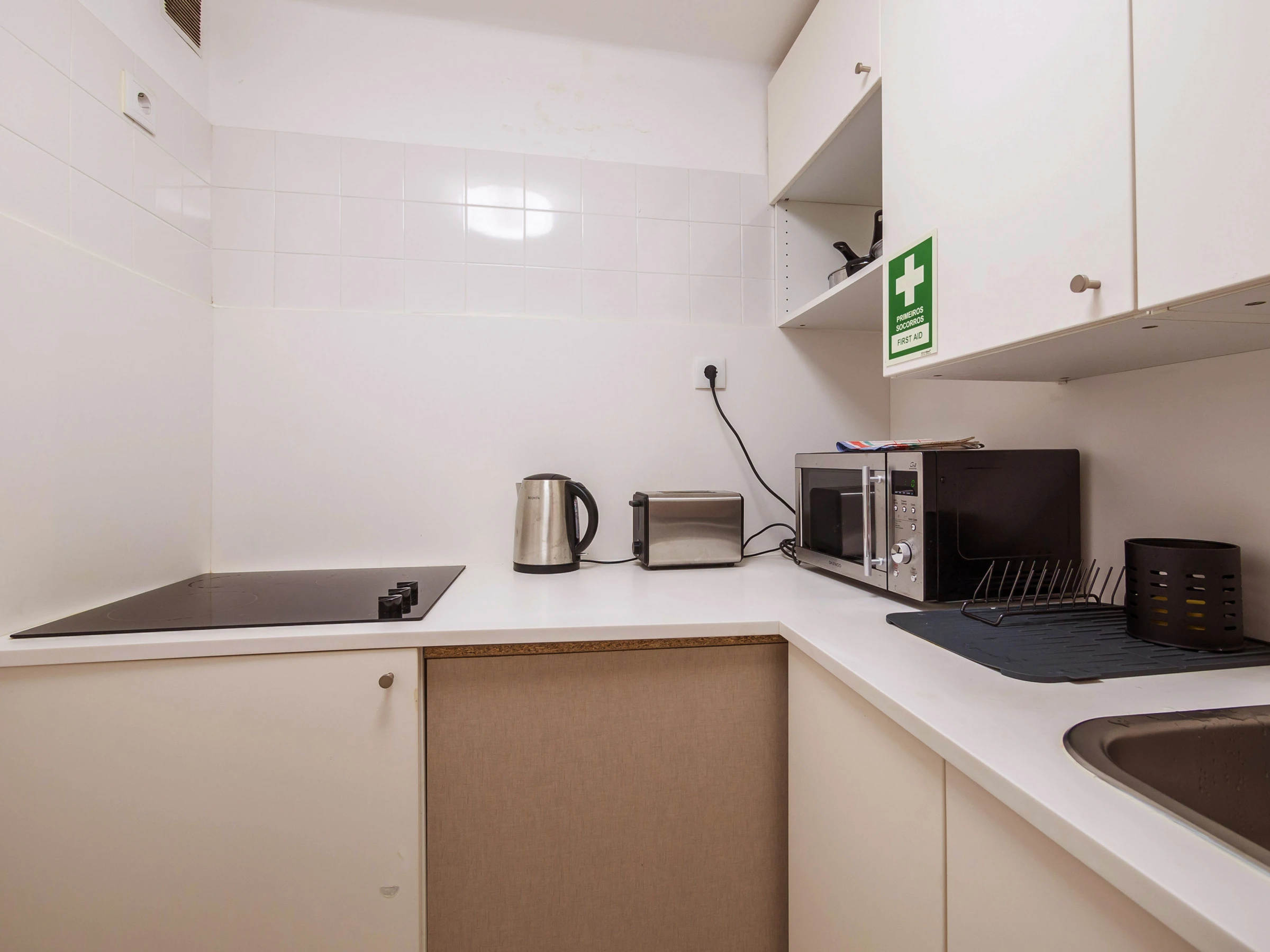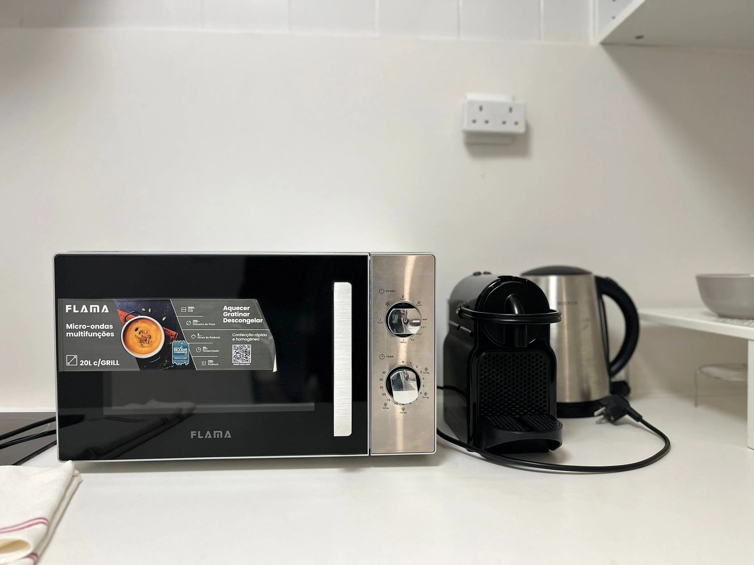La cuisine indépendante, à vitrocéramique, est équipée avec réfrigérateur, micro-ondes, four, congélateur, vaisselle/couverts, ustensiles/cuisine, friteuse, grille pain et bouilloire.