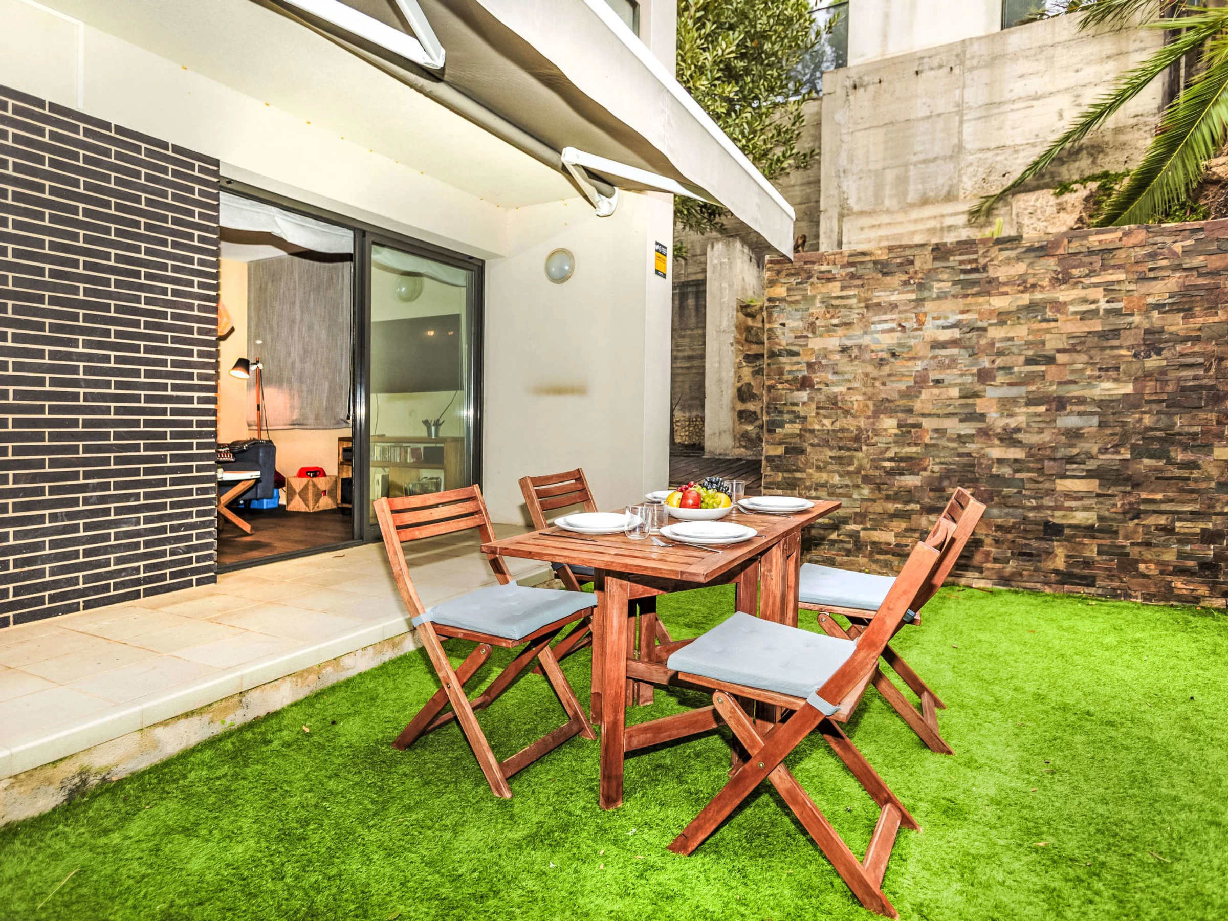 "Les Aigües", apt 2 pièces 50 m2, au rez-de-chaussée. Aménagement fonctionnel et plaisant: séjour/salle à manger avec 1 divan-lit, TV et Télévision numérique (écran plat). Sortie sur le jardinet. 1 chambre avec 1 grand-lit (1 x 135 cm), chauffage électrique. Cuisine ouverte (four, lave-vaisselle, 4 plaques vitrocéramiques, micro-ondes, cafetière électrique). Douche/WC. Air-conditionné. Jardinet 40 m2. Pas de vue. A disposition: lave-linge, fer à repasser, sèche-cheveux. Internet (Connexion WIFI, gratuit). Place de parking No 1. Veuillez noter: TV seulement ES. Sans ascenseur. [hidden] // Reg. Nr.: ESFCTU00001702000032926000000000000000000HUTG-[hidden]