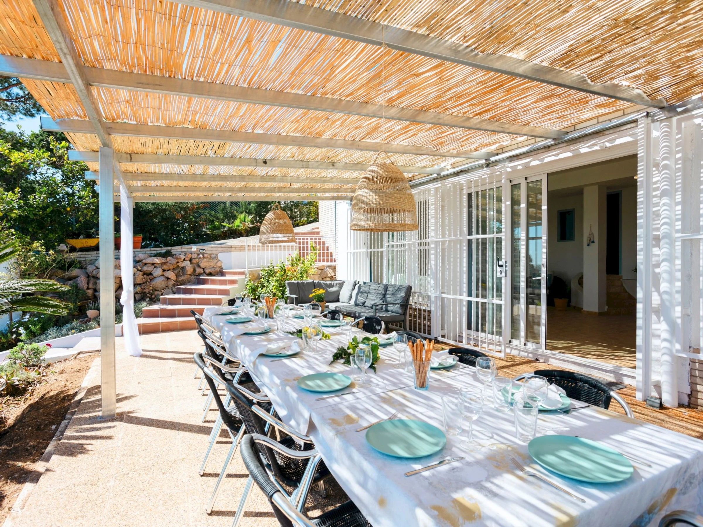 "Lemon Azul", villa 10 pièces 320 m2 sur 3 niveaux. Spacieux et clair, aménagement très fonctionnel et confortable: séjour/salle à manger. 1 chambre double avec 1 grand-lit (180 cm, longueur 200 cm), bain/douche/WC et air-conditionné. Cuisine ouverte 60 m2 (four, lave-vaisselle, 4 plaques à induction, grille-pain, bouilloire électrique, micro-ondes, cafetière électrique) avec Télévision numérique. Sortie pergola, sur le jardinet, sur la piscine. Pas de chauffage. À l'étage supérieur: séjour/salle à manger avec Télévision numérique et air-conditionné. Sortie sur la terrasse. 1 chambre avec 2 lits (90 cm, longueur 190 cm), air-conditionné. 2 chambres doubles, chaque chambre avec: 2 lits (110 cm, longueur 220 cm), ventilateur. Cuisine ouverte (4 plaques à induction, bouilloire électrique, cafetière électrique). Sortie sur la terrasse, sur le jardinet, sur la piscine. Douche/WC. 2ème étage: séjour/salle à manger avec table pour les repas, Télévision numérique et air-conditionné. Sortie sur la terrasse. 2 chambres, chaque chambre avec: 2 lits (90 cm, longueur 190 cm). 1 chambre double avec 1 grand-lit (180 cm, longueur 200 cm), douche/WC et ventilateur. Cuisine (four, lave-vaisselle, 4 plaques à induction, grille-pain, bouilloire électrique, micro-ondes, cafetière électrique). Sortie sur la terrasse. Douche/WC. [hidden] // Reg. Nr.: ESFCTU00001701300047312500000000000000[hidden]-901