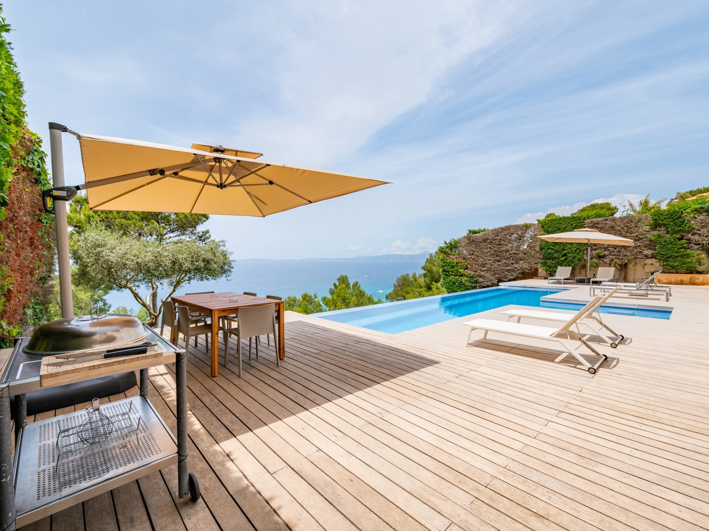 Elle dispose de jardin, mobilier de jardin, clôture, terrasse, lave-linge, sèche-linge, barbecue, cheminée, fer à repasser, accès internet (wifi), sèche-cheveux, balcon, salle de sport, sauna, jacuzzi, chauffage pompe à chaleur, climatisation, piscine privée.