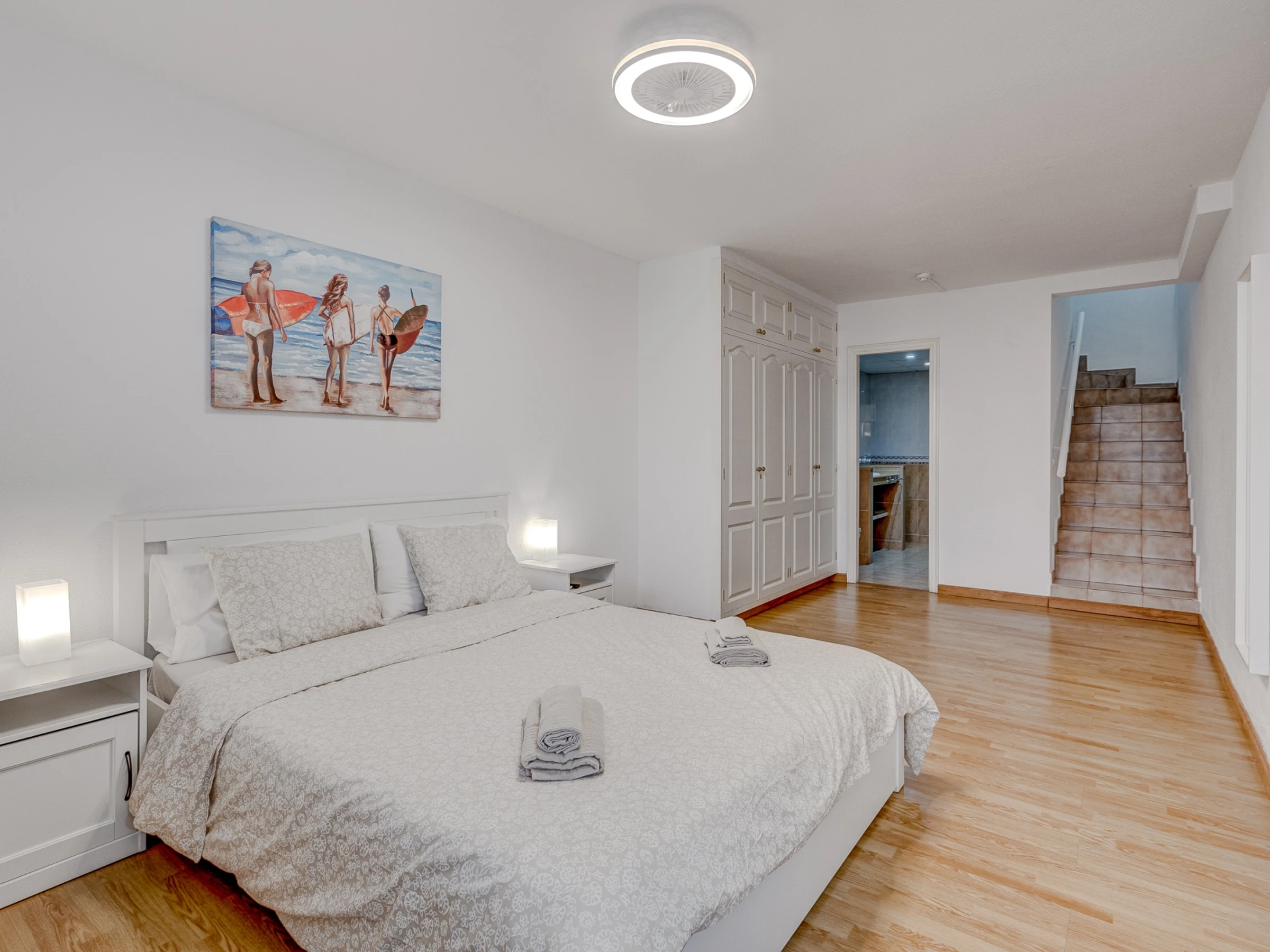 Ce spacieux appartement en duplex se situe dans la résidence prisée Castle Harbour à Los Cristianos. Il offre confort, espace et d'excellentes prestations pour un séjour relaxant à Tenerife. À seulement 15 minutes de l'aéroport en voiture et à quelques minutes de la plage, c'est le choix idéal pour les familles et les groupes en quête de confort et d'espace pour se détendre.