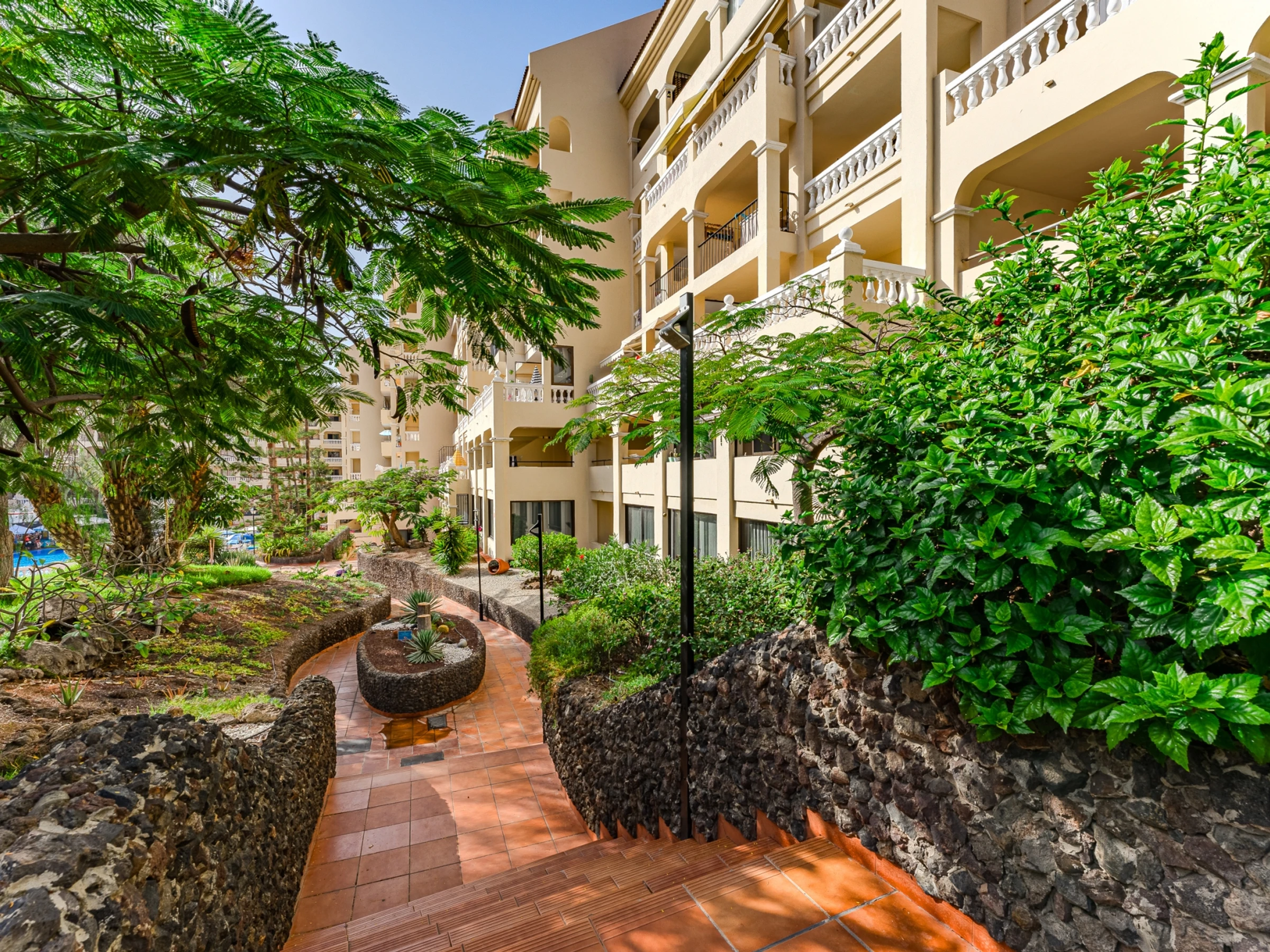 Les résidents pourront profiter de la piscine commune chauffée, l'un des atouts majeurs de la résidence Castle Harbour, ainsi que des terrasses ensoleillées et des espaces communs bien entretenus. L'emplacement à Los Cristianos est excellent, à proximité des plages, de la promenade du front de mer, des restaurants, des cafés et des commerces. La plage de Los Cristianos, la plage de Las Vistas, le port et les promenades côtières sont à proximité, tandis que des attractions telles que Siam Park, Aqualand et les zones de loisirs de Costa Adeje sont accessibles en quelques minutes de voiture. Un pied-à-terre spacieux et bien situé pour des vacances en famille ou un séjour plus long.