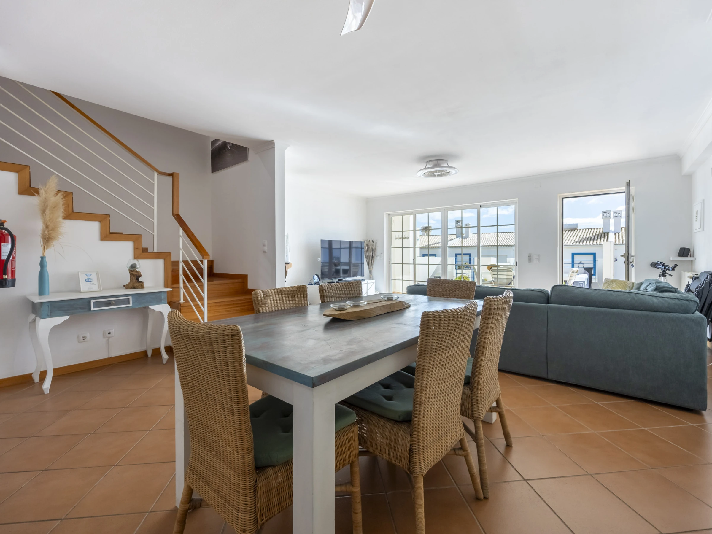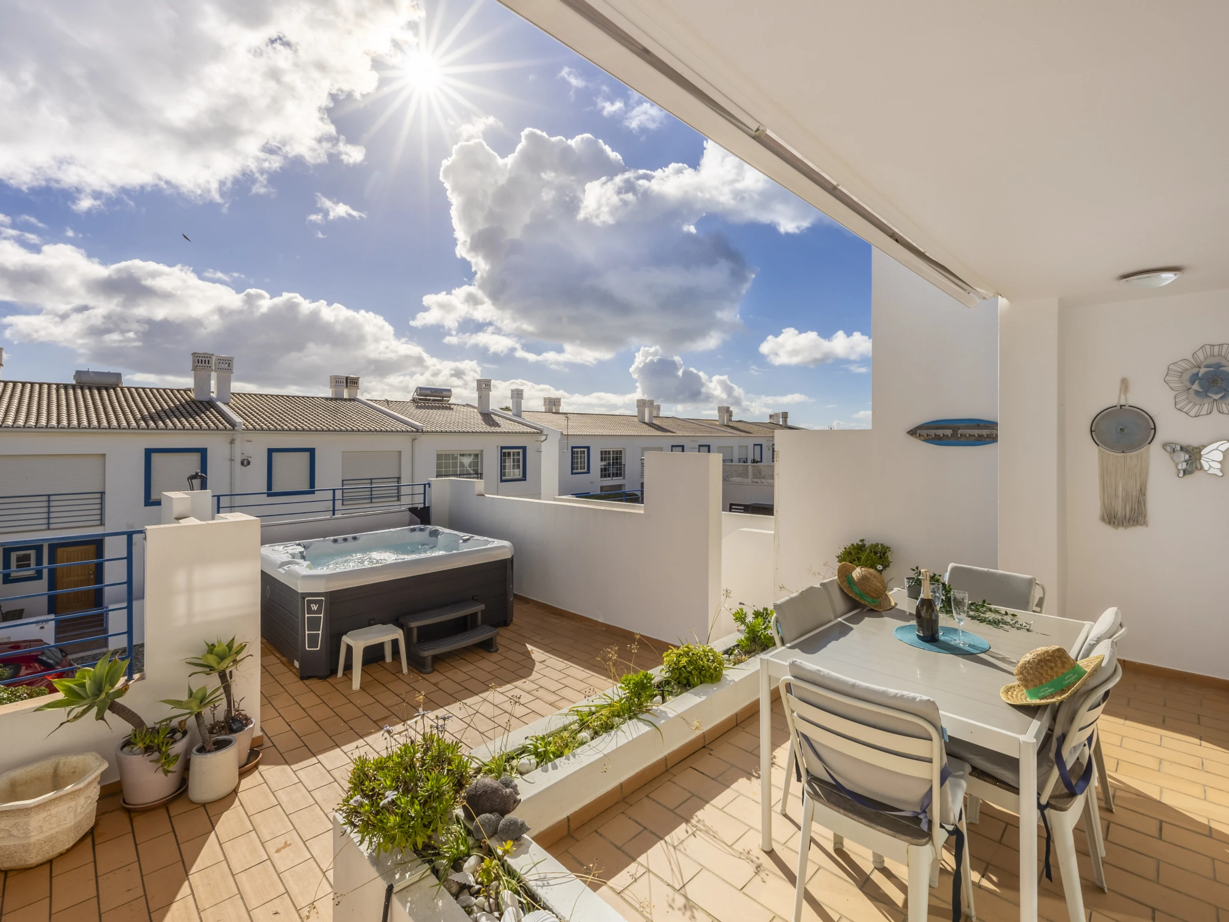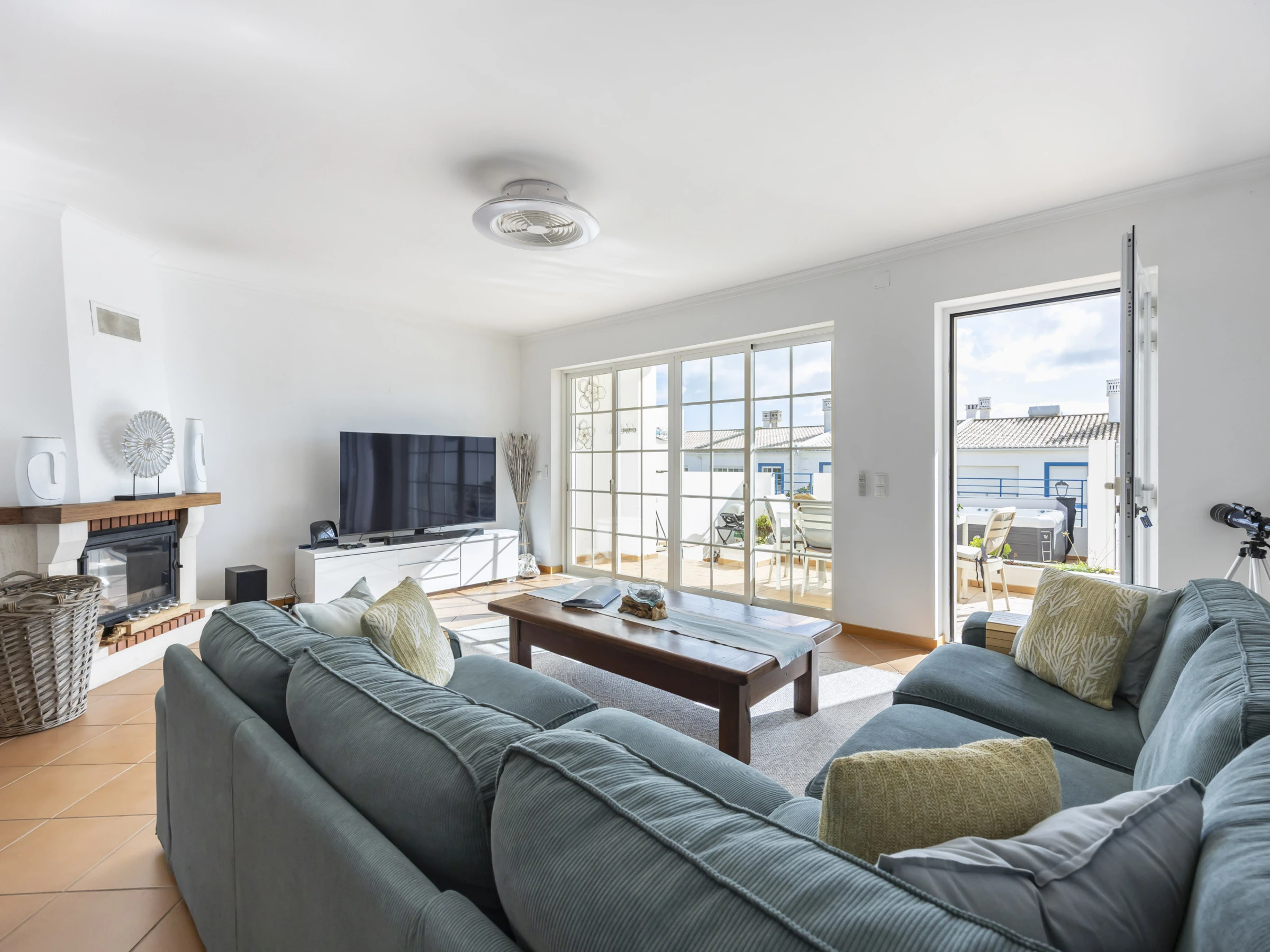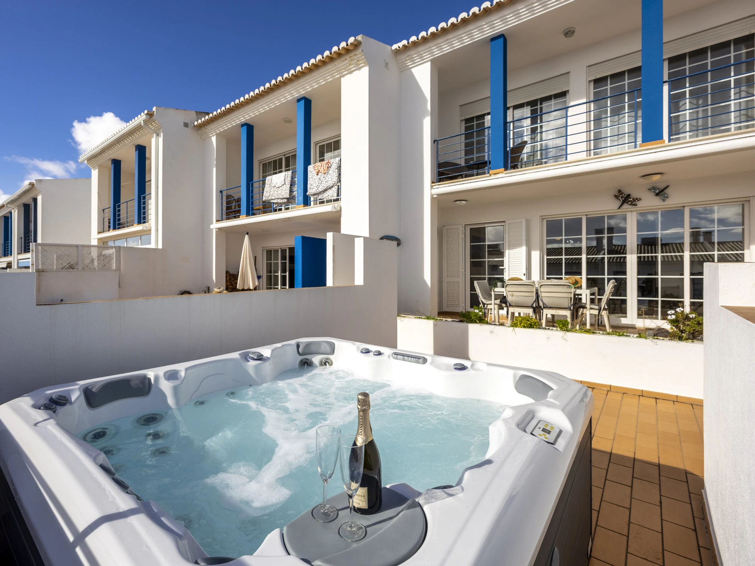 Elle dispose de mobilier de jardin, clôture, 20 m² de terrasse, lave-linge, barbecue, cheminée, fer à repasser, accès internet (wifi), sèche-cheveux, balcon, spa, chauffage électrique, parking extérieur bâtiment proche, 4 ventilateurs, 1 Télévision, tv satellite (Langues: Anglais).