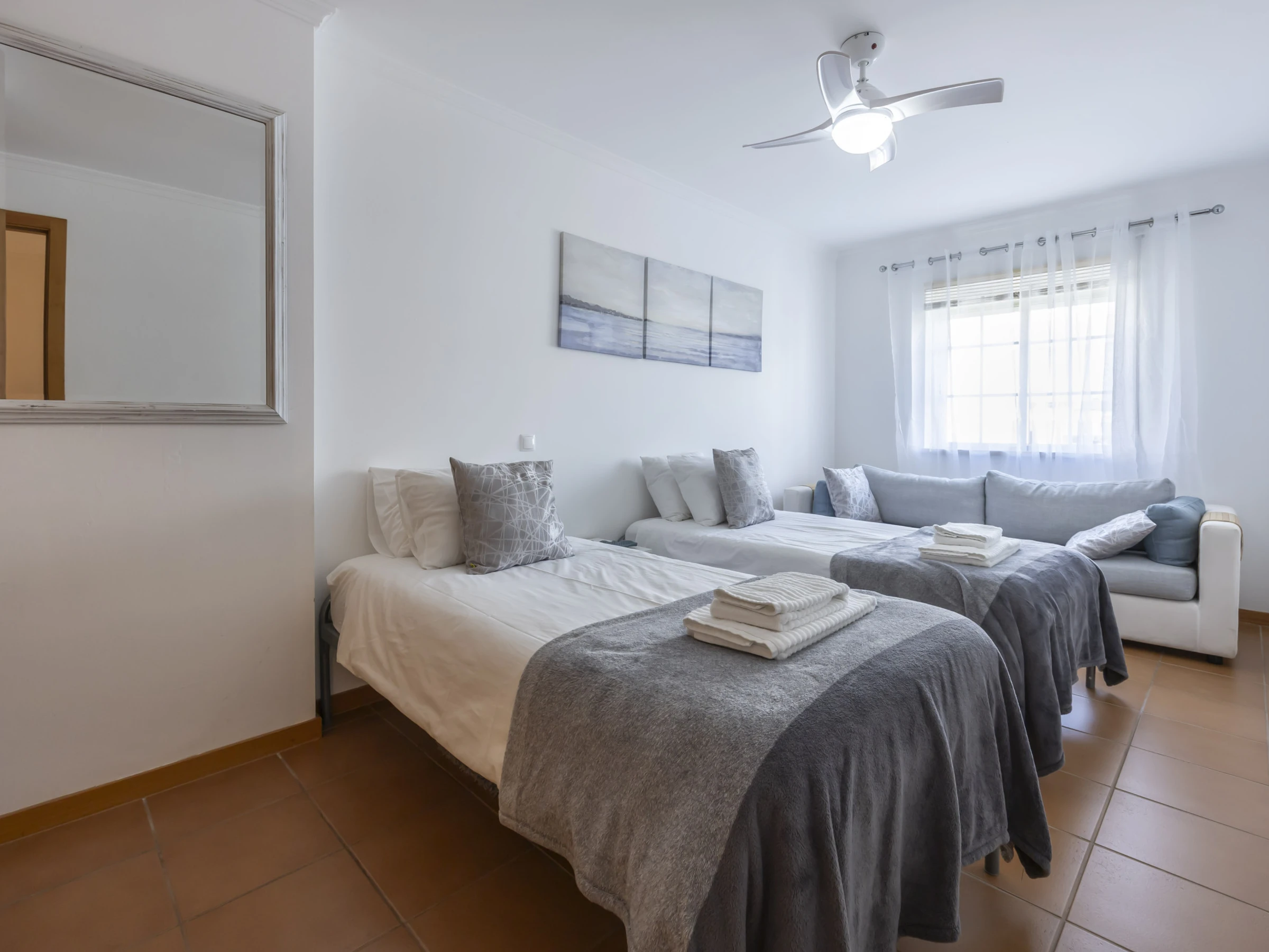 Logement de 150 m² accueillant et très lumineux, avec vue sur la mer et la montagne.