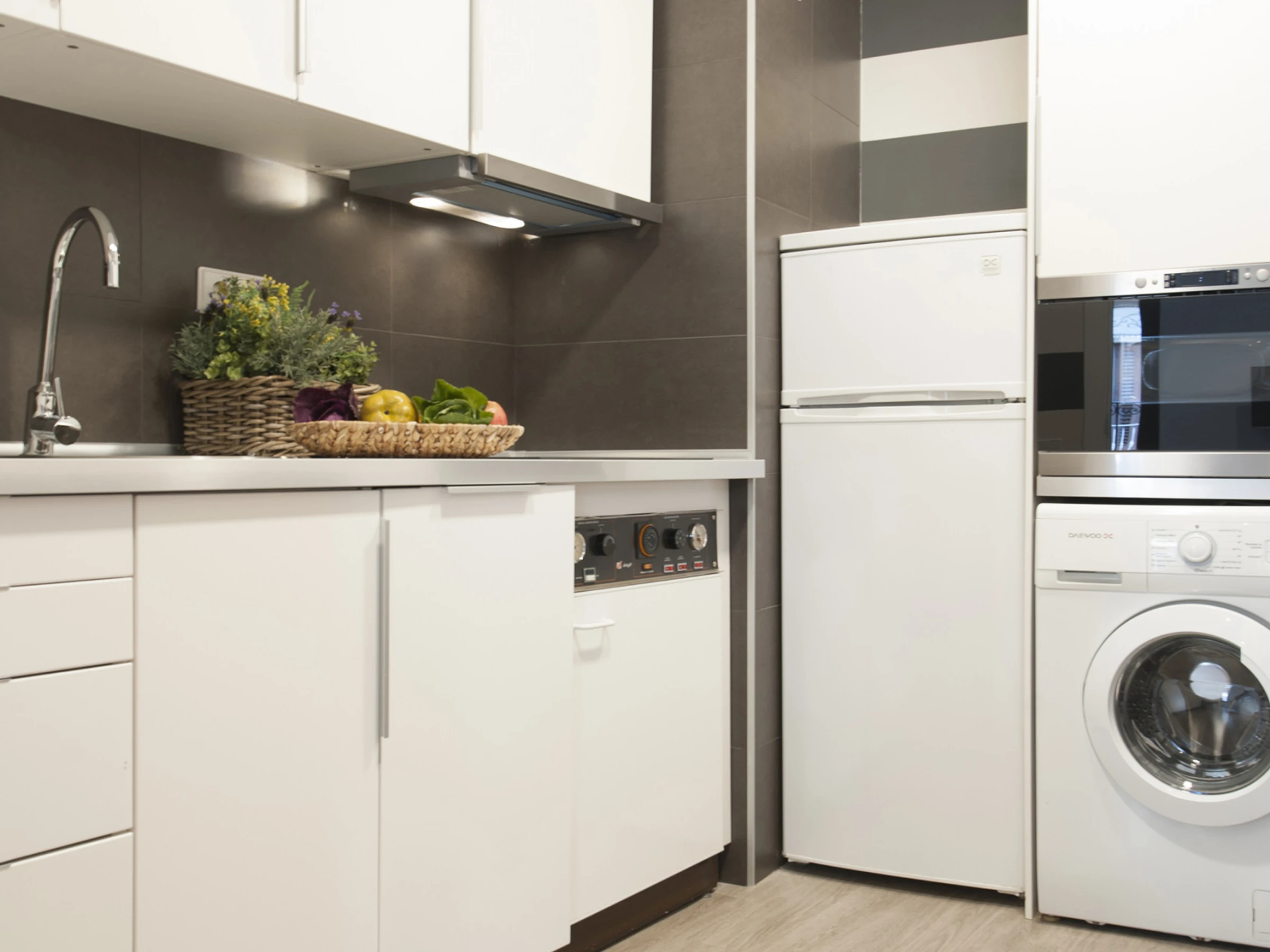 La cuisine indépendante, à vitrocéramique, est équipée avec réfrigérateur, micro-ondes, congélateur, ustensiles/cuisine, cafetière et bouilloire.