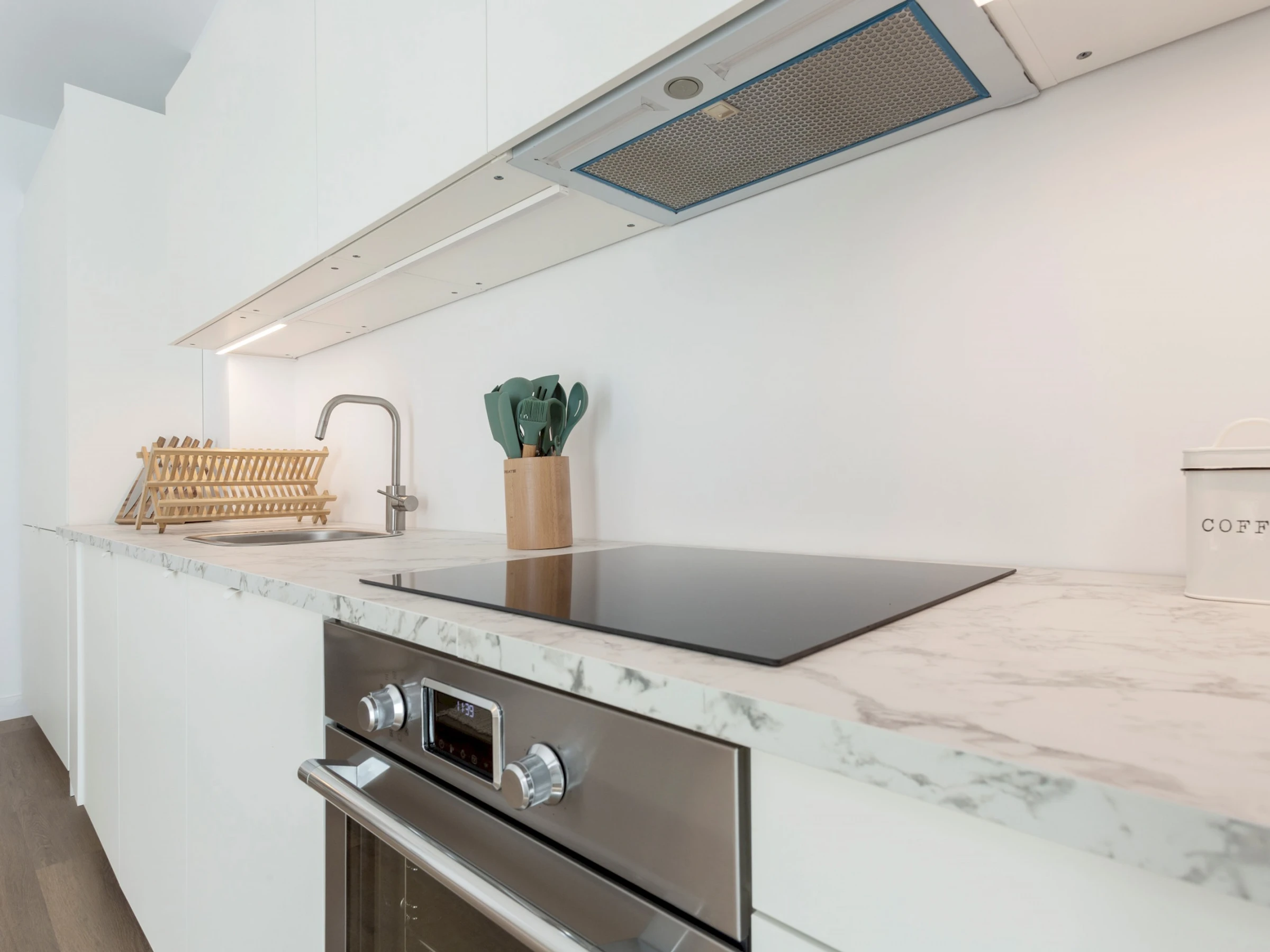 La cuisine, est équipée avec réfrigérateur, micro-ondes, four, congélateur, lave-vaisselle, vaisselle/couverts, cafetière, grille pain et presse-agrumes.