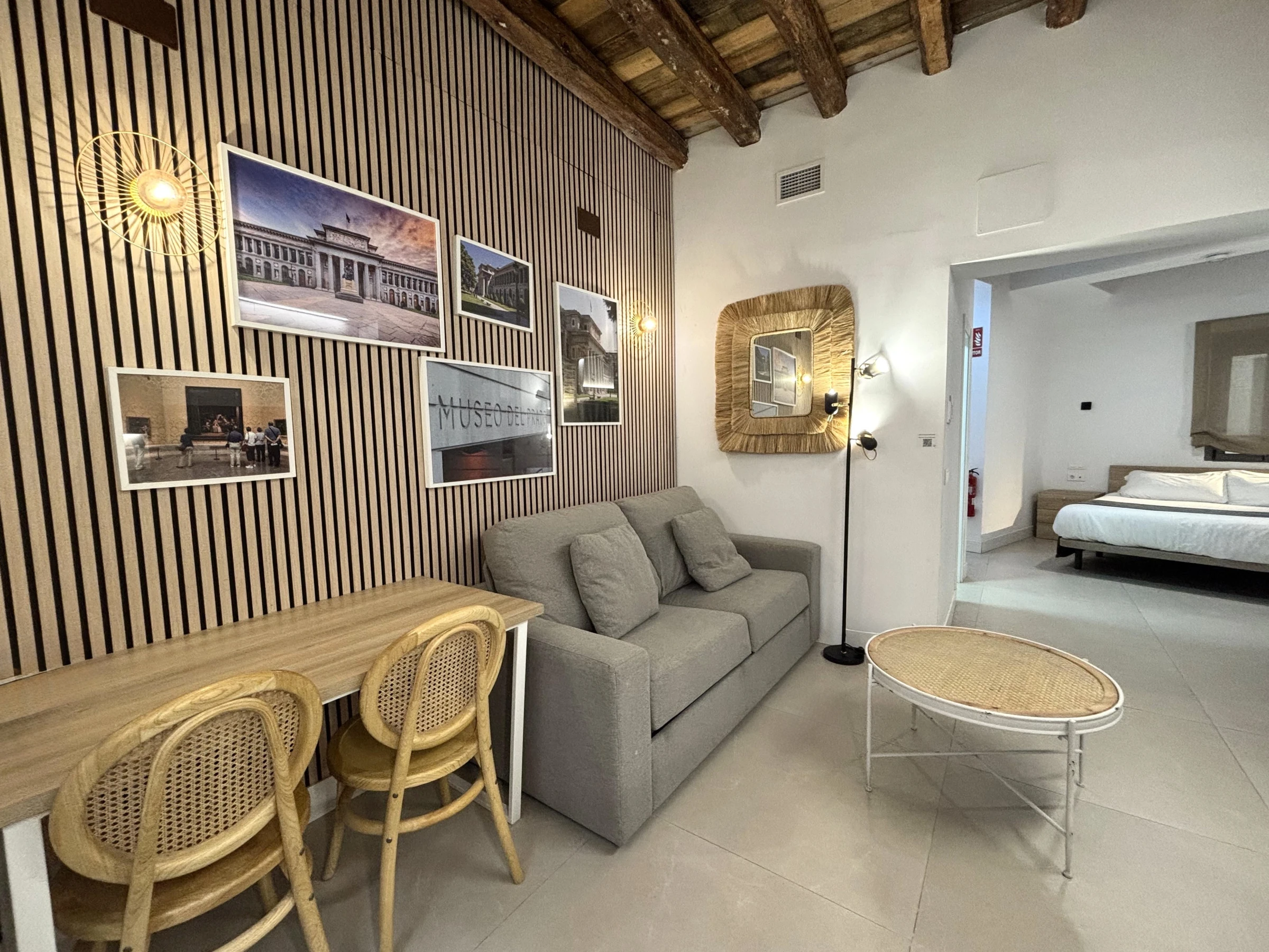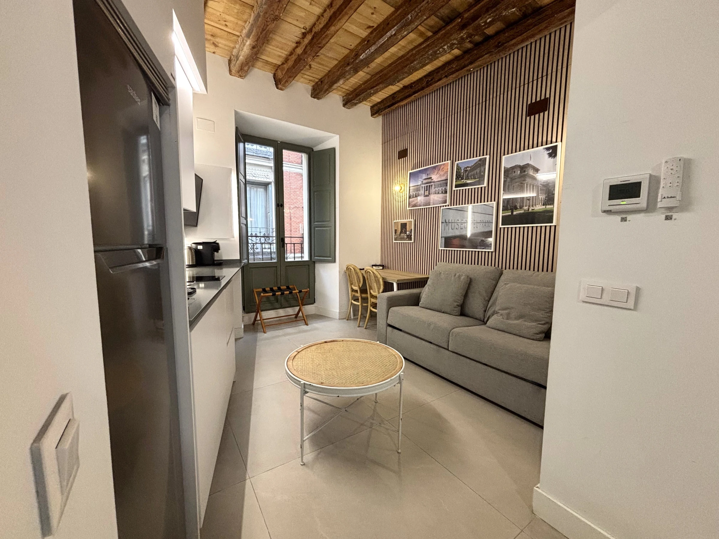 Ce spacieux appartement de type studio (deuxième étage avec ascenseur) se trouve dans un bâtiment historique de plus de 300 ans, récemment reconstruit. Il est situé à seulement 250 mètres du Mercado de San Miguel, à 300 mètres de la Plaza Mayor et à 750 mètres du Palais Royal et de la Puerta del Sol.