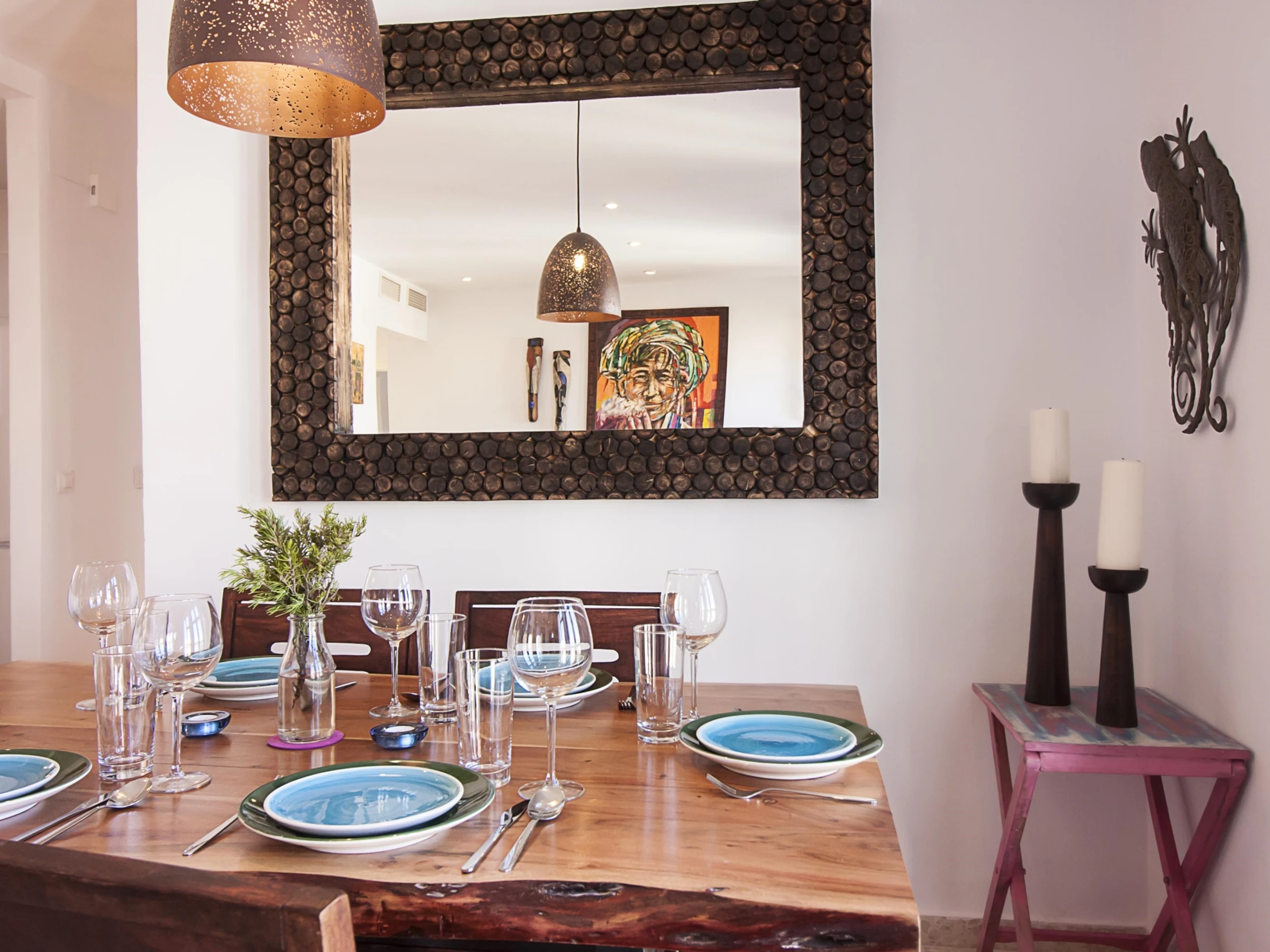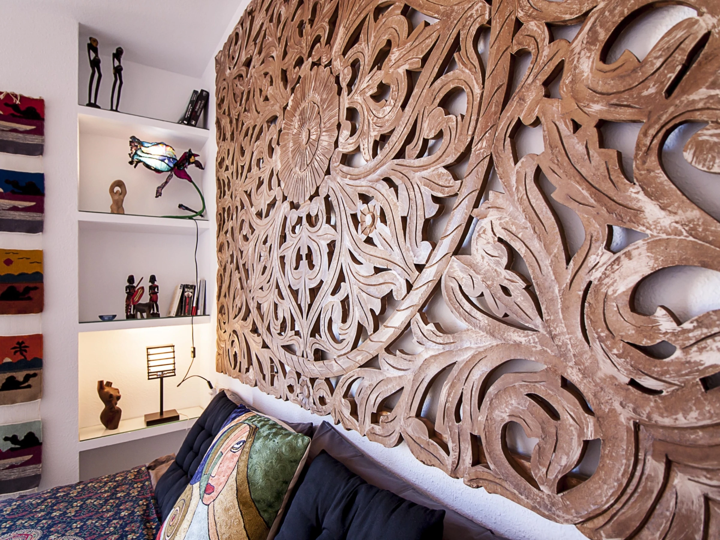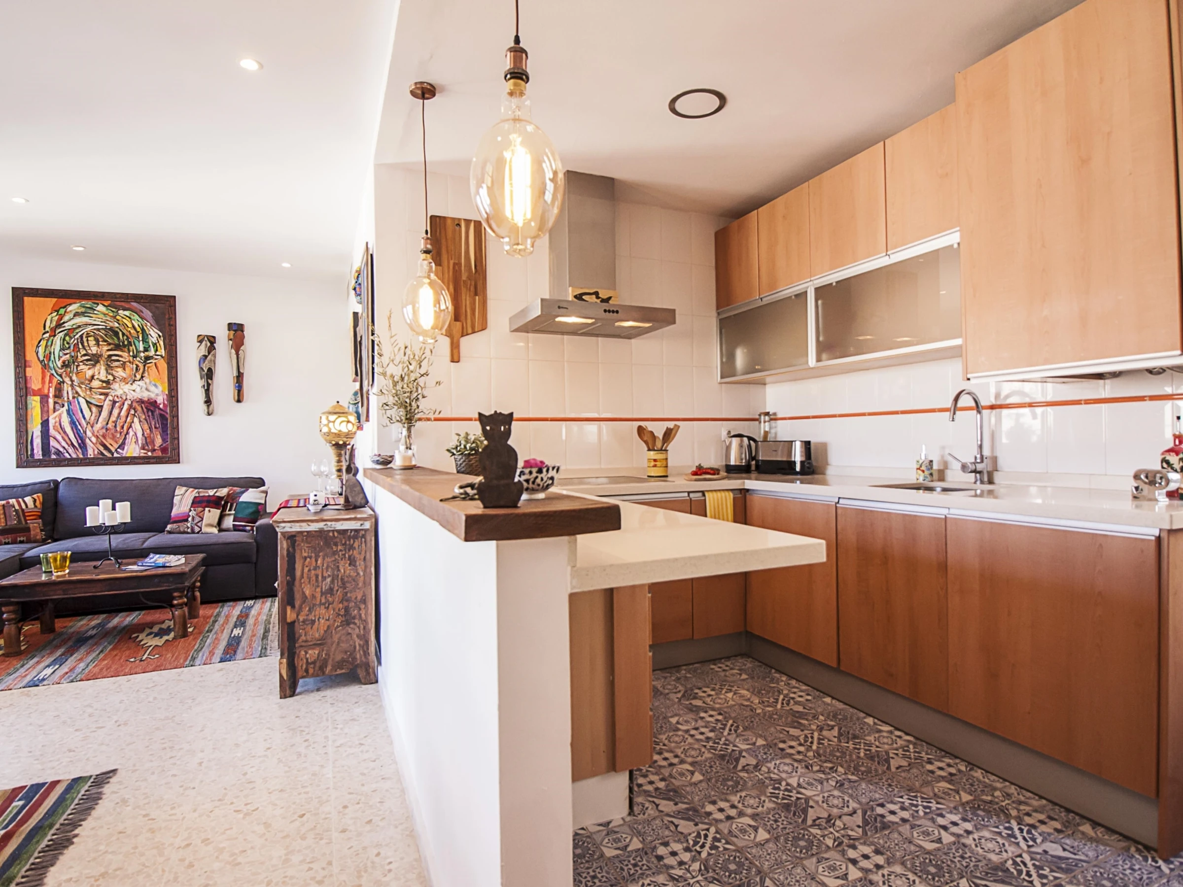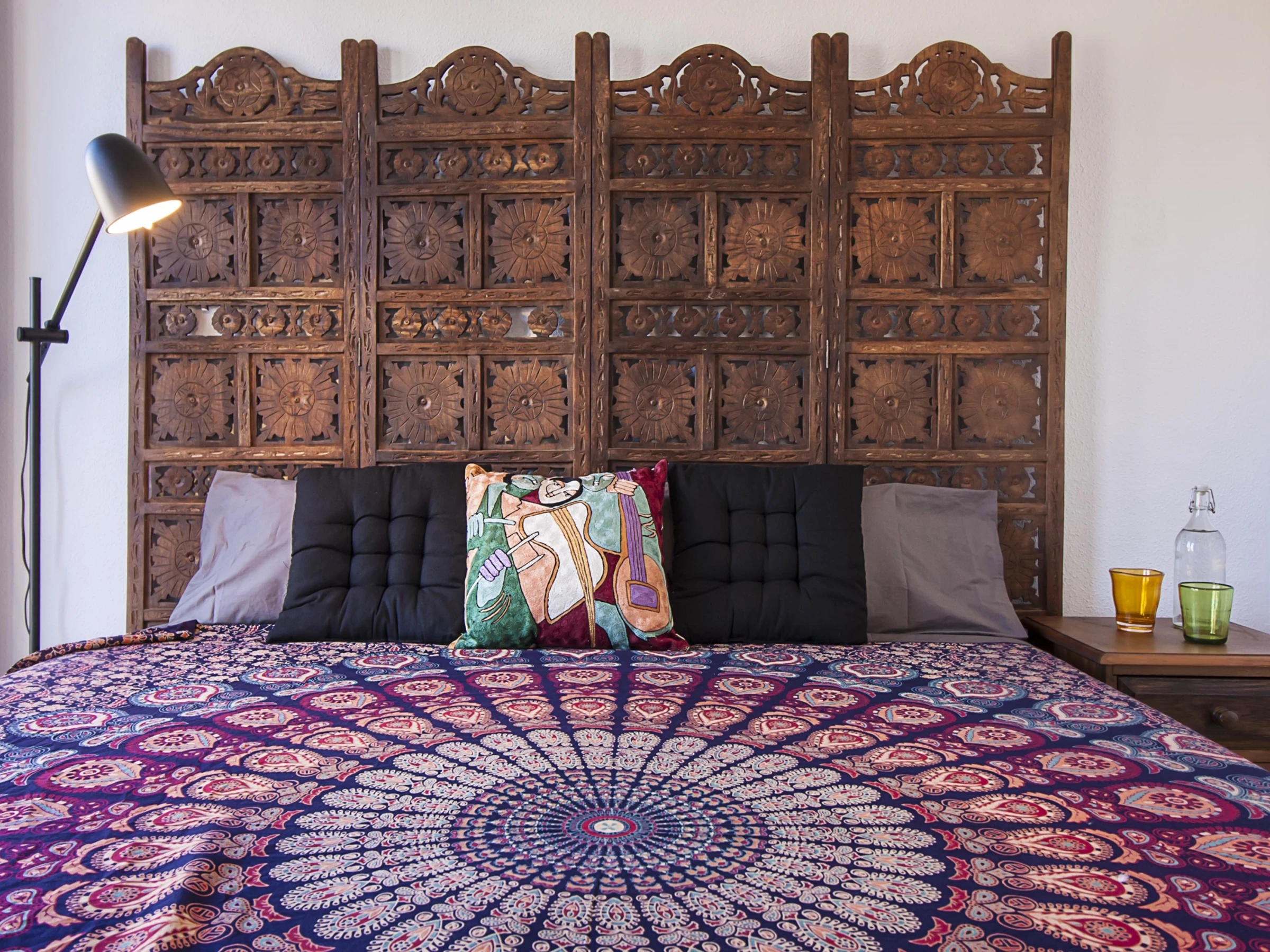 Luminoso apartamento con decoración étnica, de dos dormitorios con camas extra grandes, recién reformado, con vistas a la Catedral de Málaga, en pleno centro peatonal.