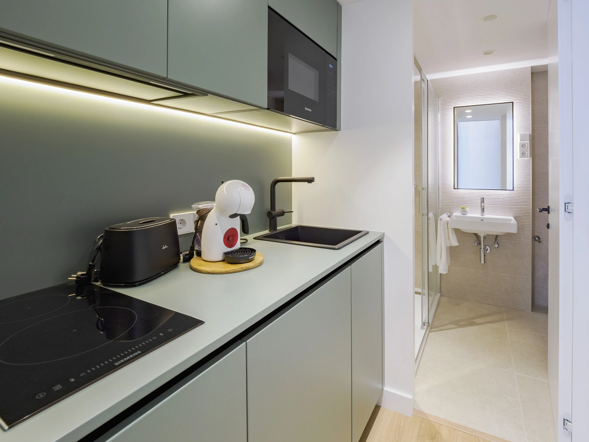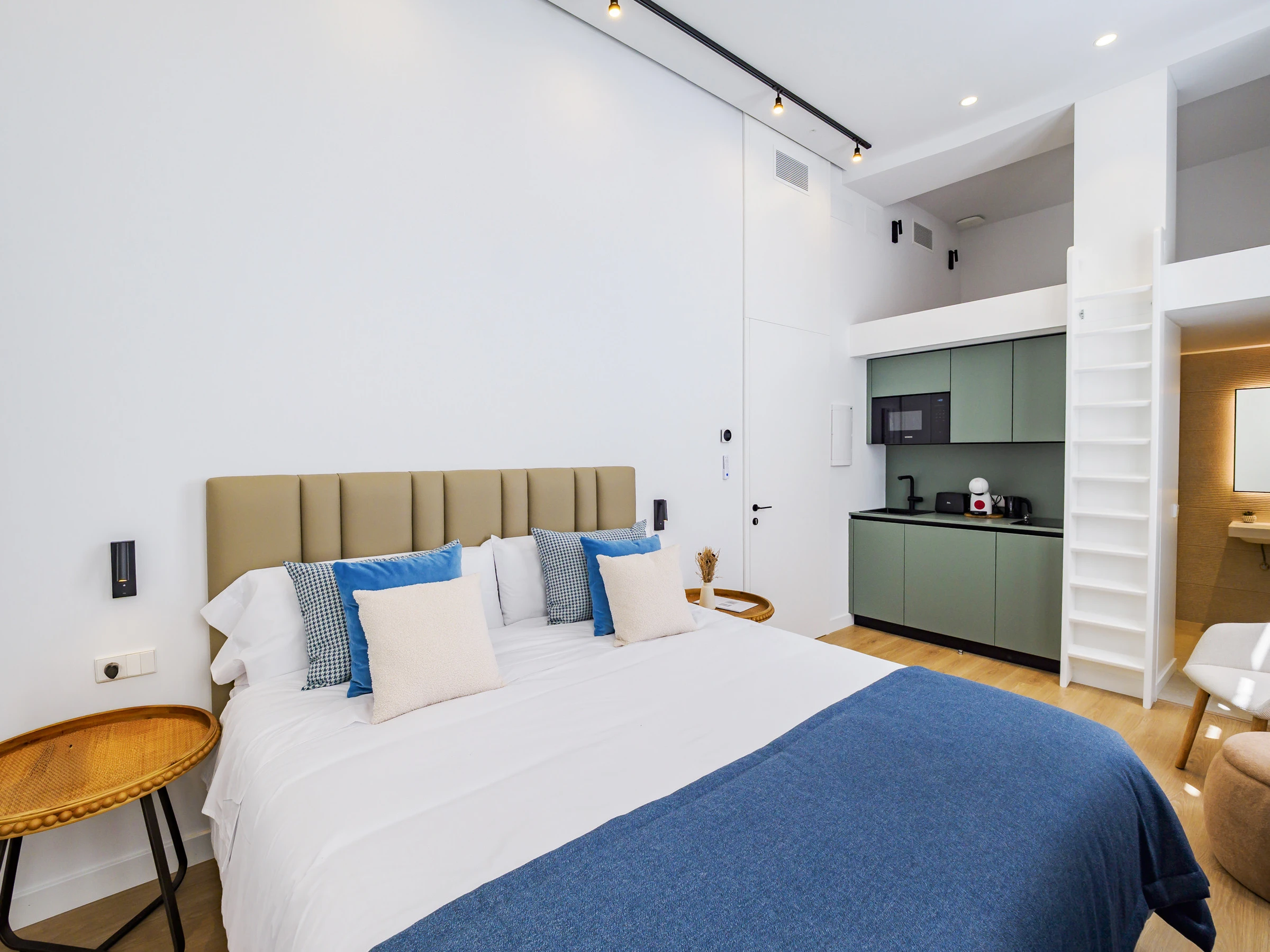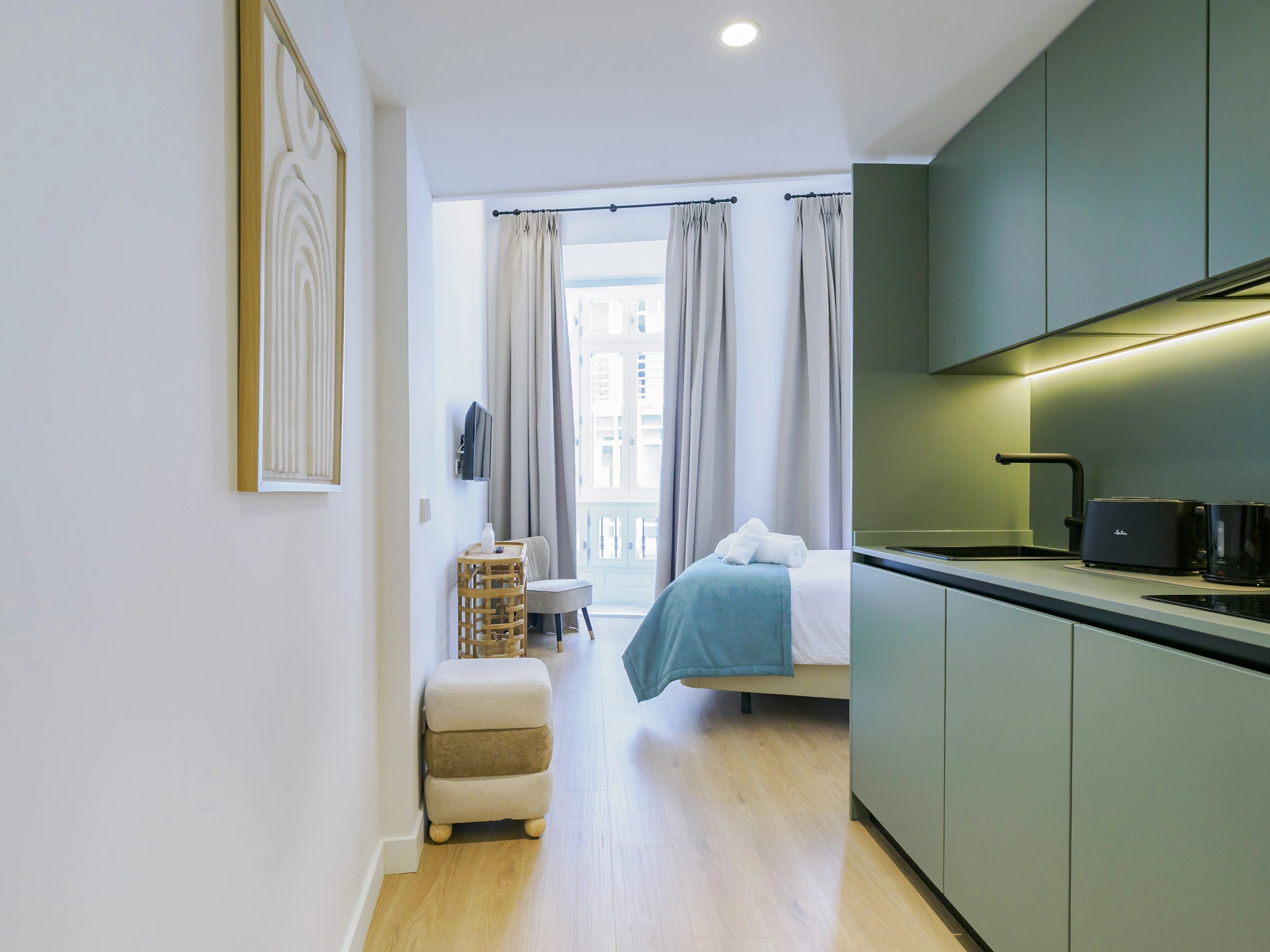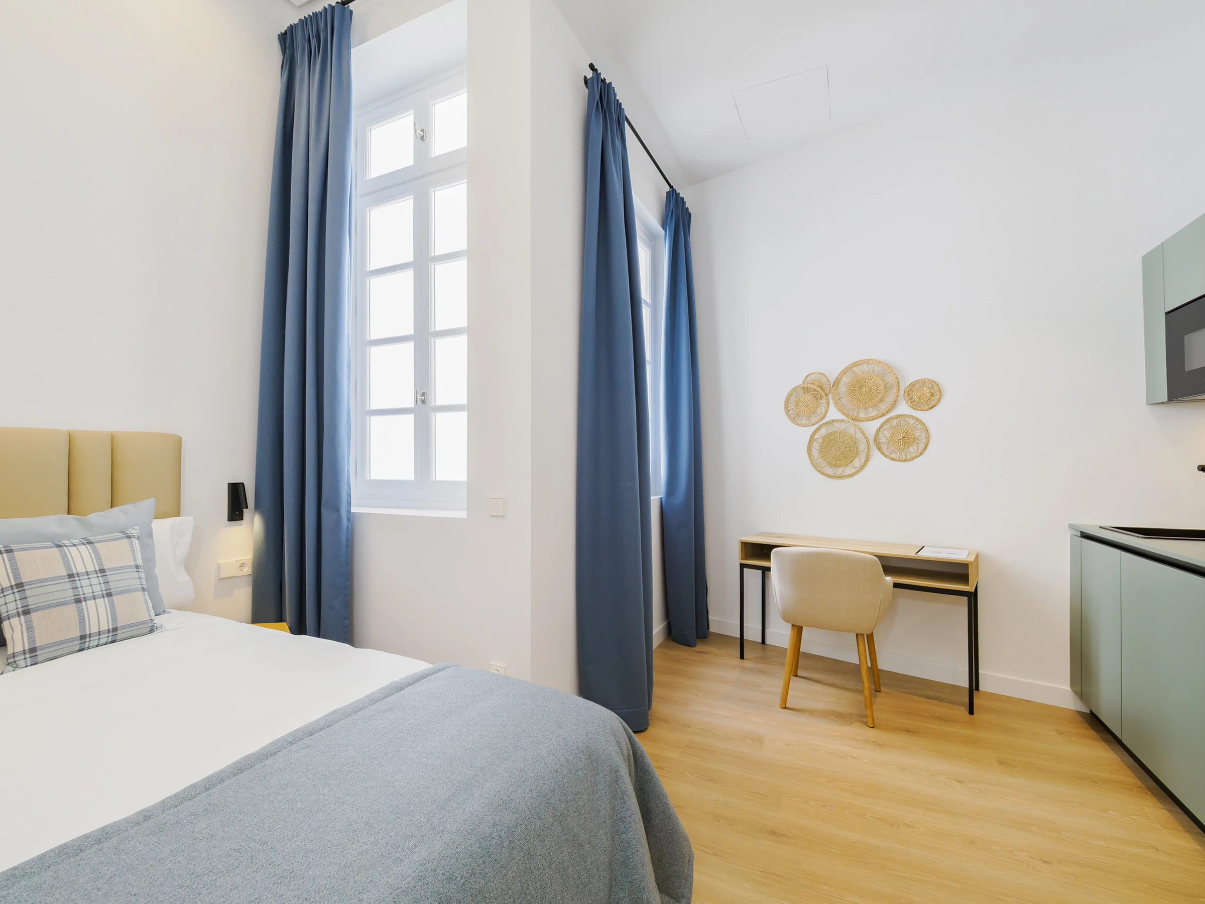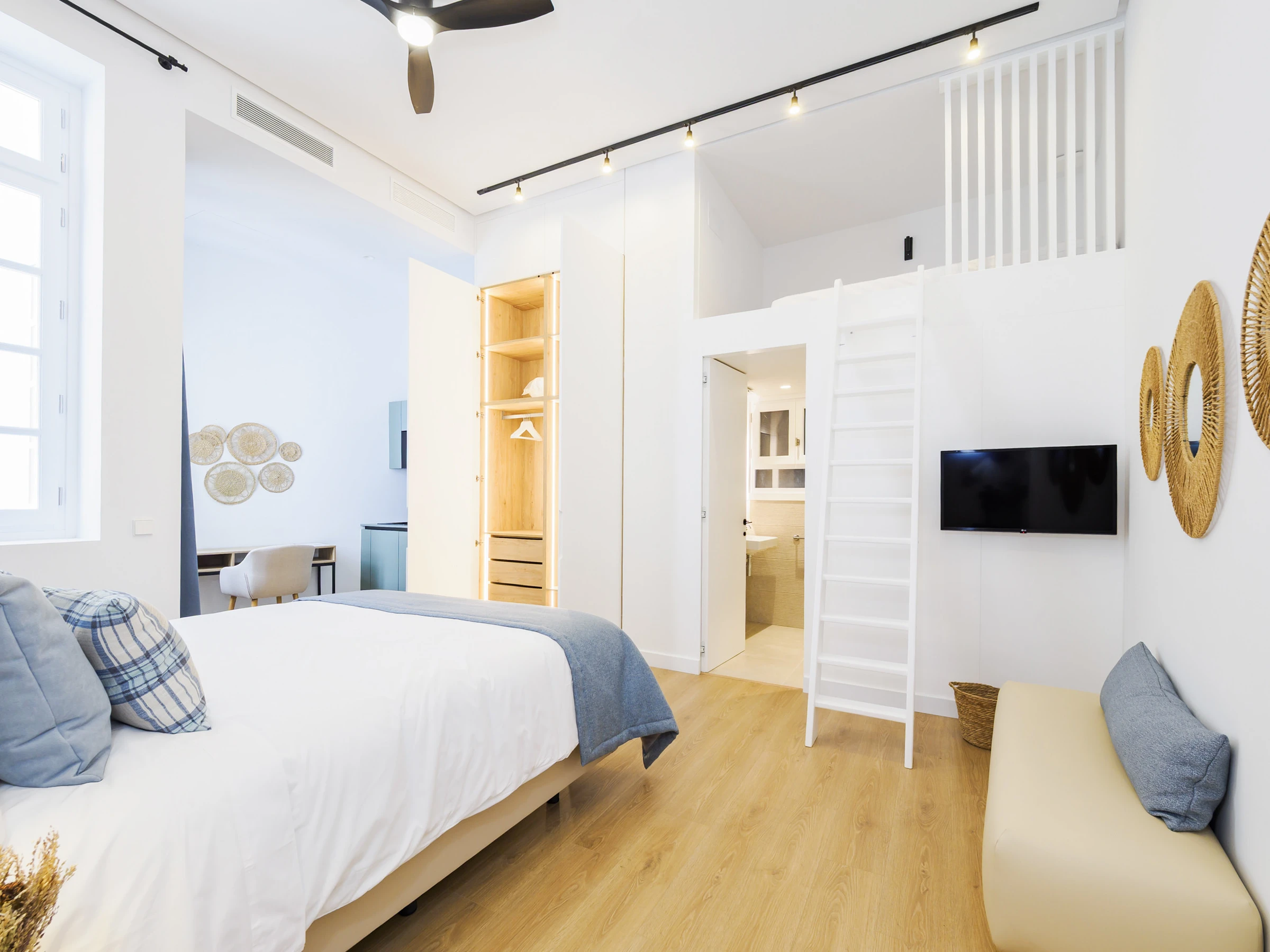 Studio moderne pour 3 personnes en plein centre de Malaga, réservé aux adultes, avec climatisation, cuisine équipée et à quelques minutes de la Rue Larios, des plages et des principales attractions touristiques.
