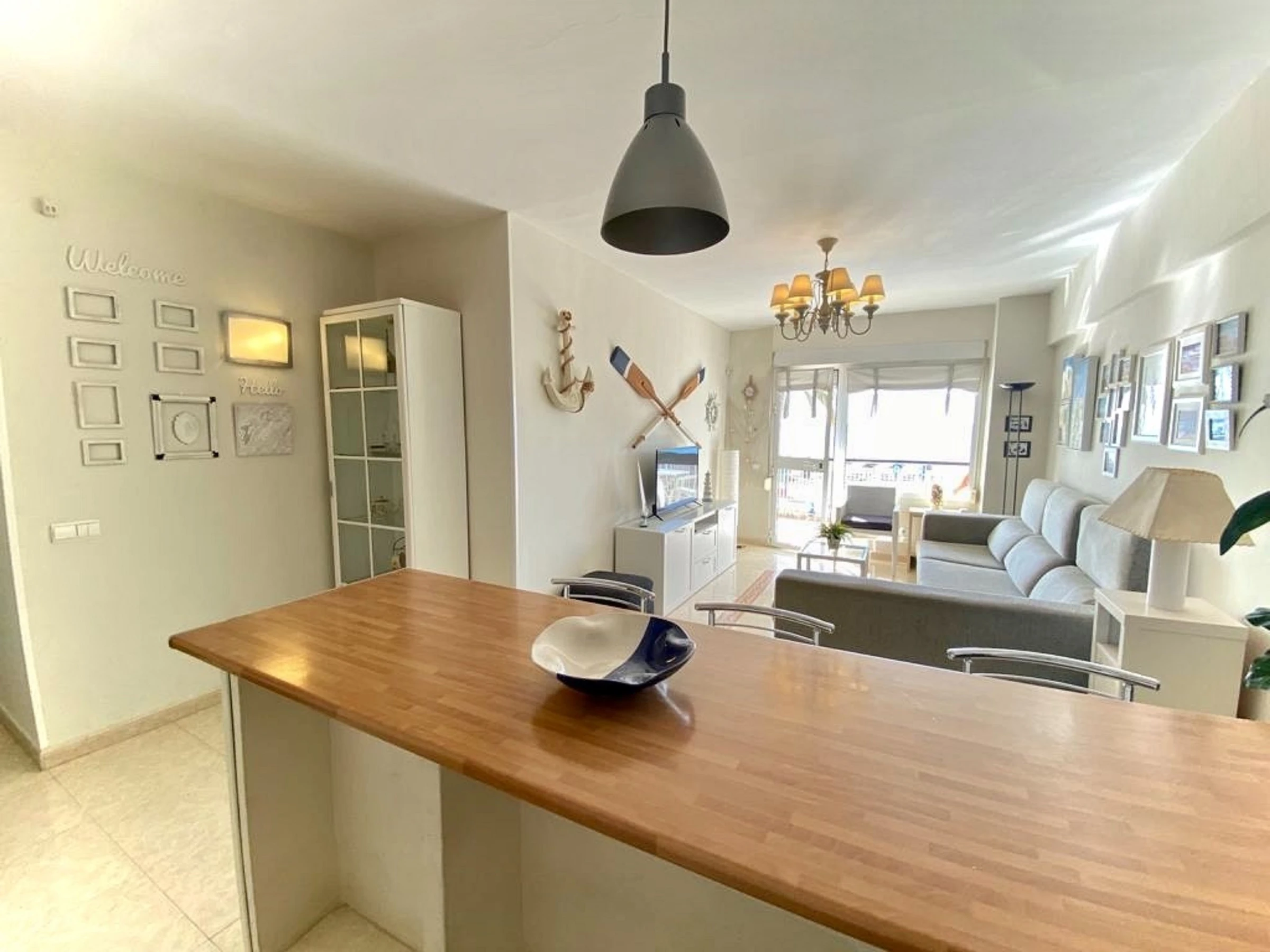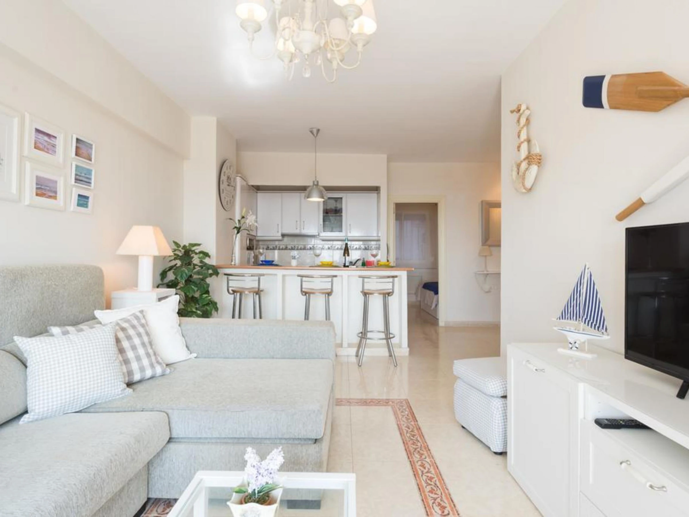 L'appartement, confortable et bien aménagé, dispose d'une chambre avec un lit double confortable et un canapé-lit supplémentaire dans le salon. De plus, il comprend une salle de bain moderne et une cuisine américaine entièrement équipée avec tout ce qu'il faut pour profiter de vacances splendides.
