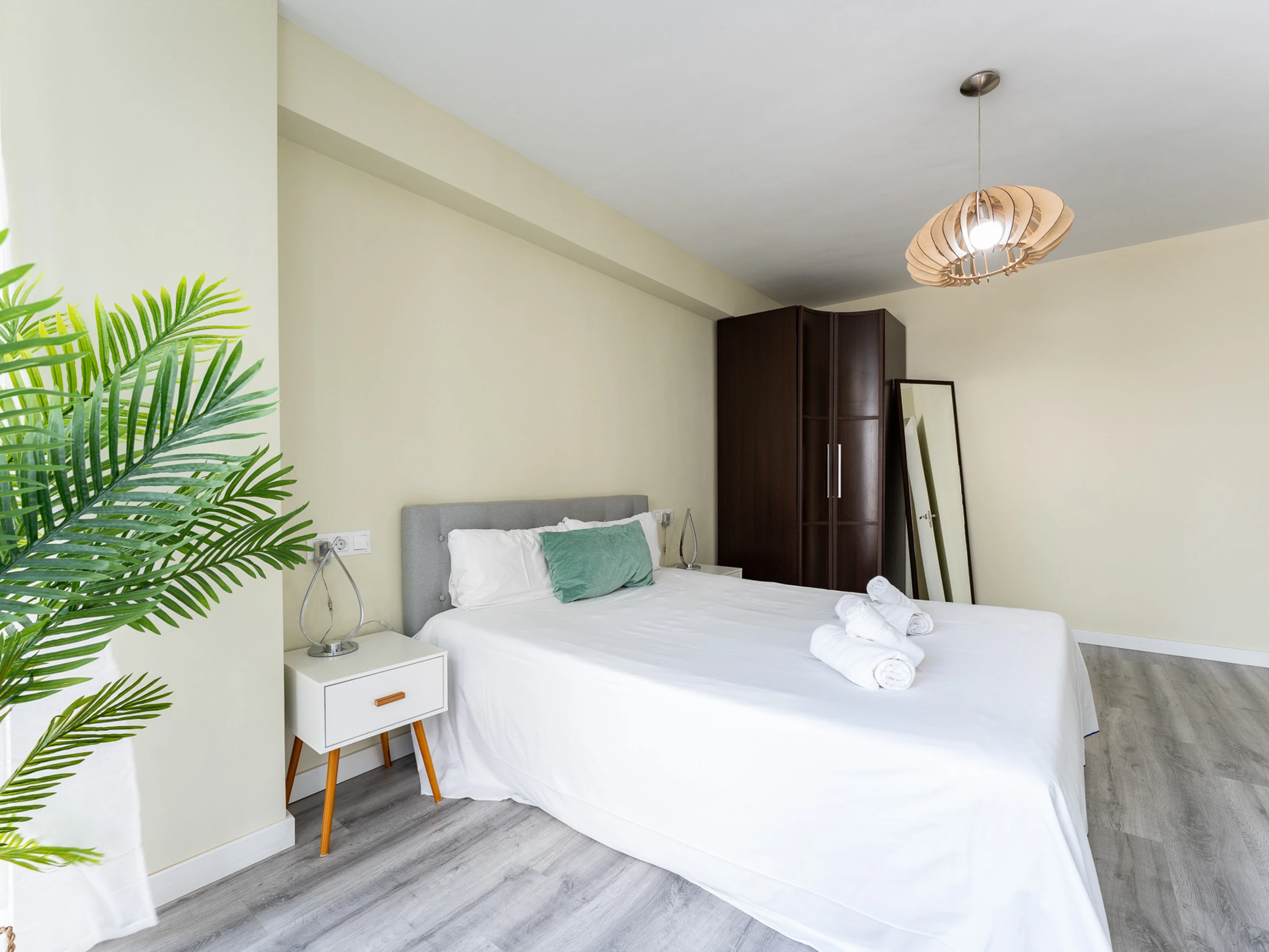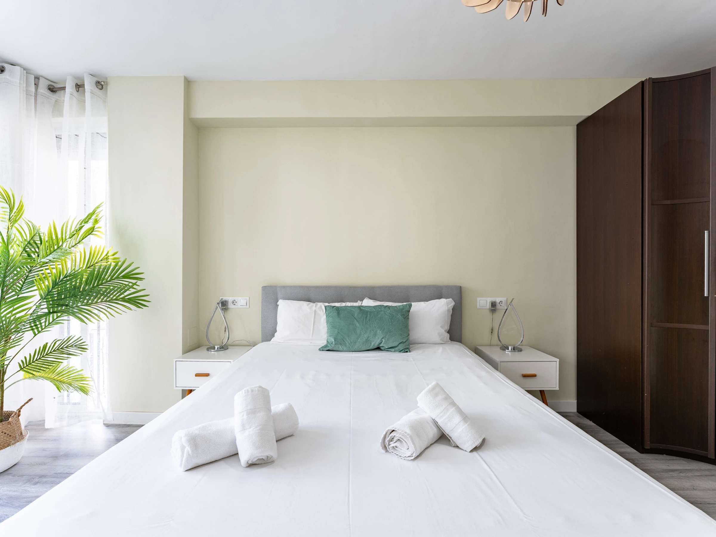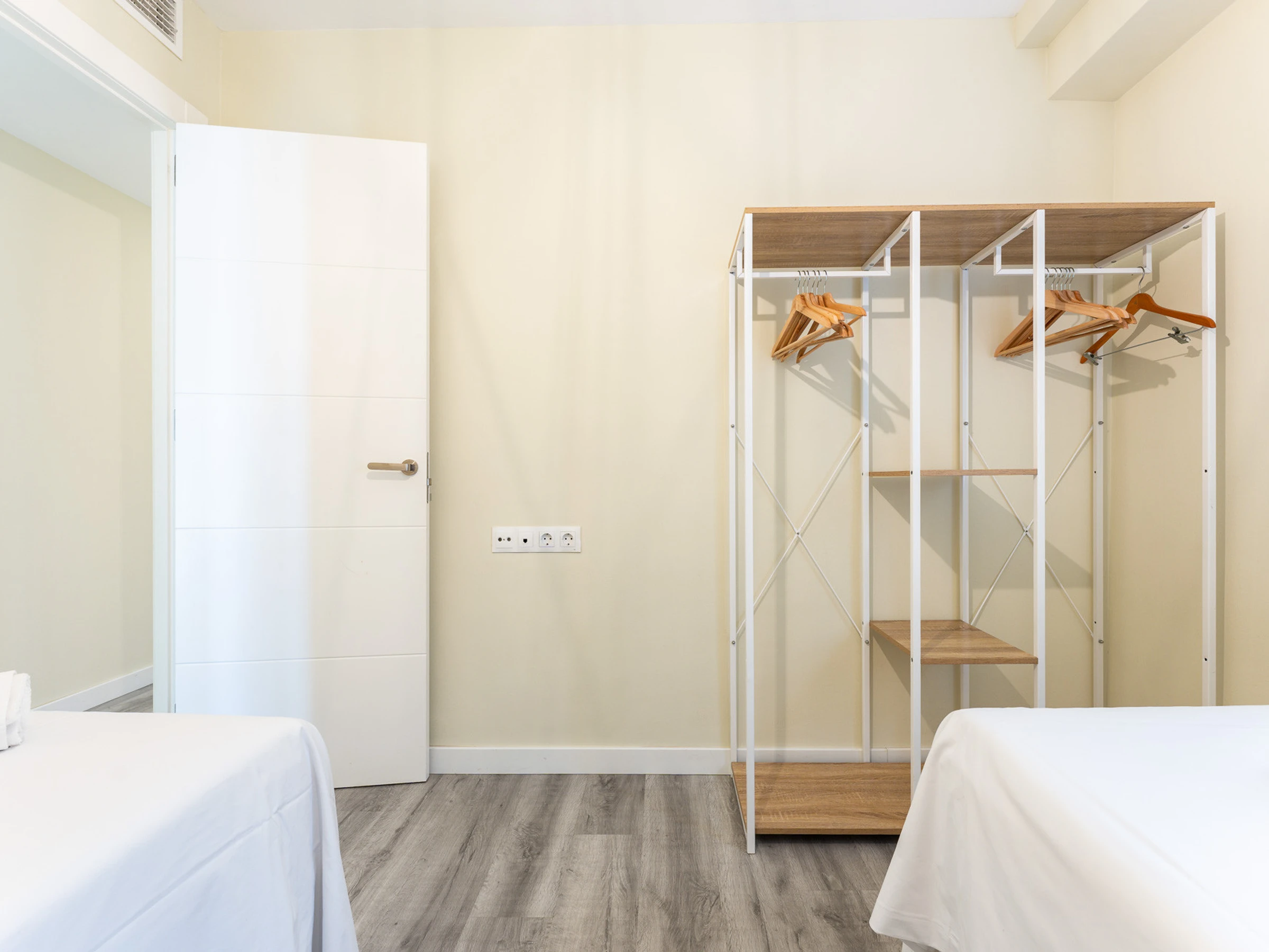Dispose de deux chambres : une avec deux lits simples et une autre avec un lit double, spacieuse, lumineuse et dotée de placards pour ranger les bagages. La salle de bain, située dans le couloir, est équipée d'un receveur de douche.