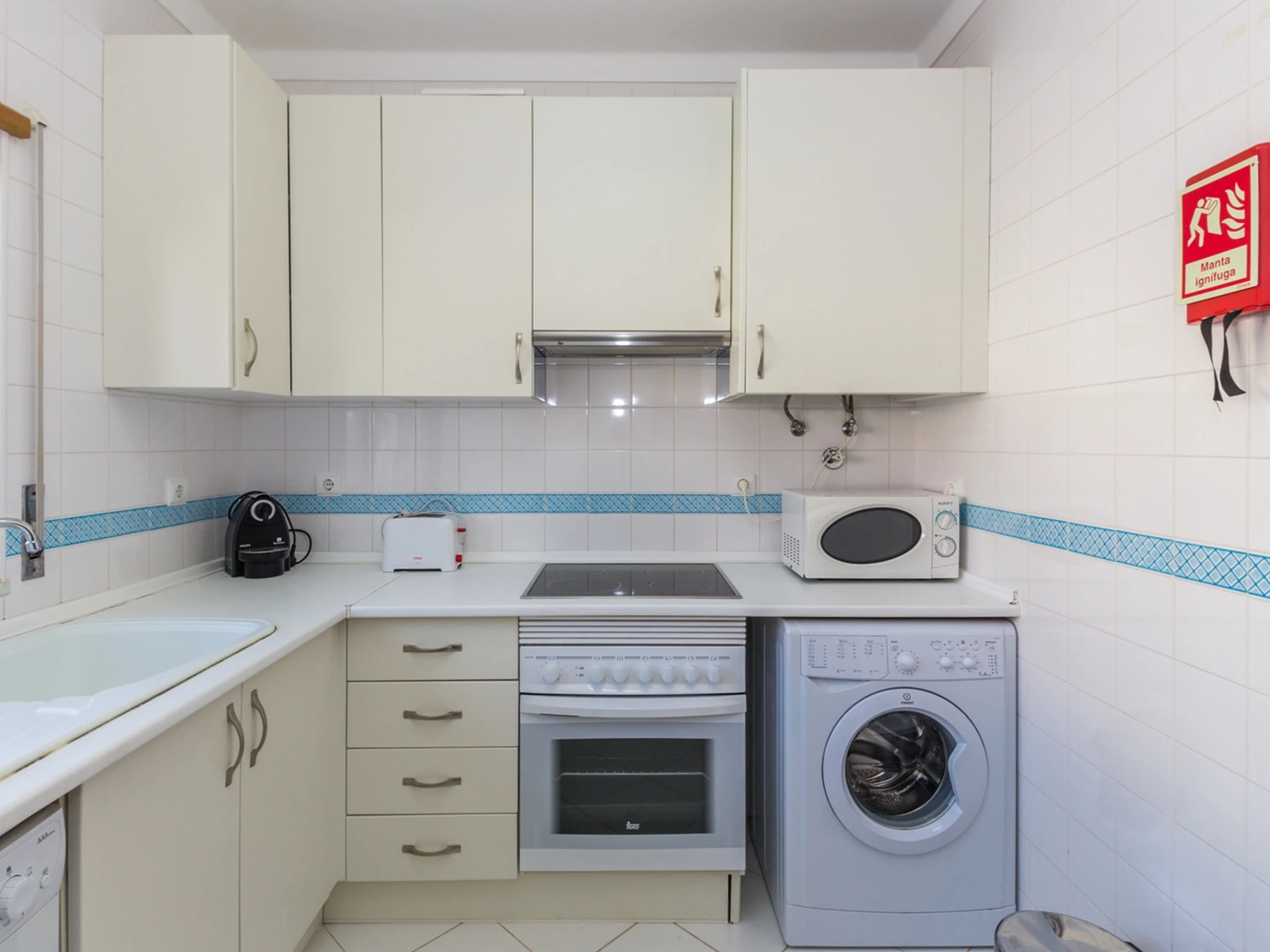 La cuisine est équipée de : réfrigérateur combiné, plaque de cuisson électrique, four, grille-pain, micro-ondes, machine à café à capsules NESPRESSO, lave-vaisselle et lave-linge.