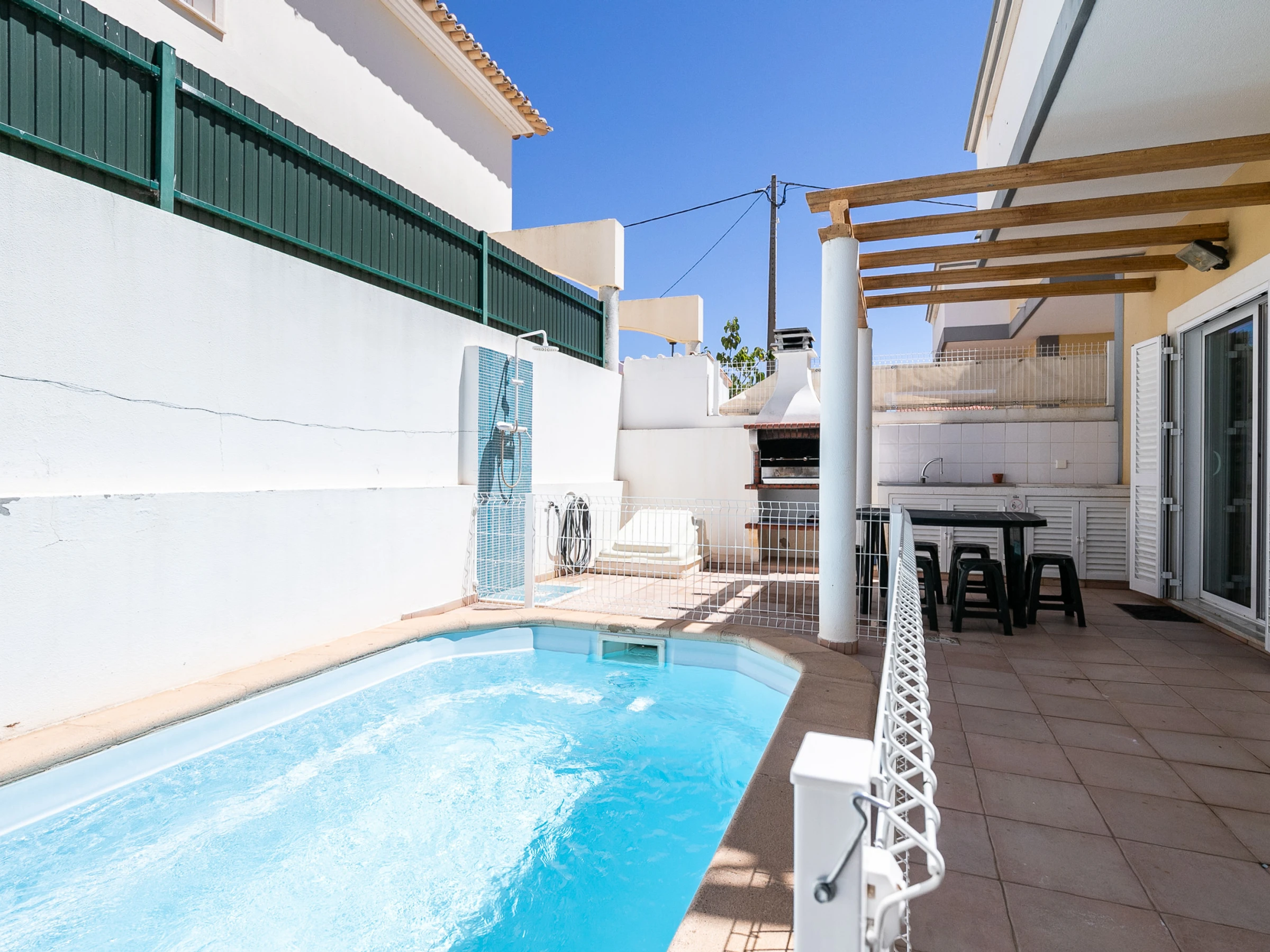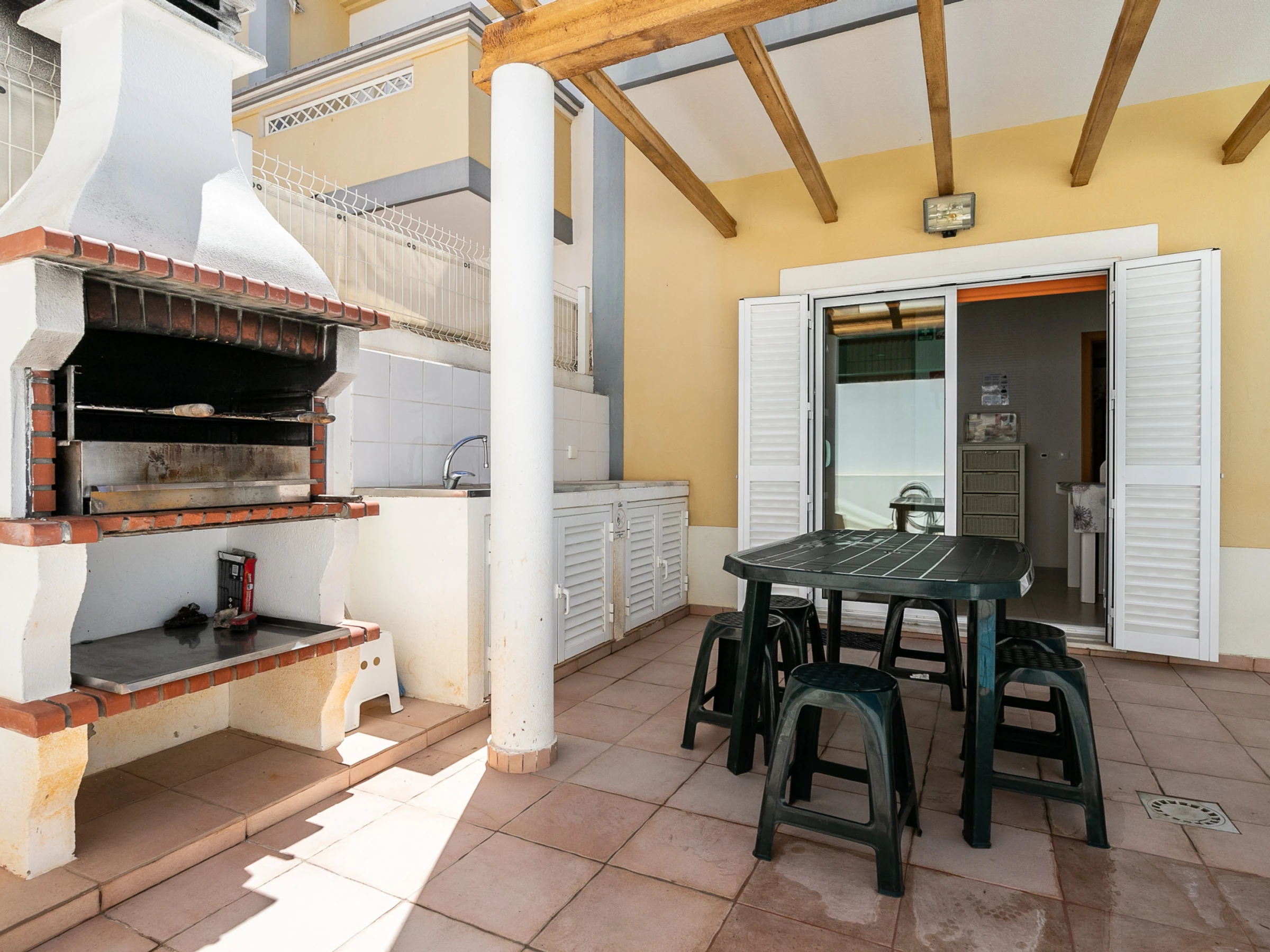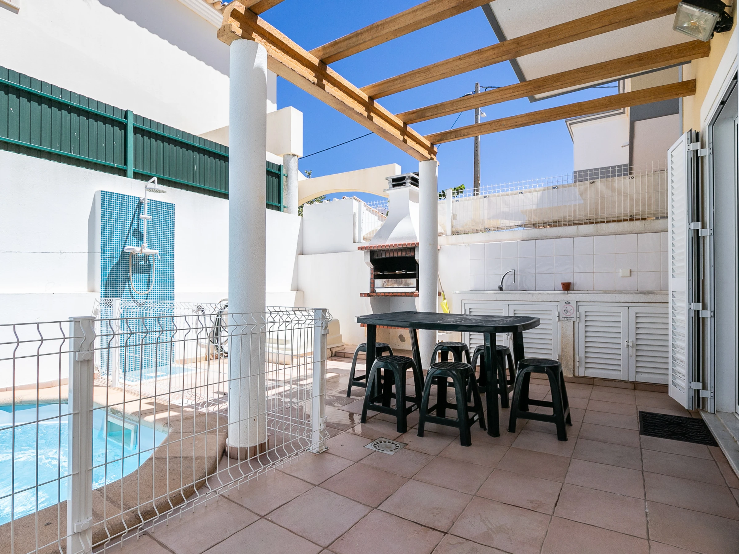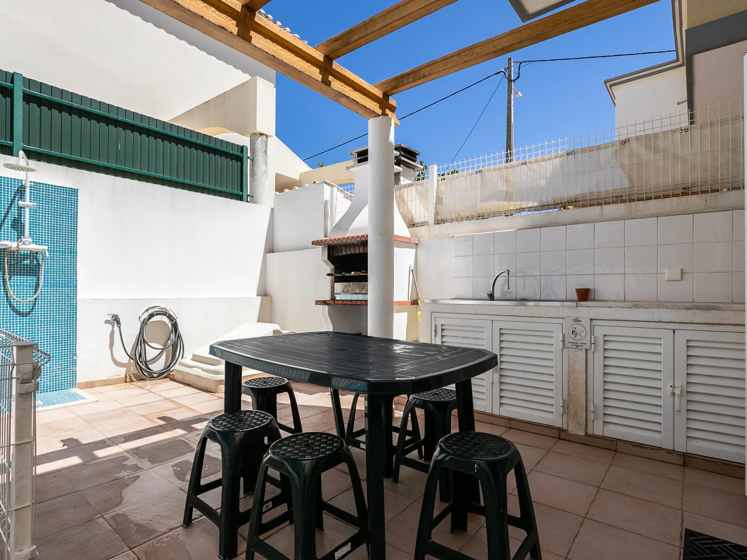 La propriété dispose de la climatisation dans tous les espaces, du Wi-Fi gratuit et de la télévision, garantissant le confort et le divertissement. À l'extérieur, la terrasse avec mobilier de jardin et barbecue complète les moments de loisirs.