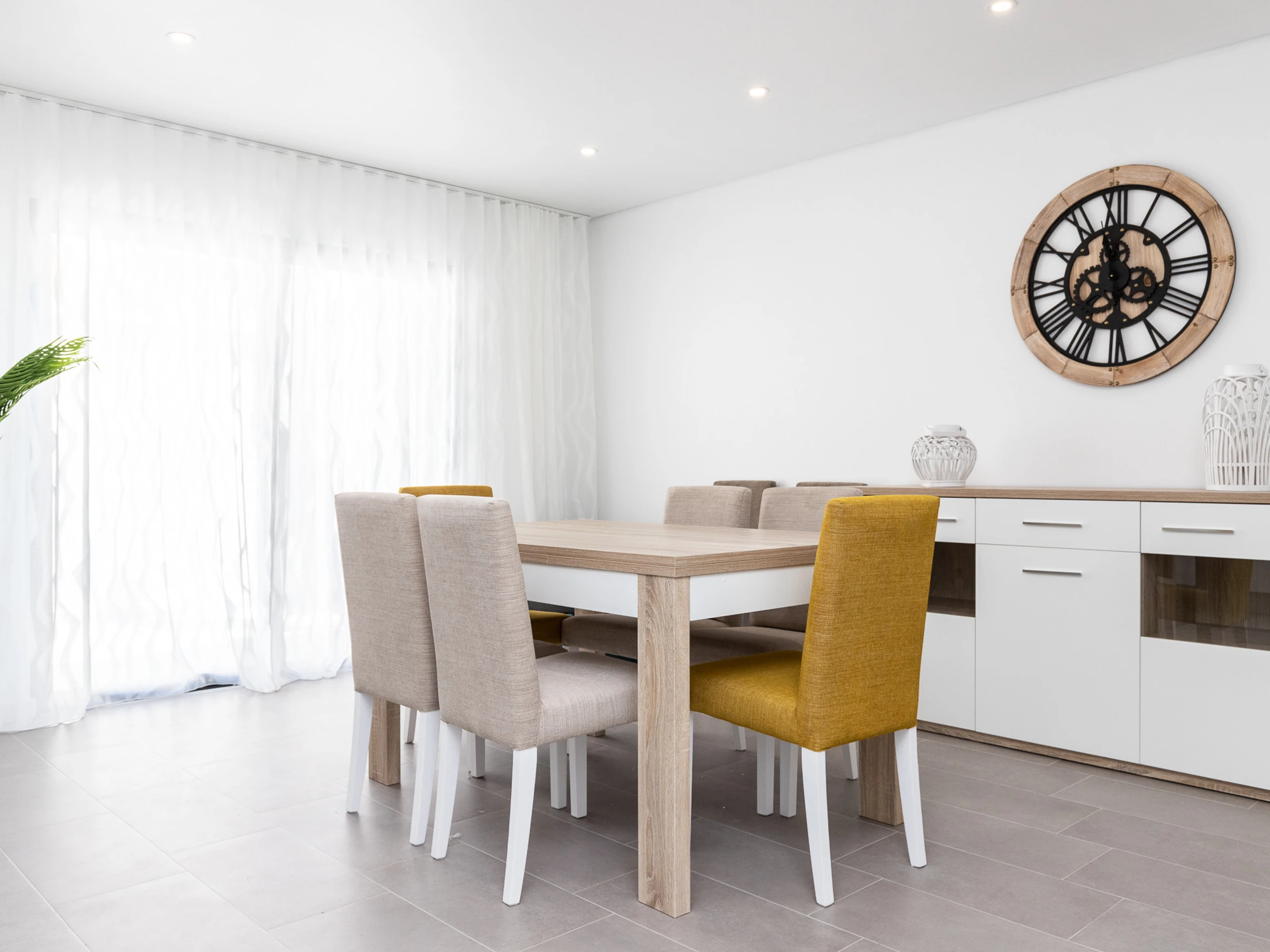 La cuisine est équipée de : réfrigérateur combiné, plaque de cuisson électrique, four, grille-pain, micro-ondes, machine à café à capsules DOLCE GUSTO, bouilloire, lave-vaisselle et lave-linge.