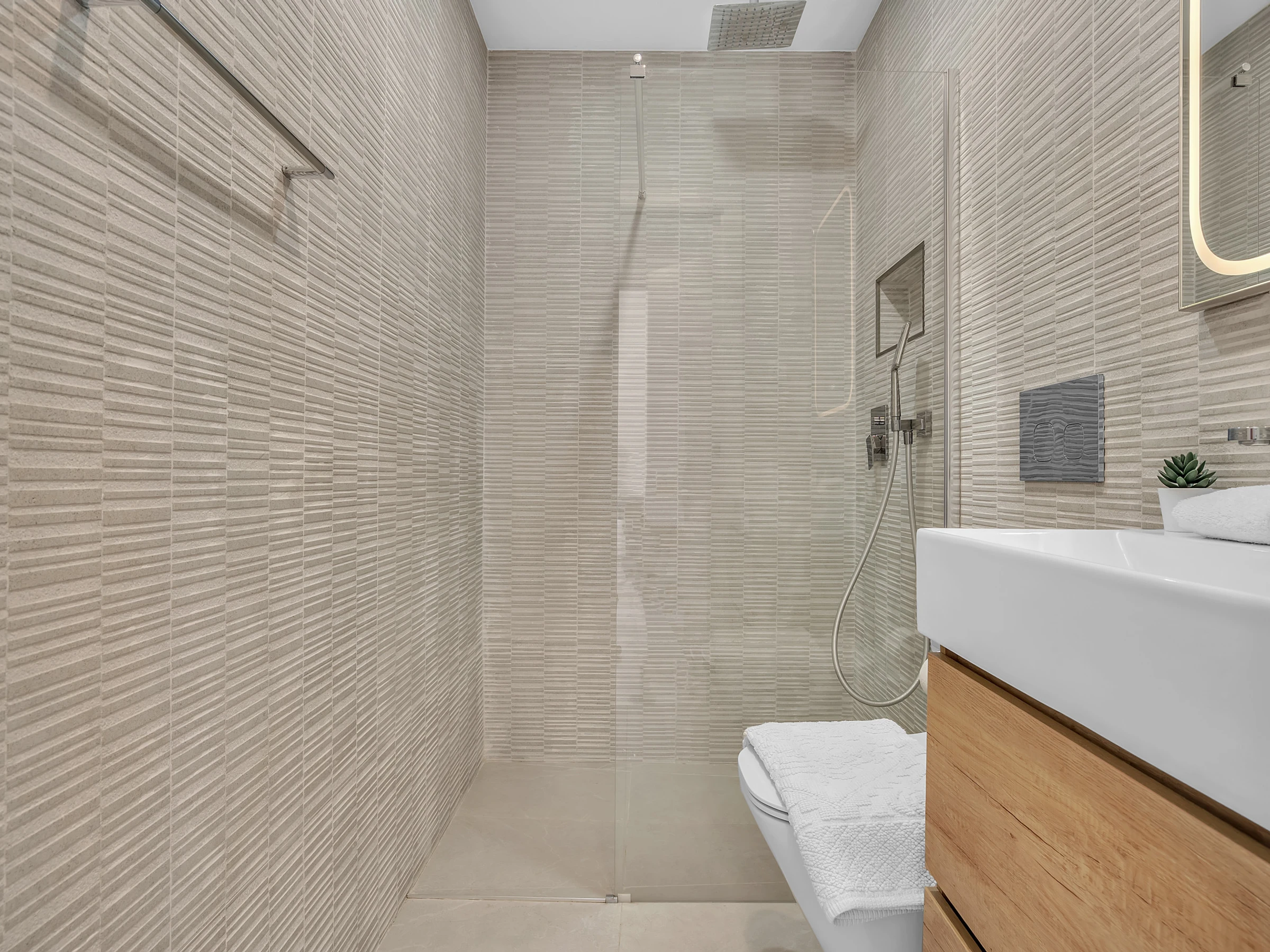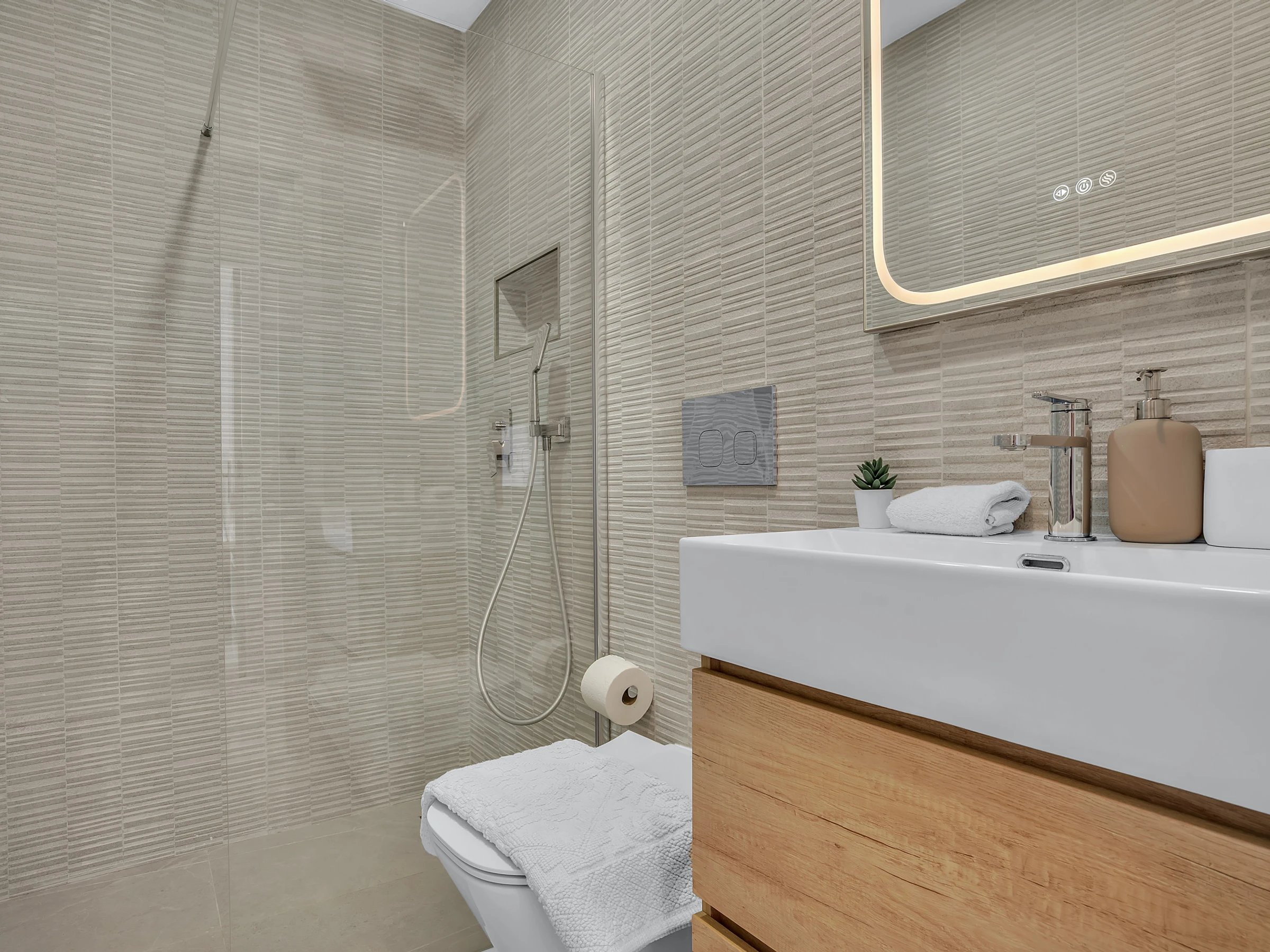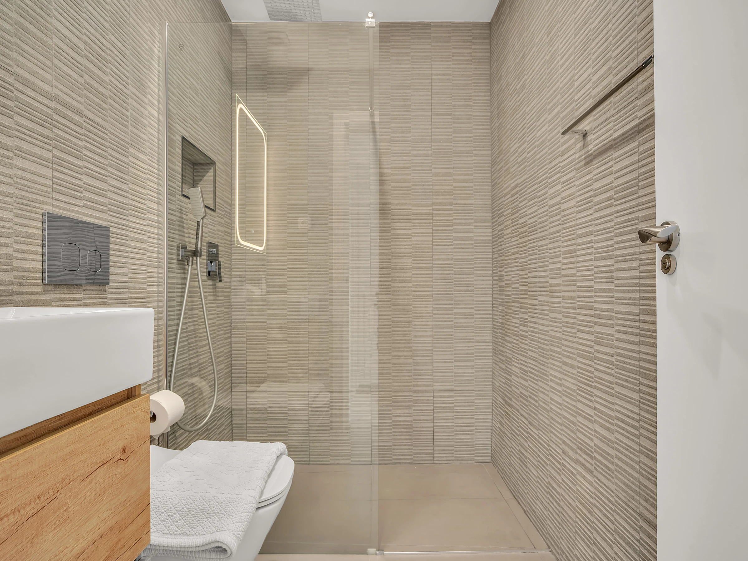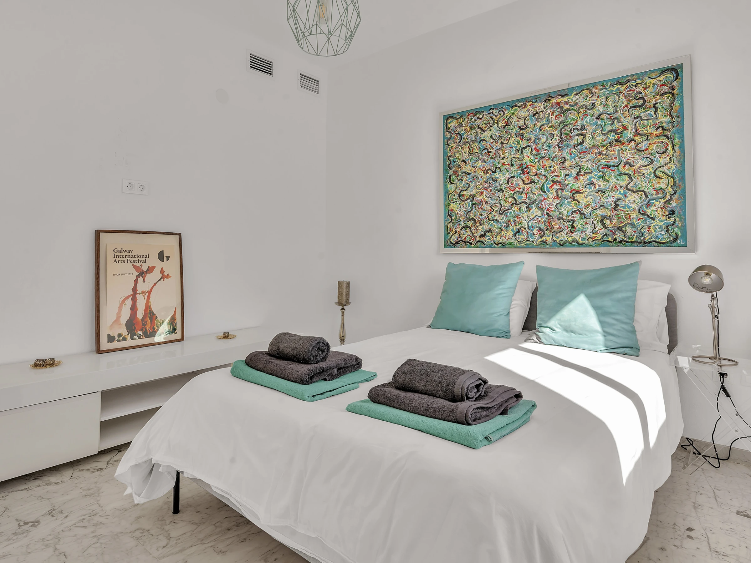 Depuis le couloir, vous trouverez trois chambres — deux meublées avec des lits king-size et une avec des lits jumeaux. La quatrième chambre avec un lit queen-size est accessible directement depuis le salon, offrant plus d'intimité et de flexibilité.