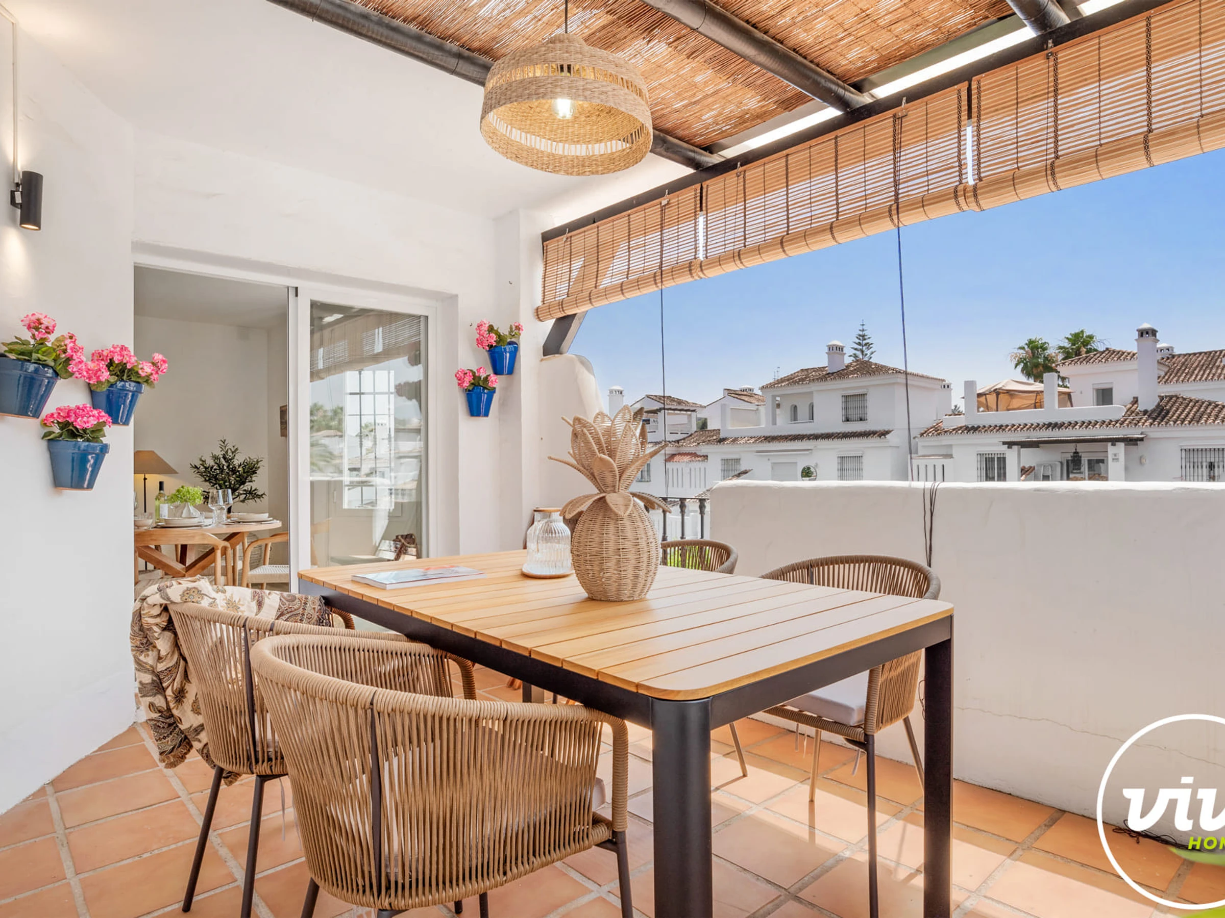 Elle dispose de mobilier de jardin, clôture, 35 m² de terrasse, lave-linge, barbecue, fer à repasser, coffre-fort, accès internet (wifi), sèche-cheveux, balcon, chauffage central, climatisation dans tout le logement, piscine collective, parking extérieur bâtiment proche, 1 Télévision.