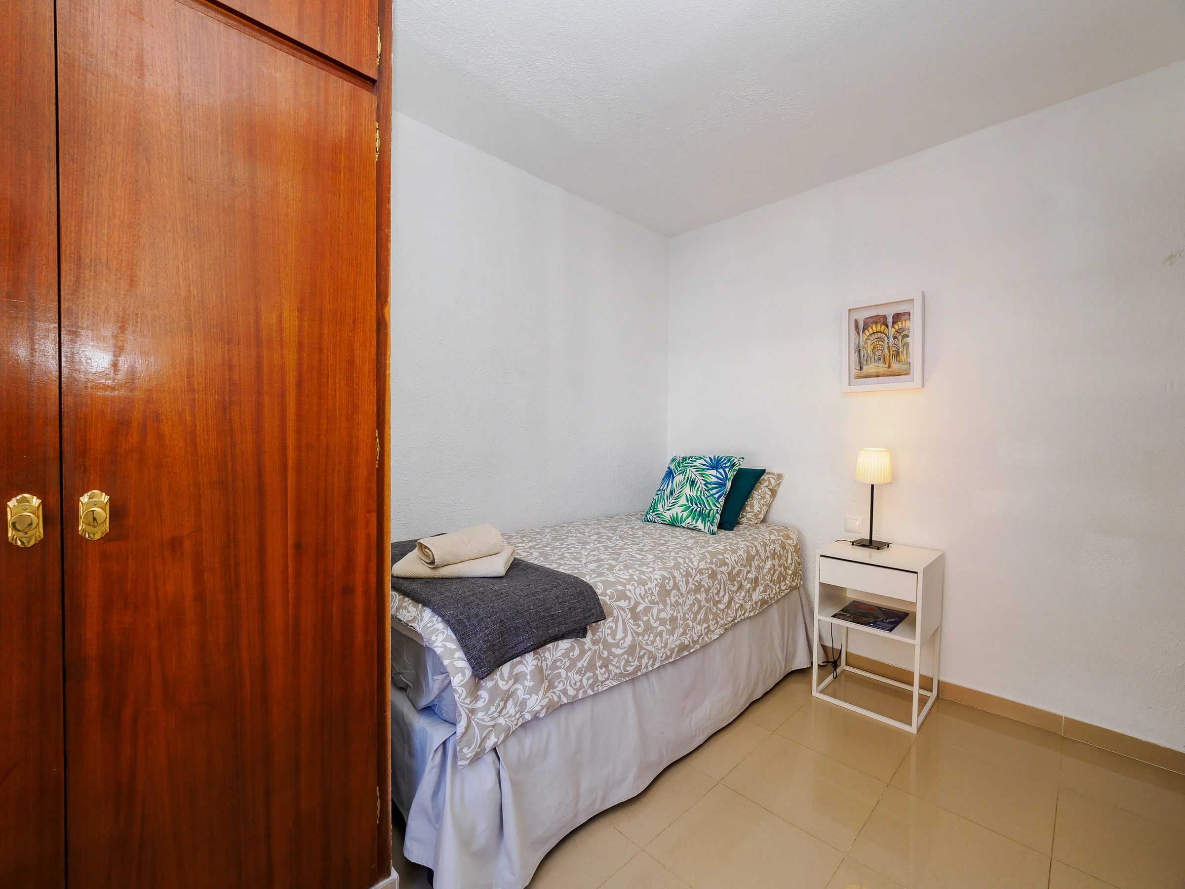 Il dispose de deux chambres : la principale avec un lit de matrimonial, une salle de bain attenante et un accès direct à la terrasse qui offre une vue sur la mer ; et une deuxième chambre avec un lit gigogne, pour deux personnes. De plus, il dispose d'une deuxième salle de bain complète stratégiquement placée entre les deux chambres et de la climatisation dans tout l'appartement pour plus de confort. 🌬️🛏️