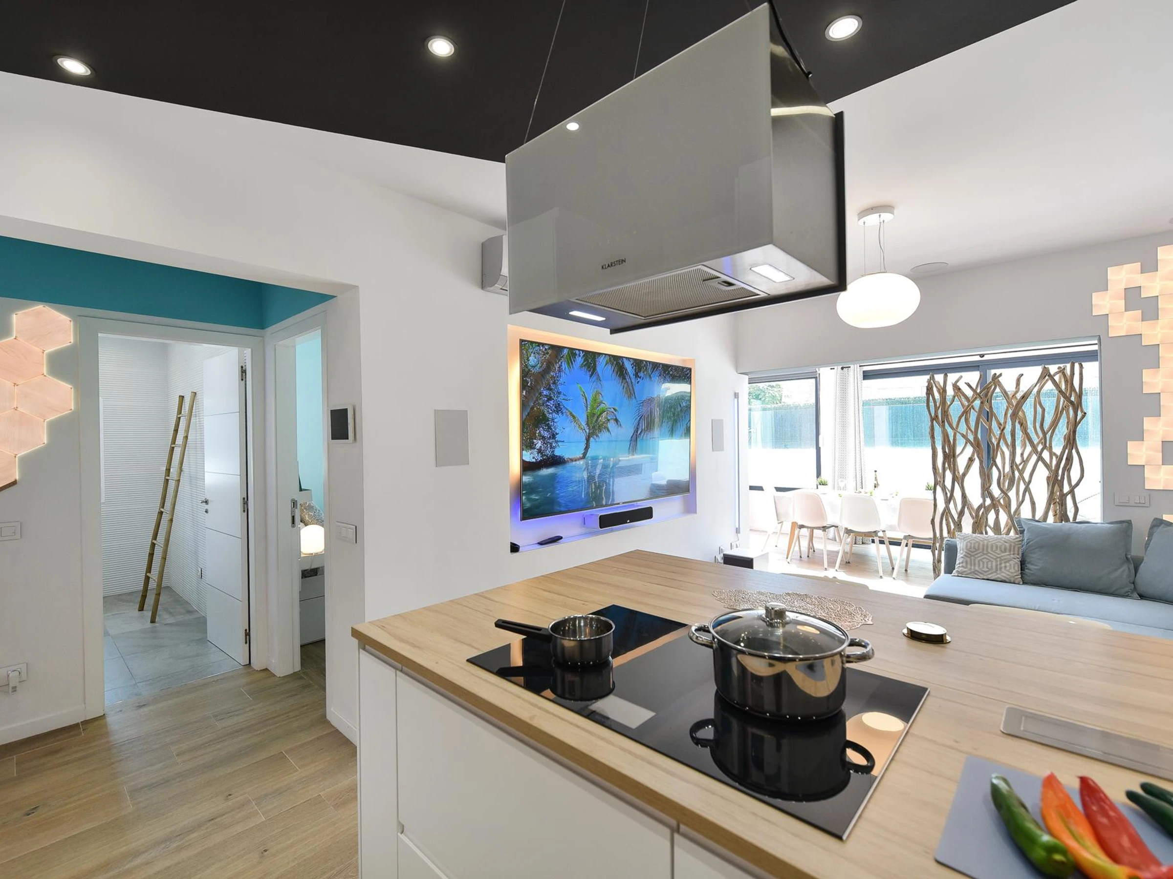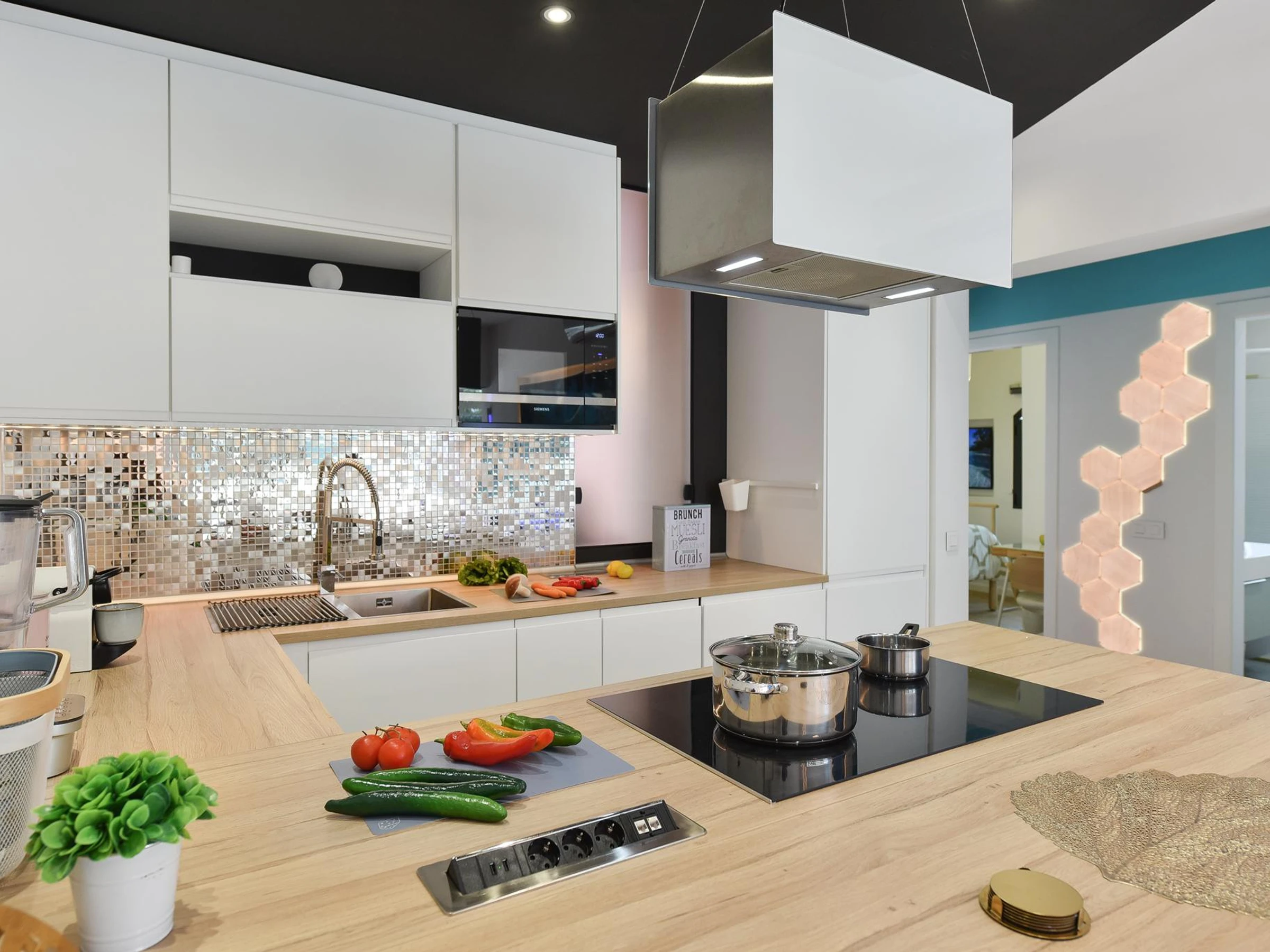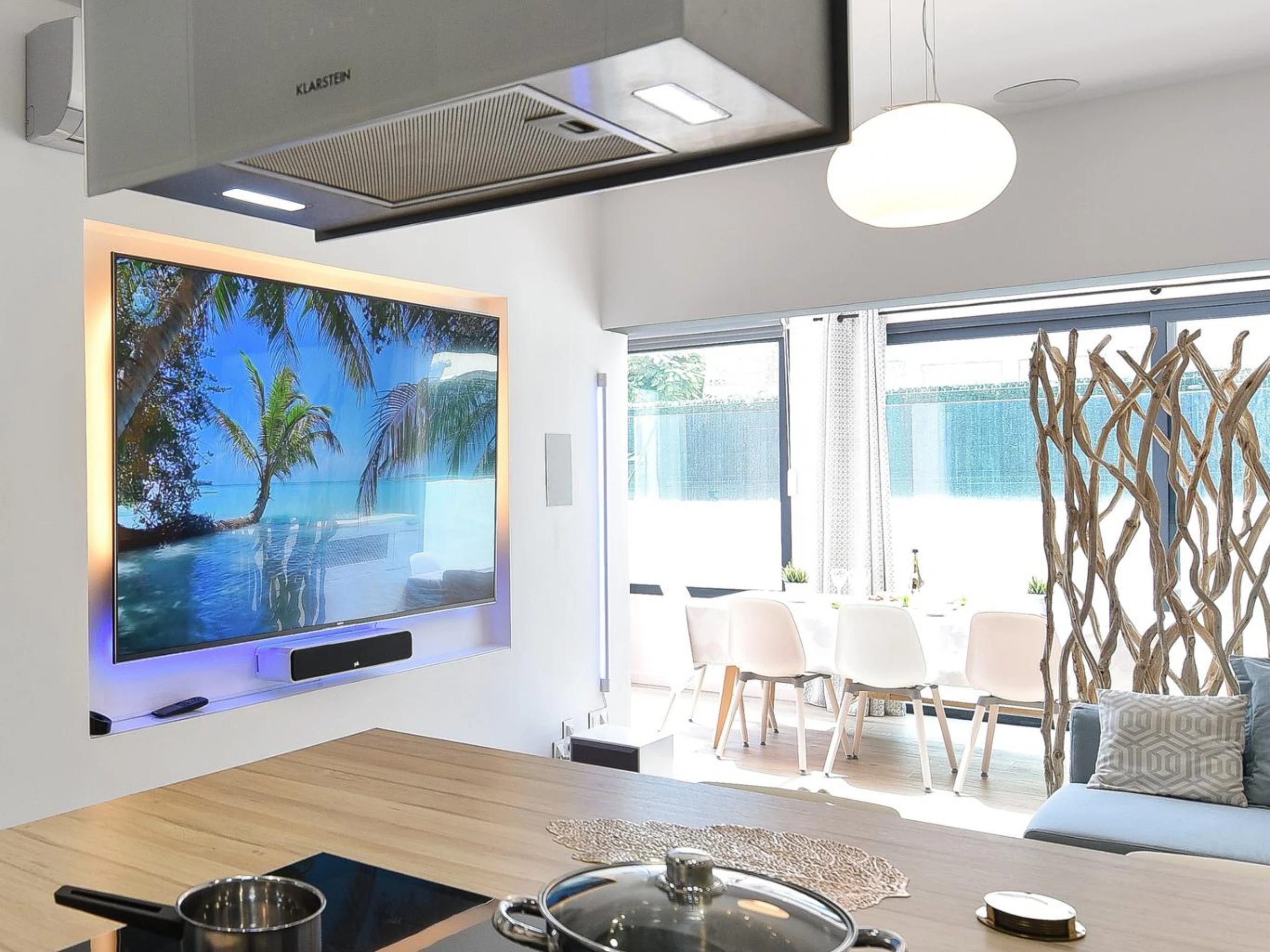 La cuisine, est équipée avec réfrigérateur, micro-ondes, four, congélateur, lave-vaisselle, ustensiles/cuisine et cafetière.