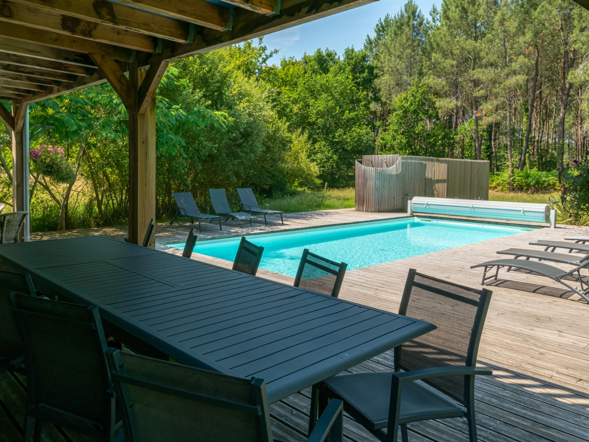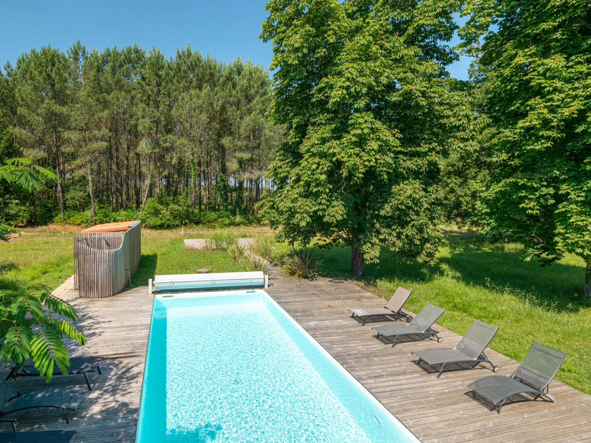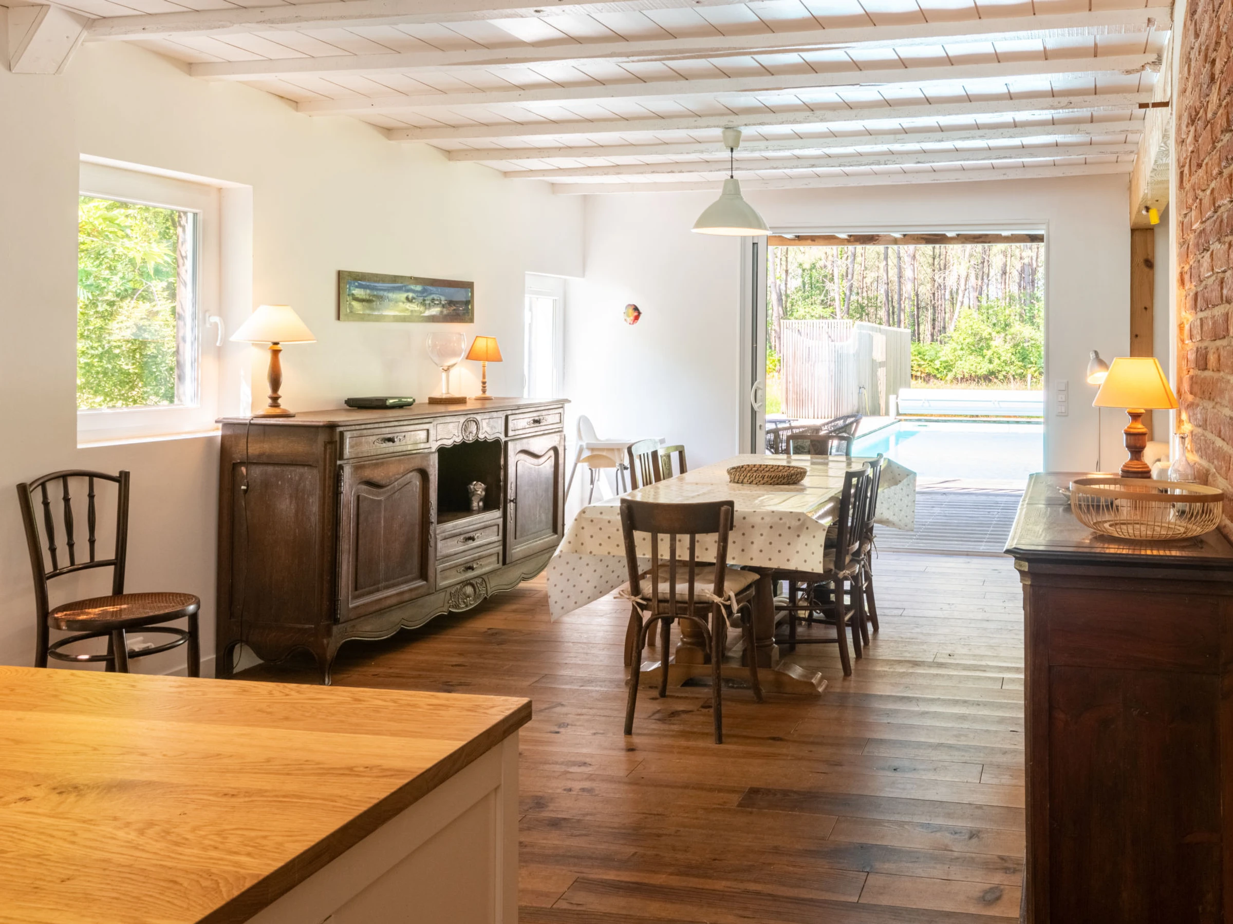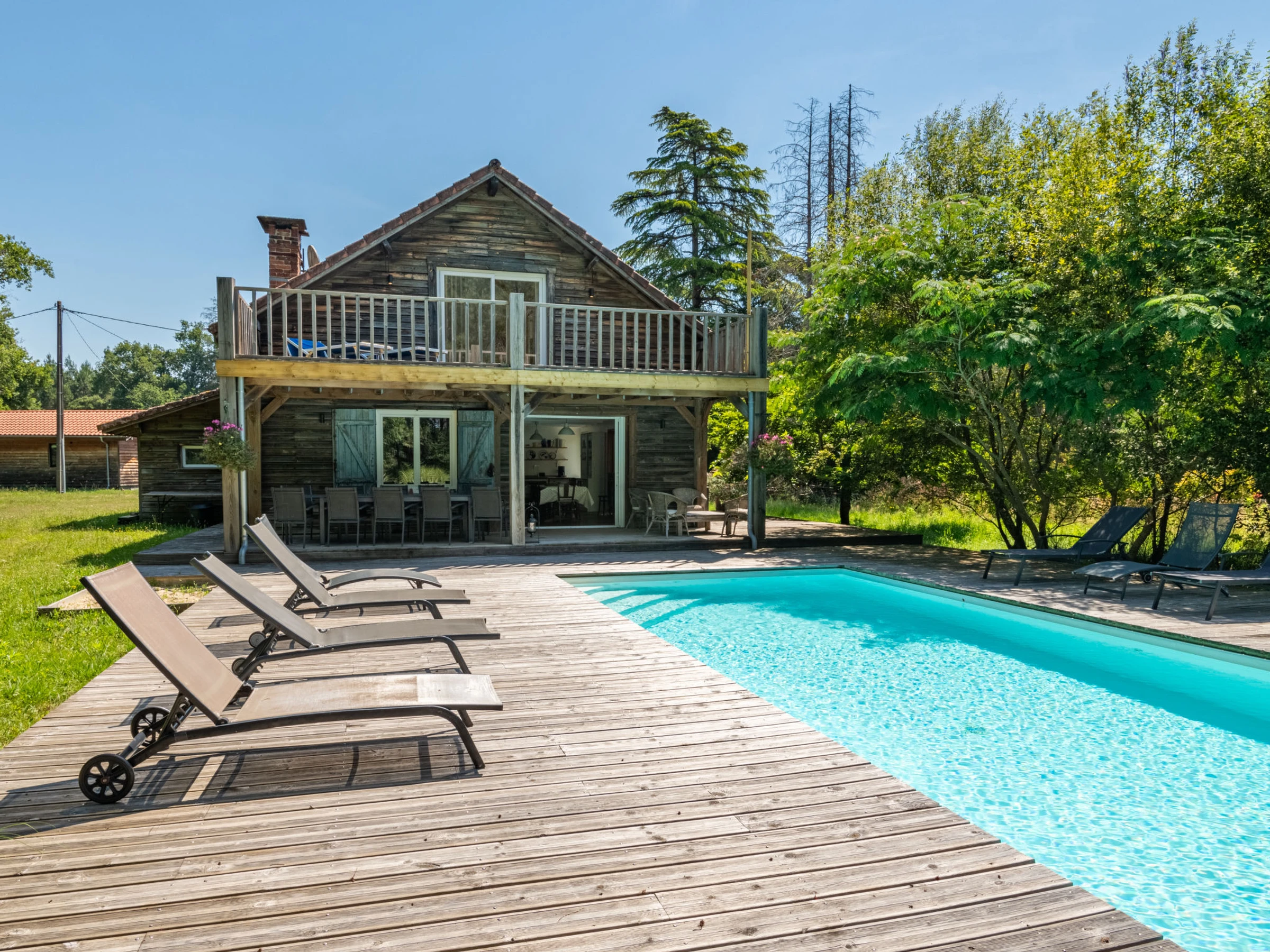 Belle maison individuelle "La Grange du Belon". Location composée d'un bâtiment principal et d'une annexe, dans le hameau de Le Belon, à 2.5 km du centre de Mézos, à 5.5 km du centre de Saint Julien en Born, à 10 km du centre de Contis Plage, situation tranquille, à 10 km de la mer. A usage privé: terrain à l'état naturel 800 m2 avec arbres, piscine chauffée (10 x 4 m, profondeur 150 cm, disponibilité saisonnière: [hidden] - [hidden] avec marches intérieures et protection par couverture de volet. Douche extérieure, entretien de la piscine par le propriétaire/jardinier. Place de parking (pour 3 voitures) près de la maison sur le terrain. Magasins 2.5 km, supermarché 5 km, arrêt de bus "Gare de Saint Julien en Born" 4 km, plage de sable "Contis Plage" 10 km. Le propriétaire n'accepte pas les groupes de jeunes.