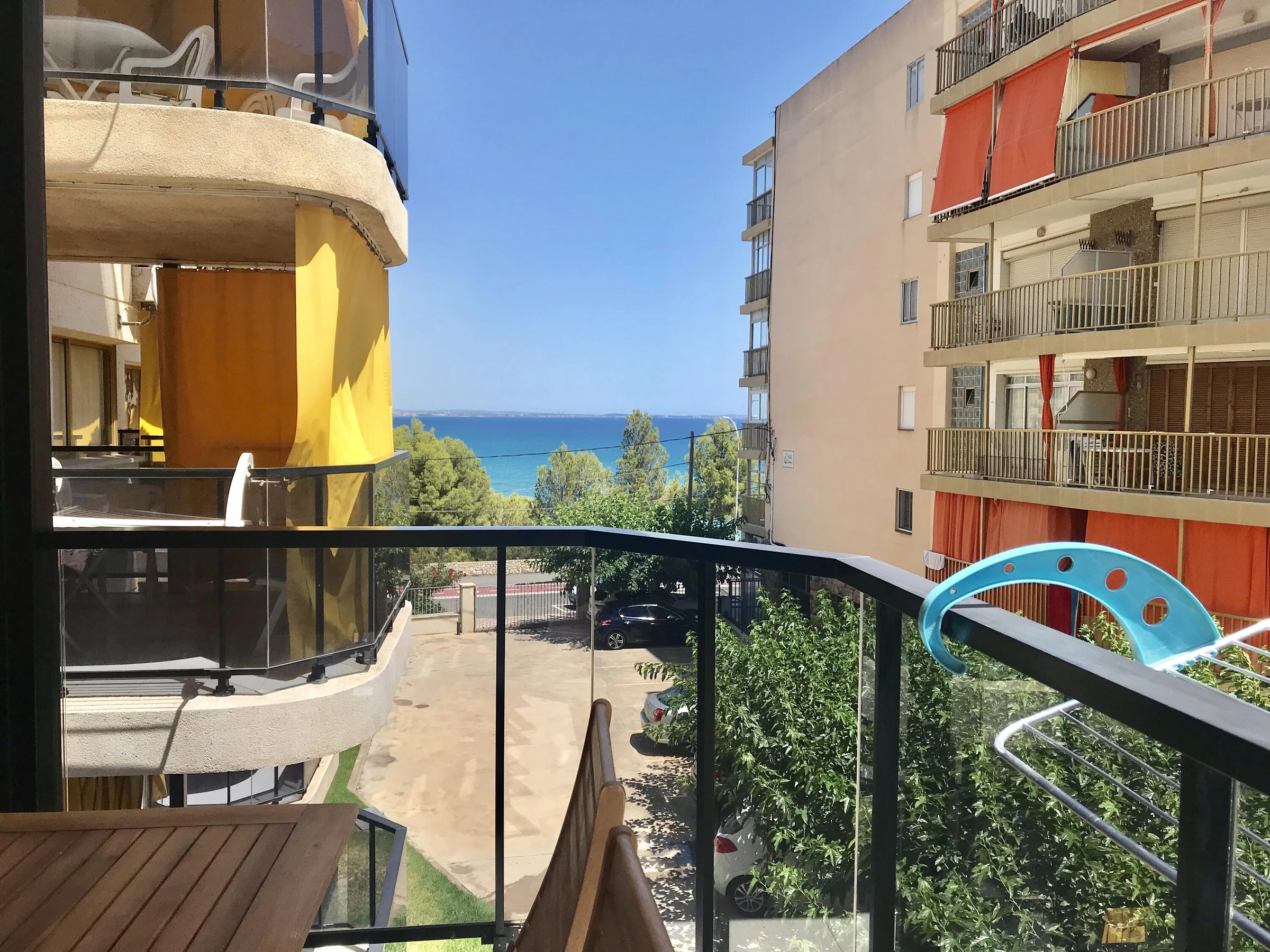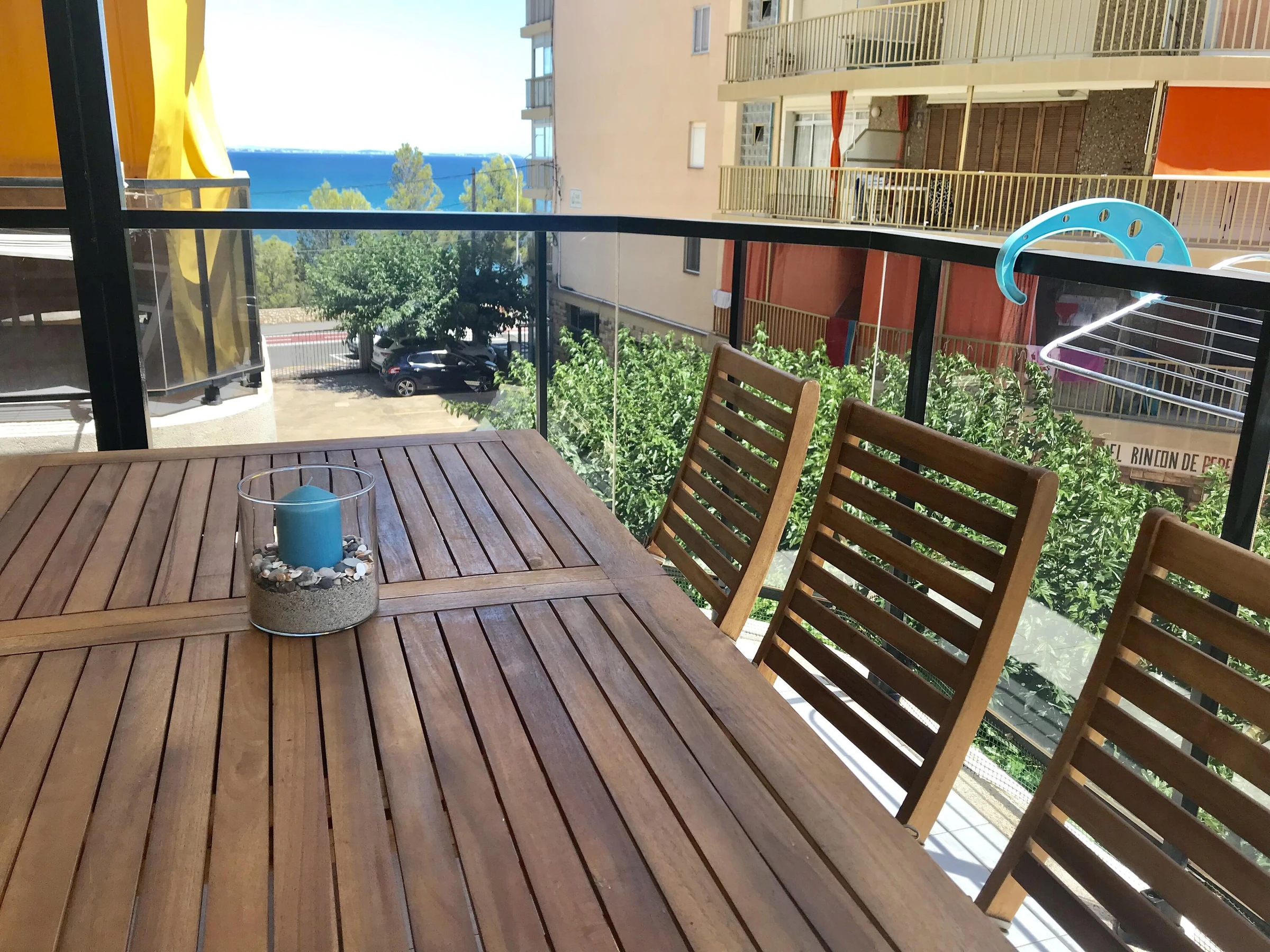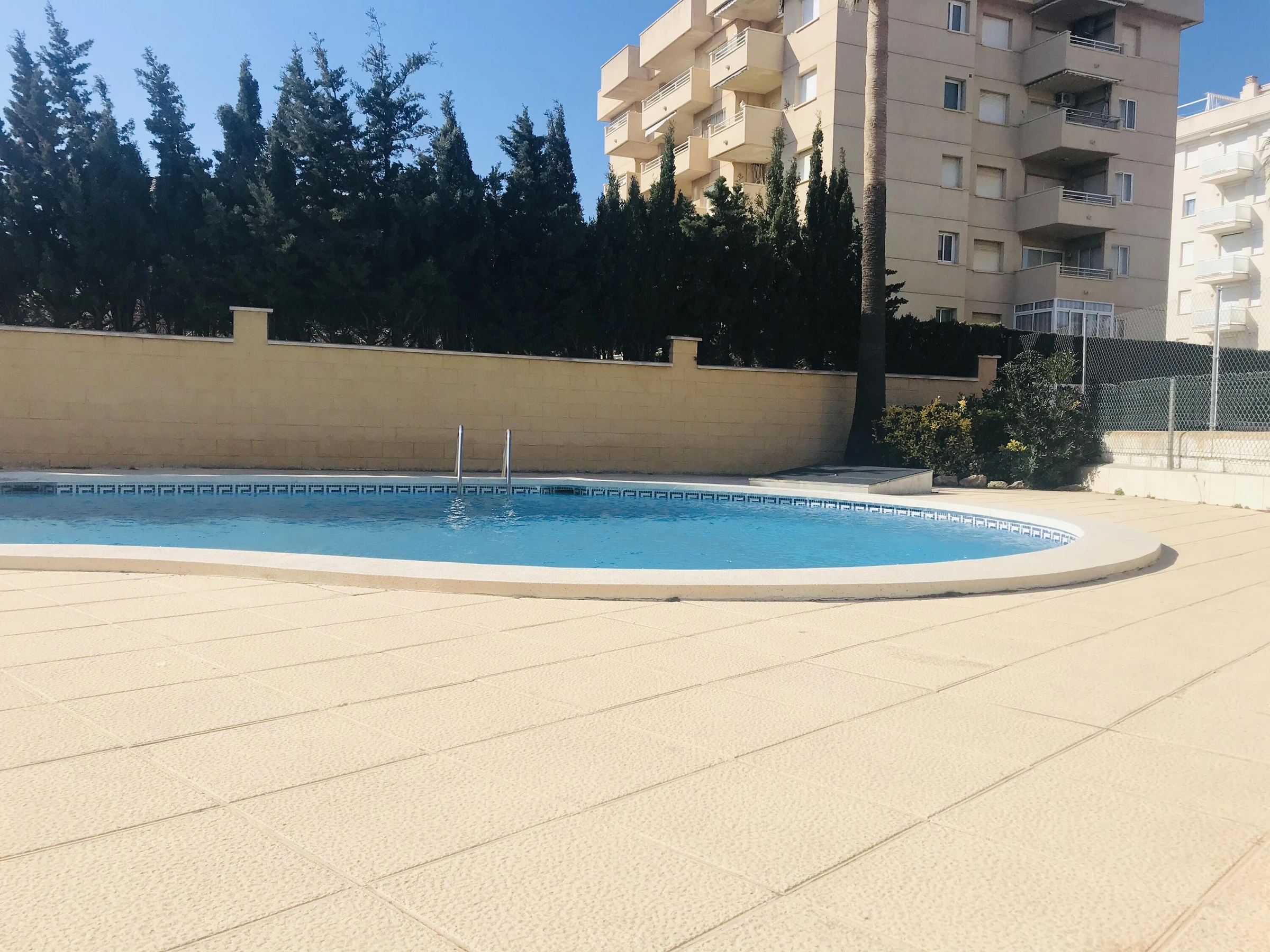 Appartement en bord de mer, à deux pas de Cala de las Sirenas. L'appartement comprend une place de parking dans la résidence, un ascenseur et une piscine commune. Il se compose d'un séjour/salle à manger avec cuisine américaine et accès à une terrasse offrant une vue partielle sur la mer. On y trouve également une chambre principale avec un lit double et un placard intégré, une salle de bains avec douche, une deuxième chambre avec deux lits simples et une buanderie. La climatisation est disponible dans le séjour (en supplément).