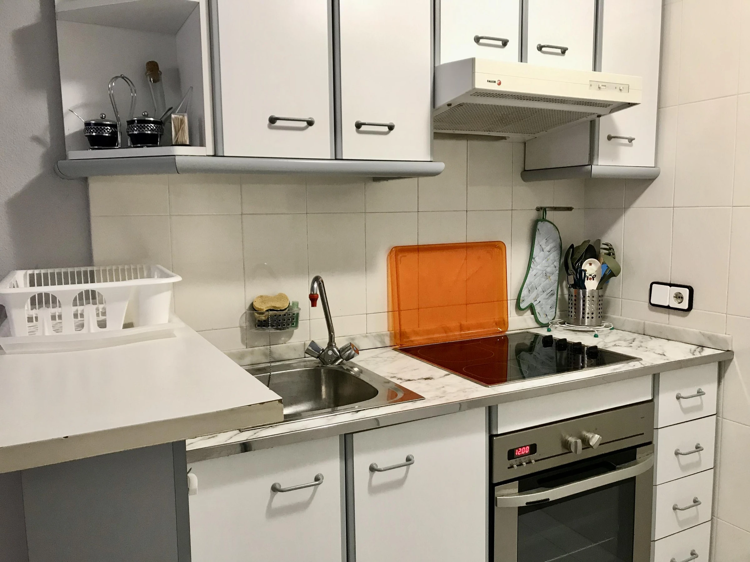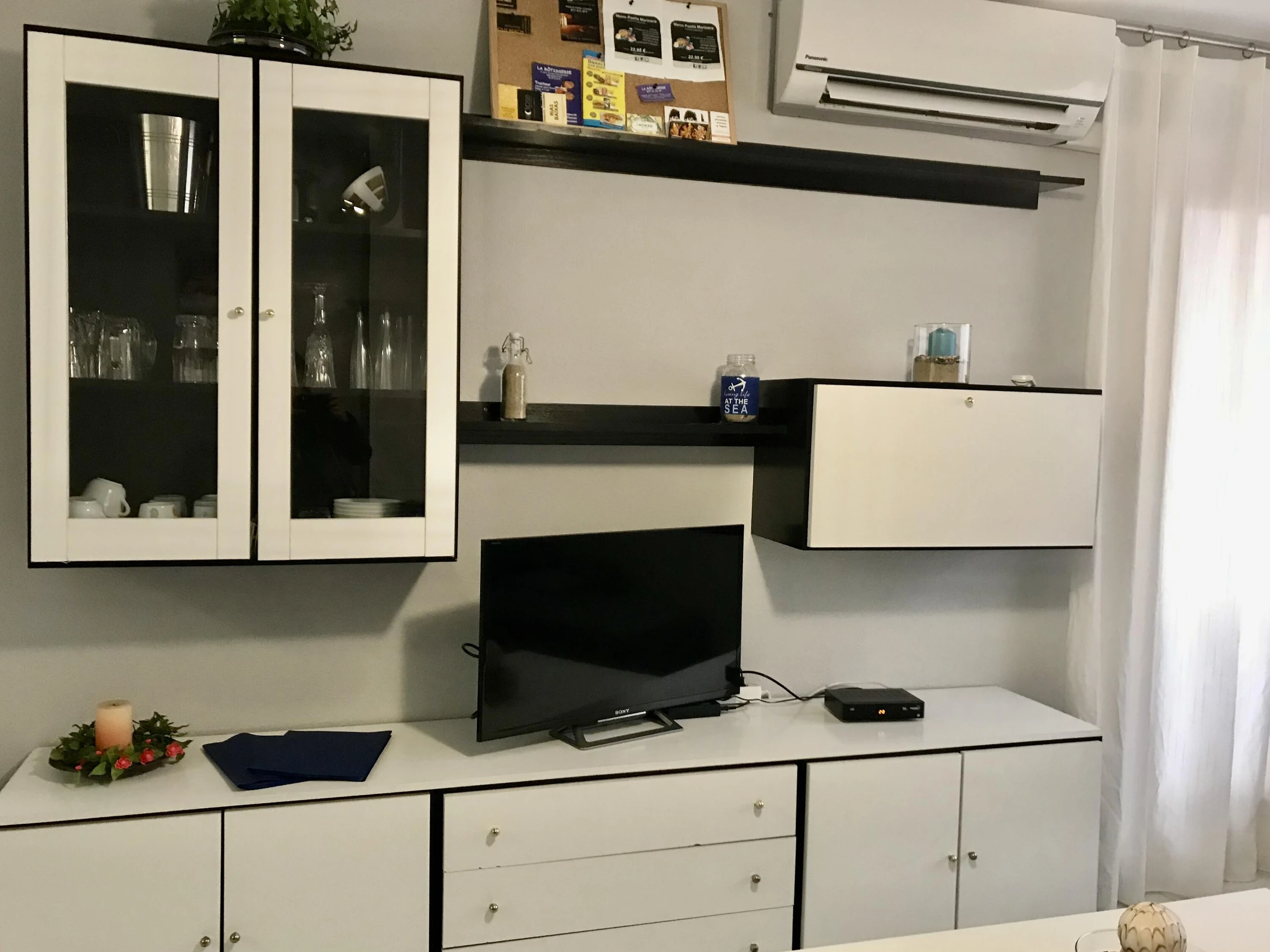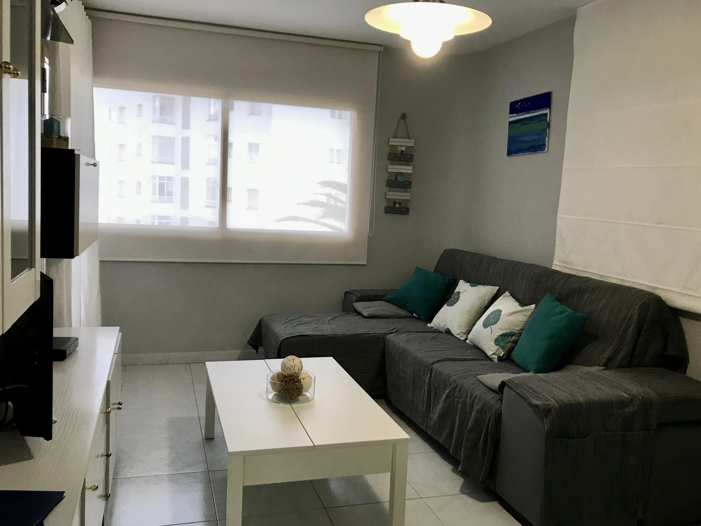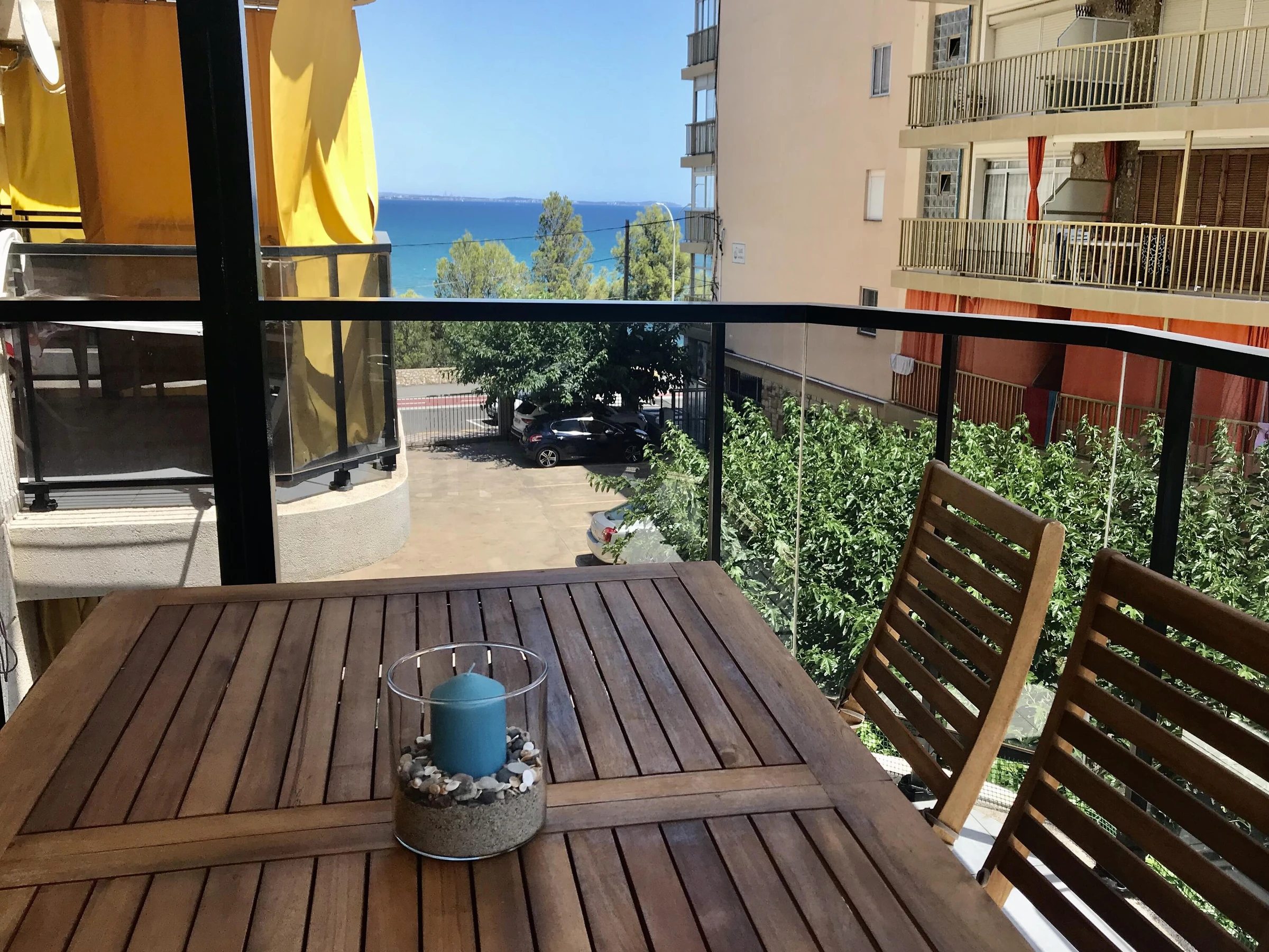 Appartement en bord de mer, à deux pas de Cala de las Sirenas. L'appartement comprend une place de parking dans la résidence, un ascenseur et une piscine commune. Il se compose d'un séjour/salle à manger avec cuisine américaine et accès à une terrasse offrant une vue partielle sur la mer. On y trouve également une chambre principale avec un lit double et un placard intégré, une salle de bains avec douche, une deuxième chambre avec deux lits simples et une buanderie. La climatisation est disponible dans le séjour (en supplément).