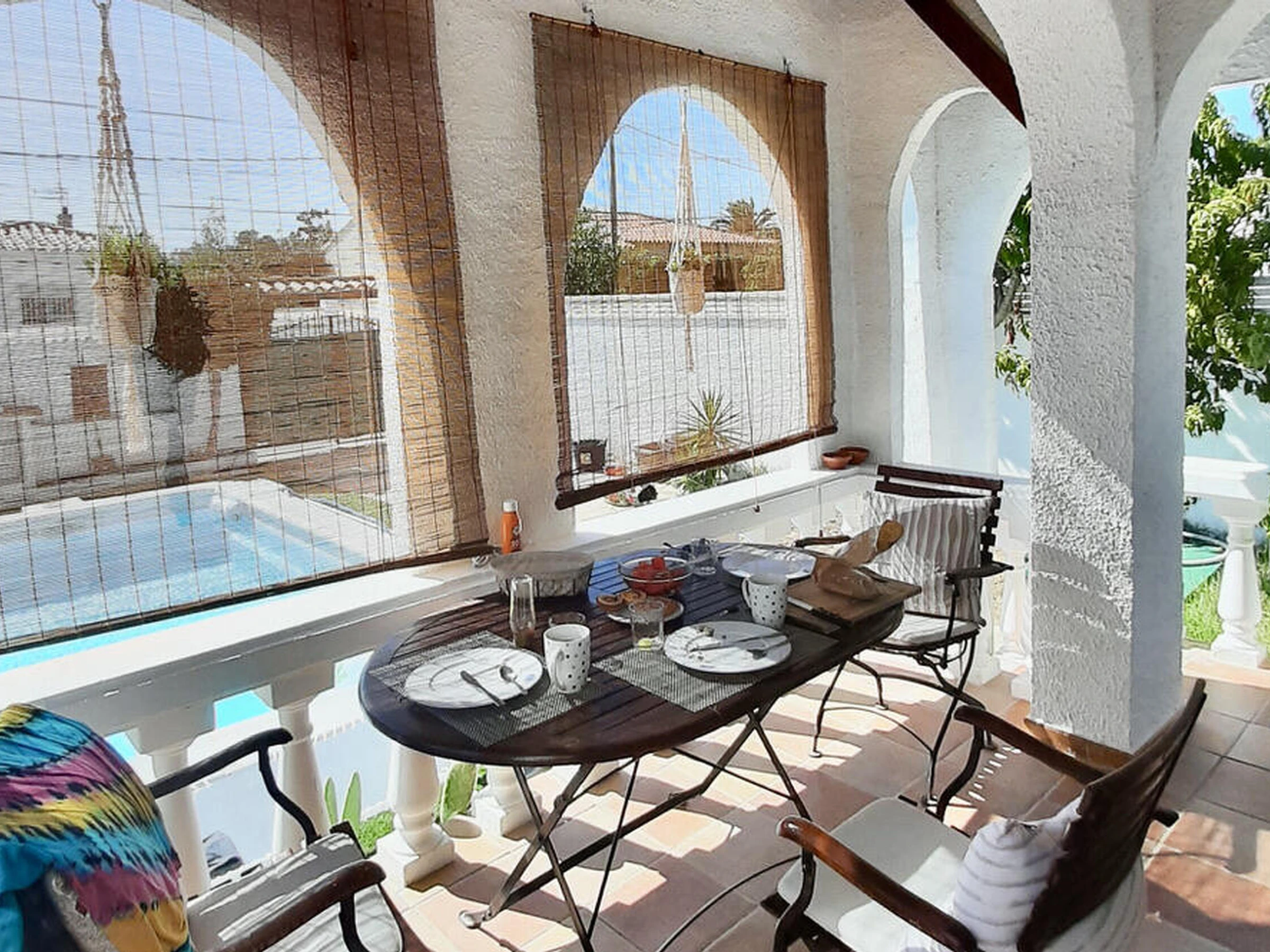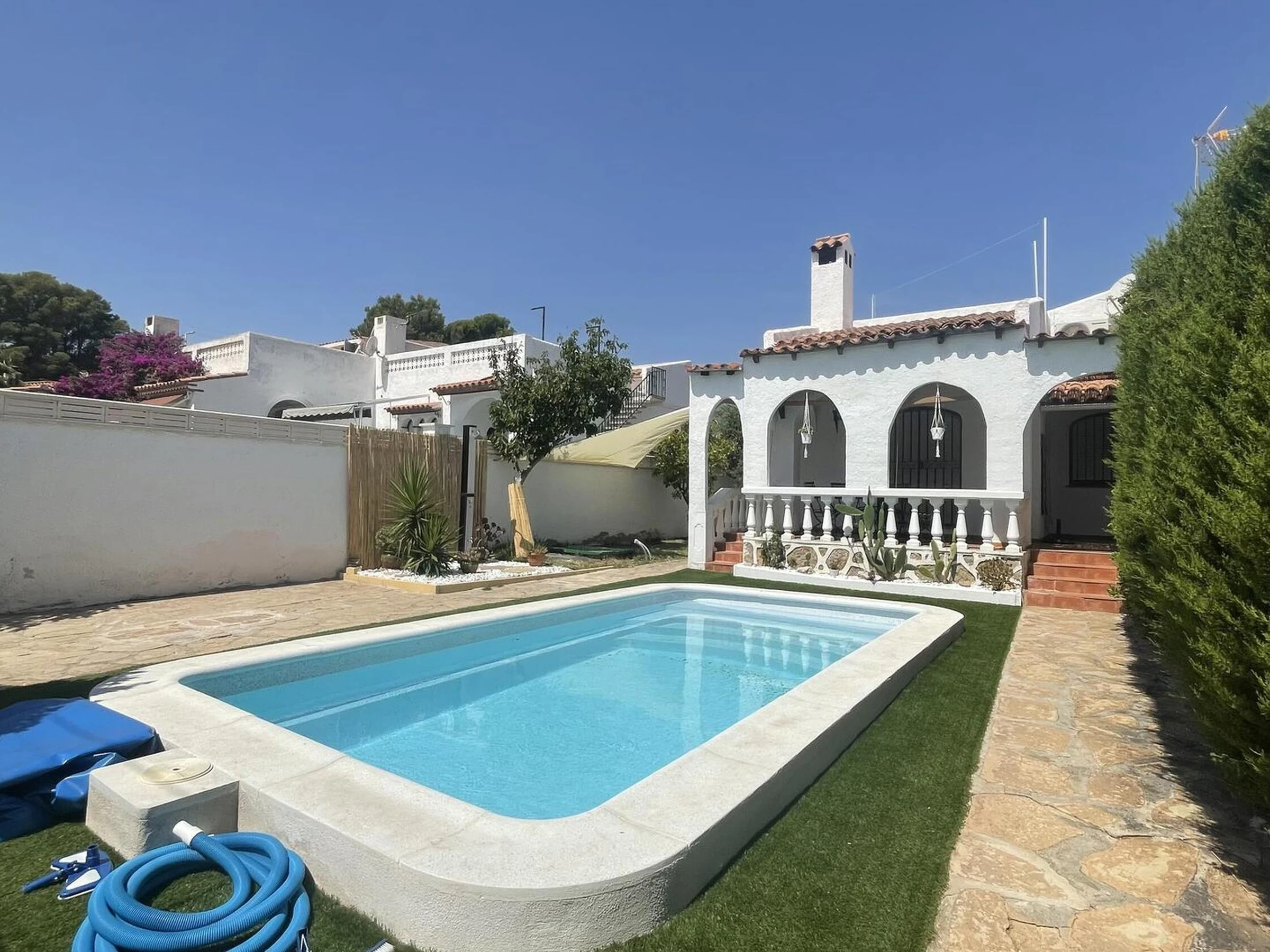 Belle maison partiellement rénovée dans l'urbanisation Villa Marina à environ 3 km de la mer. La maison est sur un terrain d'environ 300m2 et est construite au rez-de-chaussée. Il se compose d'un séjour avec TV, wifi, cuisine ouverte avec lave-linge, lave-vaisselle, micro-ondes, plaque vitrocéramique... Trois chambres doubles et une salle de bain avec baignoire. Porche fantastique. Espace barbecue couvert. Piscine 5*3 et 140 cm de profondeur. Parking extérieur. Climatisation a payer