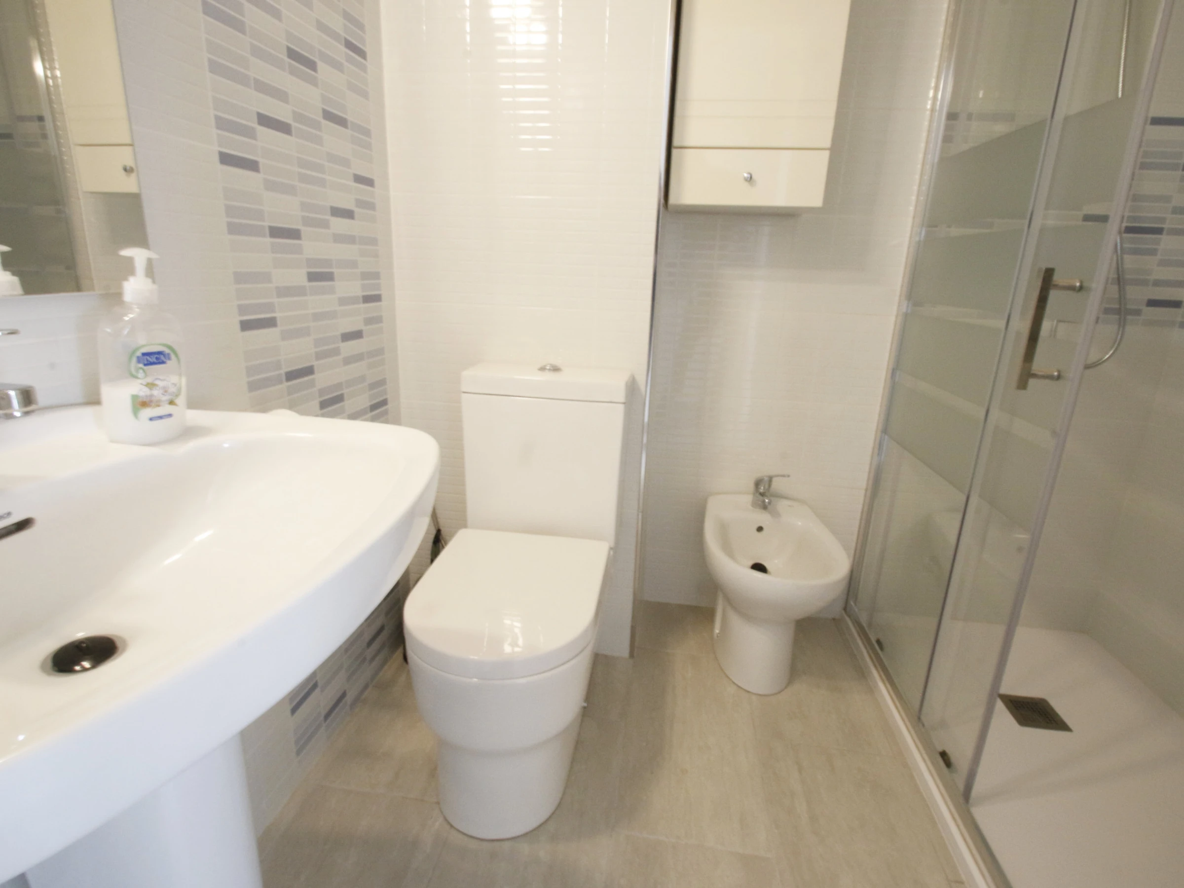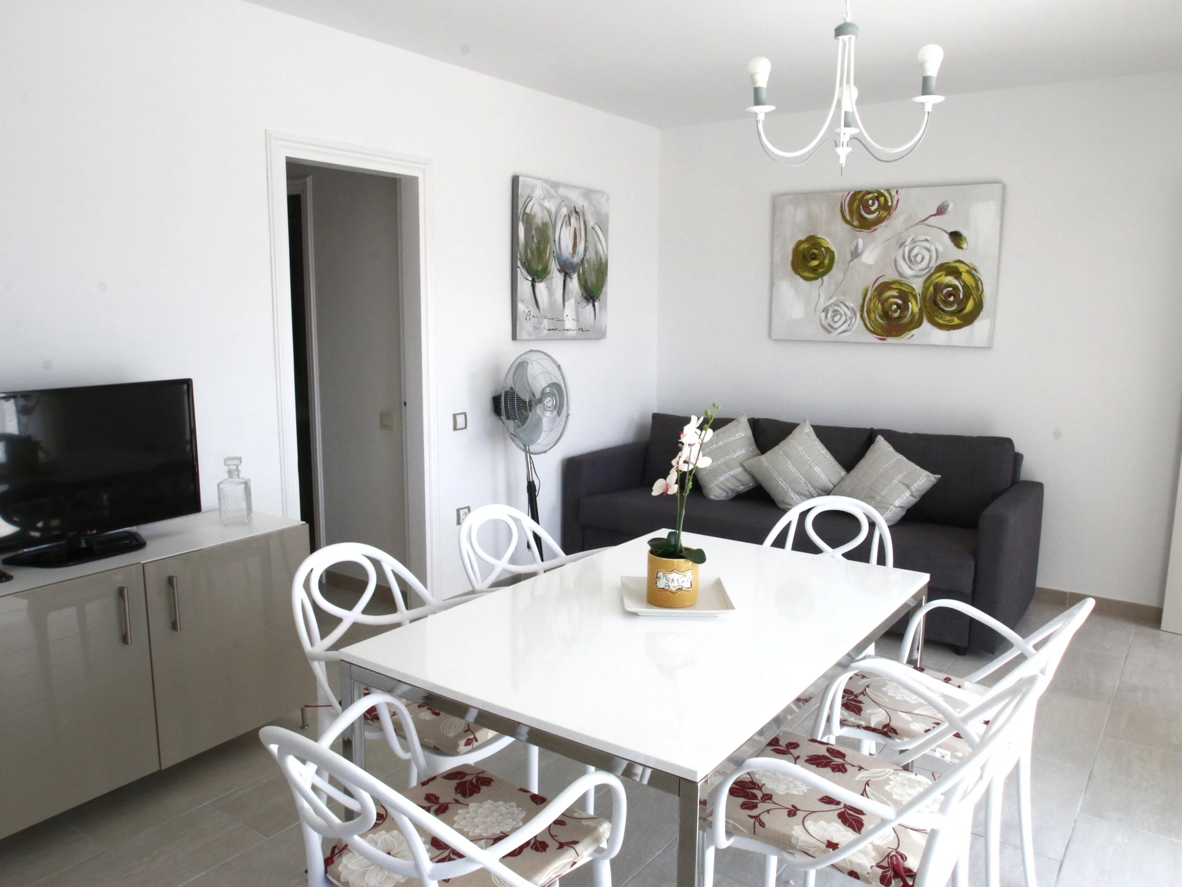 Appartement au premier étage, très spacieux et lumineux, d'une surface de 85 m². Il se compose de trois chambres doubles, d'un salon avec canapé-lit, d'une cuisine, d'une salle de bains avec douche, d'un wc et d'une terrasse avec vue sur la mer.