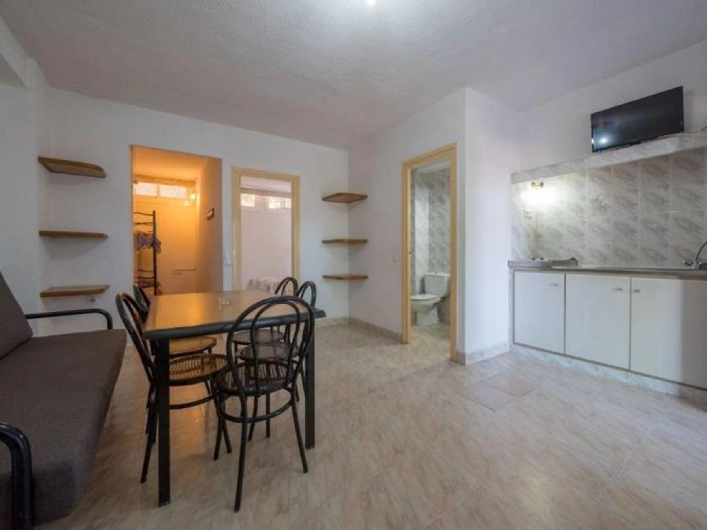 - Il comprend: salon-salle à manger avec banc-lit simple, kitchenette, 1 chambre double, salle de bains et petite terrasse.