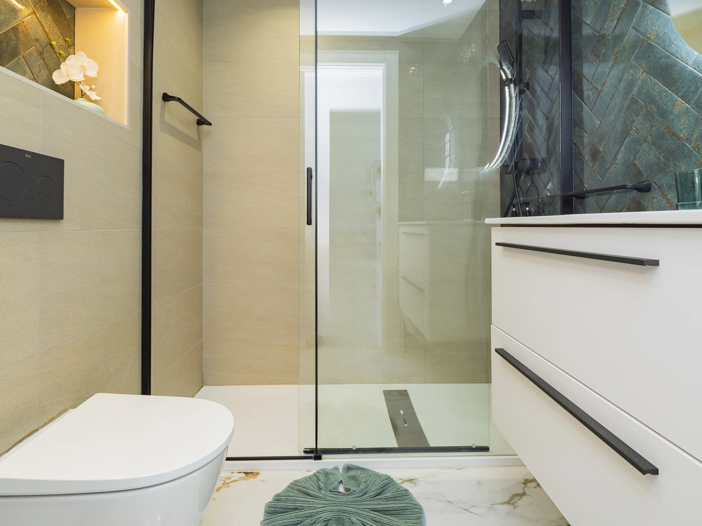 En ce qui concerne le repos, il dispose de deux chambres avec climatisation centralisée et fenêtres donnant sur l'extérieur. La chambre principale dispose d'un lit de matrimonial et d'un accès à la terrasse, tandis que la deuxième chambre offre deux lits individuels, idéal pour les enfants ou les amis. La salle de bain est élégante et fonctionnelle, avec une douche.
