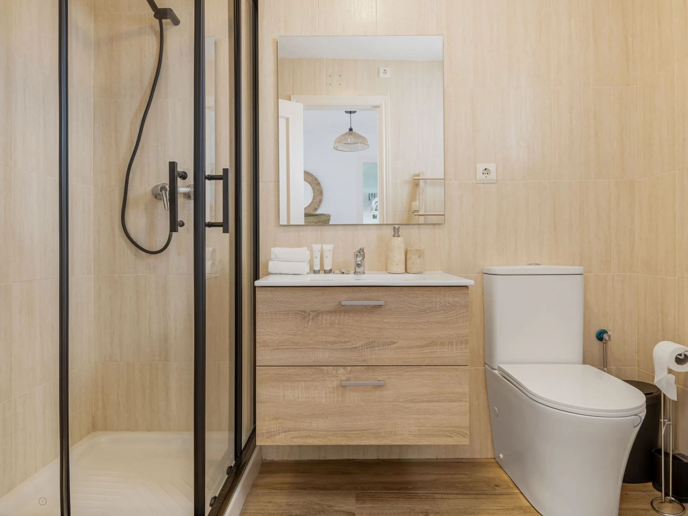Elle dispose de ascenseur, mobilier de jardin, clôture, 18 m² de terrasse, lave-linge, fer à repasser, coffre-fort, accès internet (wifi), sèche-cheveux, balcon, chauffage central, climatisation dans tout le logement, piscine collective, garage même bâtiment, 1 Télévision.