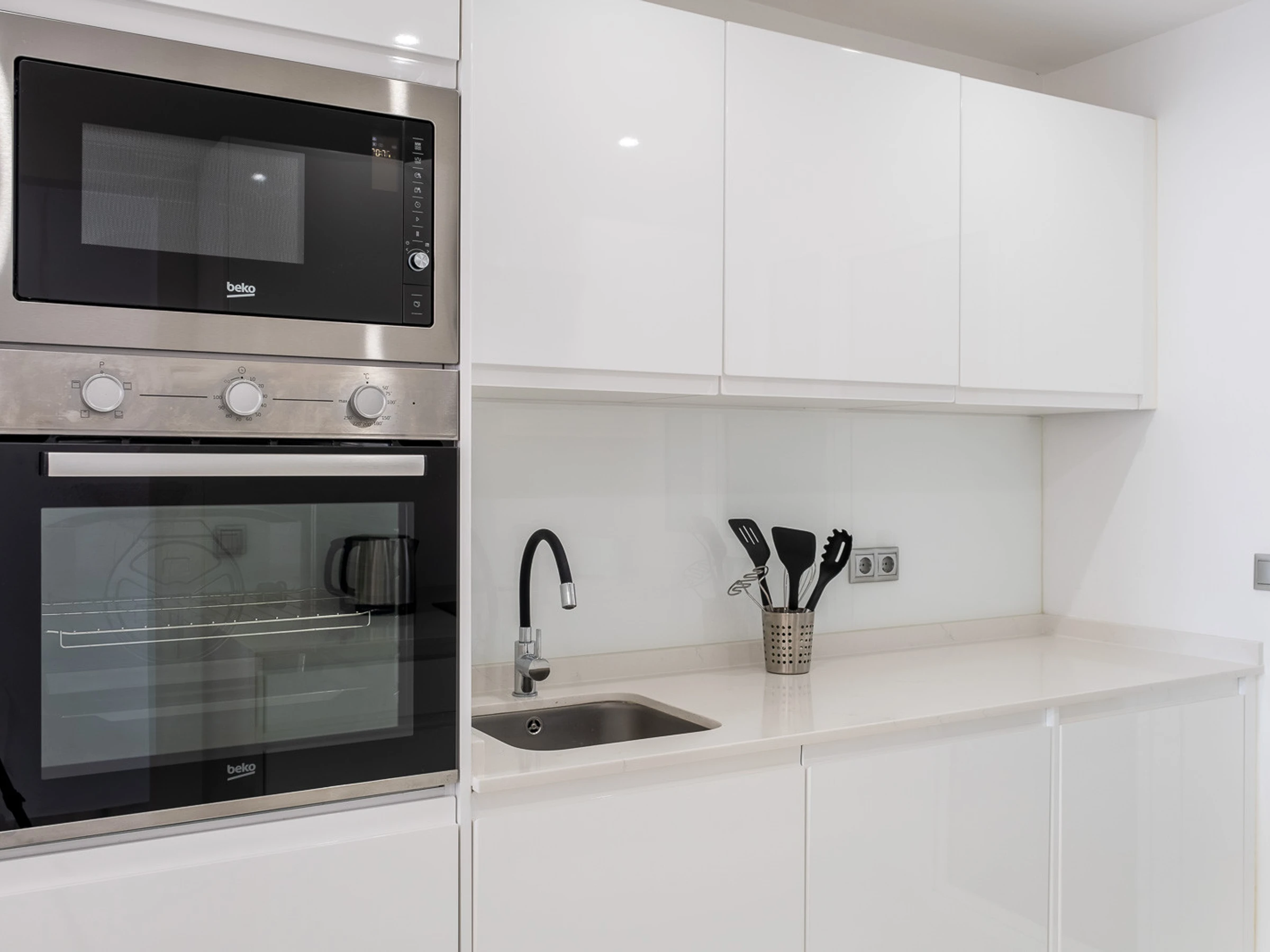 La cuisine indépendante, à vitrocéramique, est équipée avec réfrigérateur, micro-ondes, four, congélateur, lave-vaisselle, vaisselle/couverts, ustensiles/cuisine, cafetière, grille pain et bouilloire.
