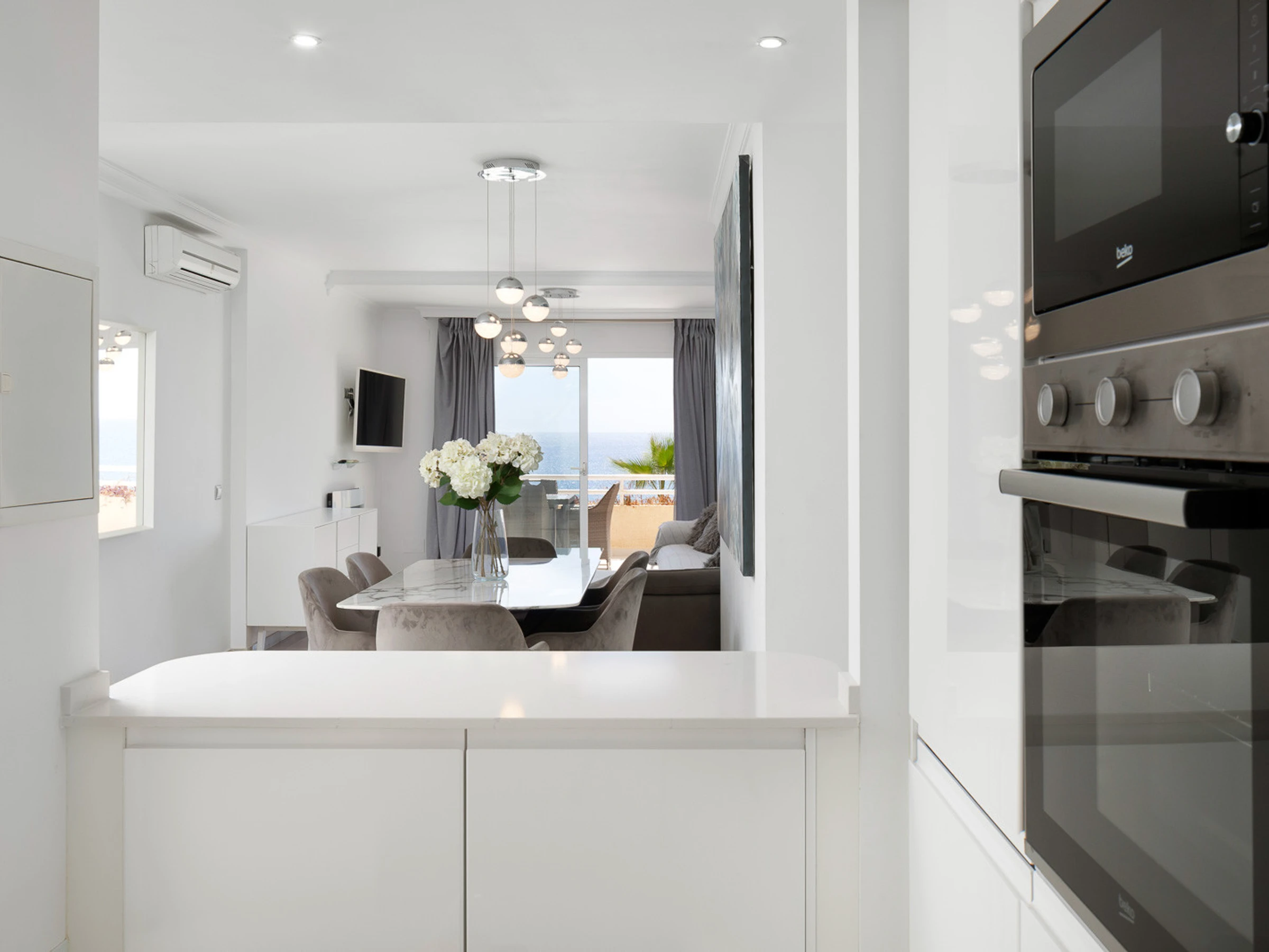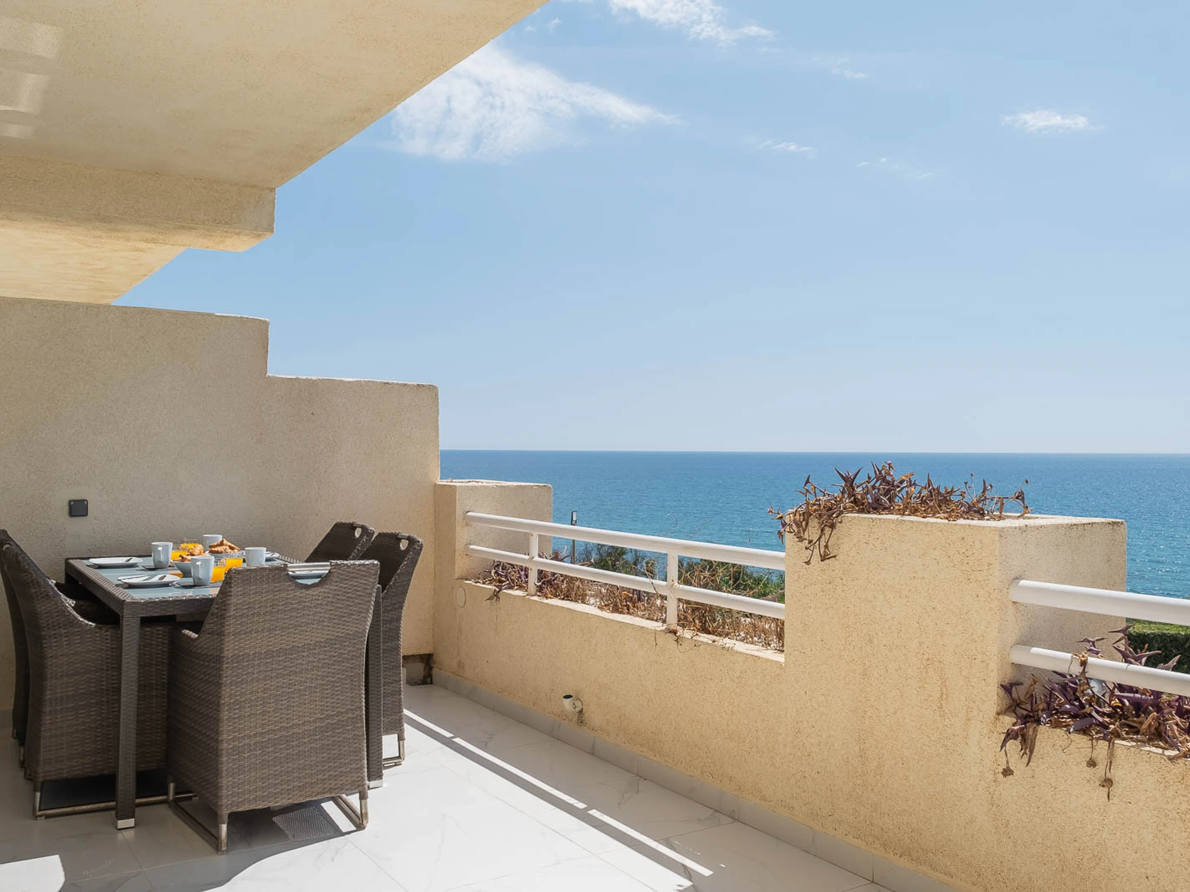 Logement de 80 m² joli et totalement équipé, situé en front de plage, avec vue sur la mer et le jardin.