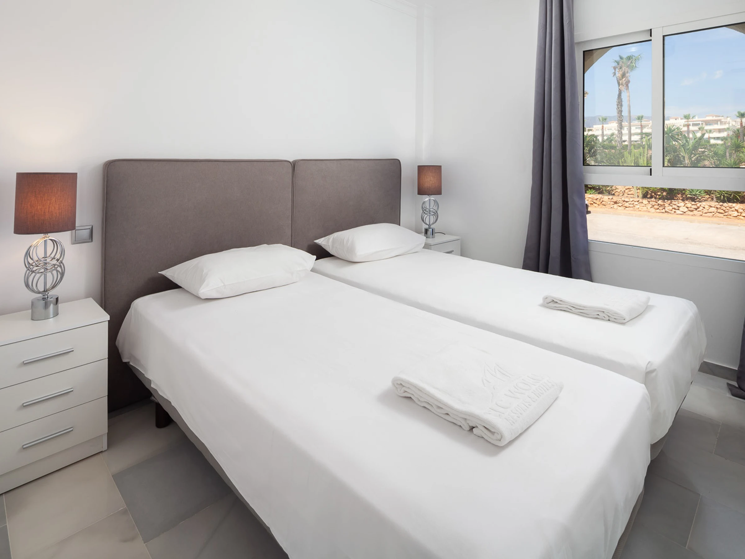 Elle dispose de mobilier de jardin, 20 m² de terrasse, lave-linge, fer à repasser, coffre-fort, accès internet (wifi), sèche-cheveux, zone pour les enfants, terrain de tennis, piste de paddle, alarme, chauffage pompe à chaleur, climatisation, piscine collective, garage et parking même bâtiment, 1 Télévision, tv satellite (Langues: Espagnol), radio.