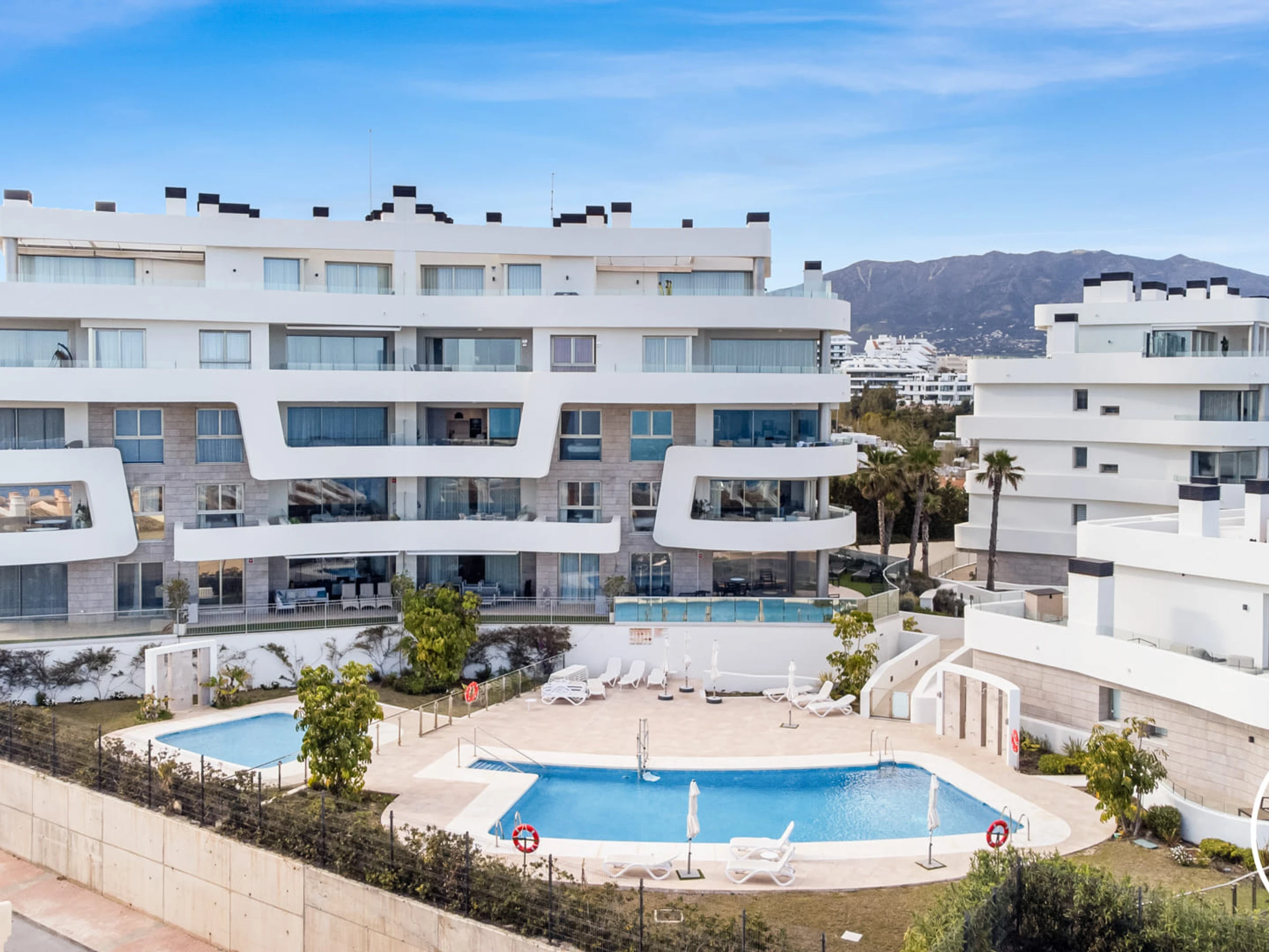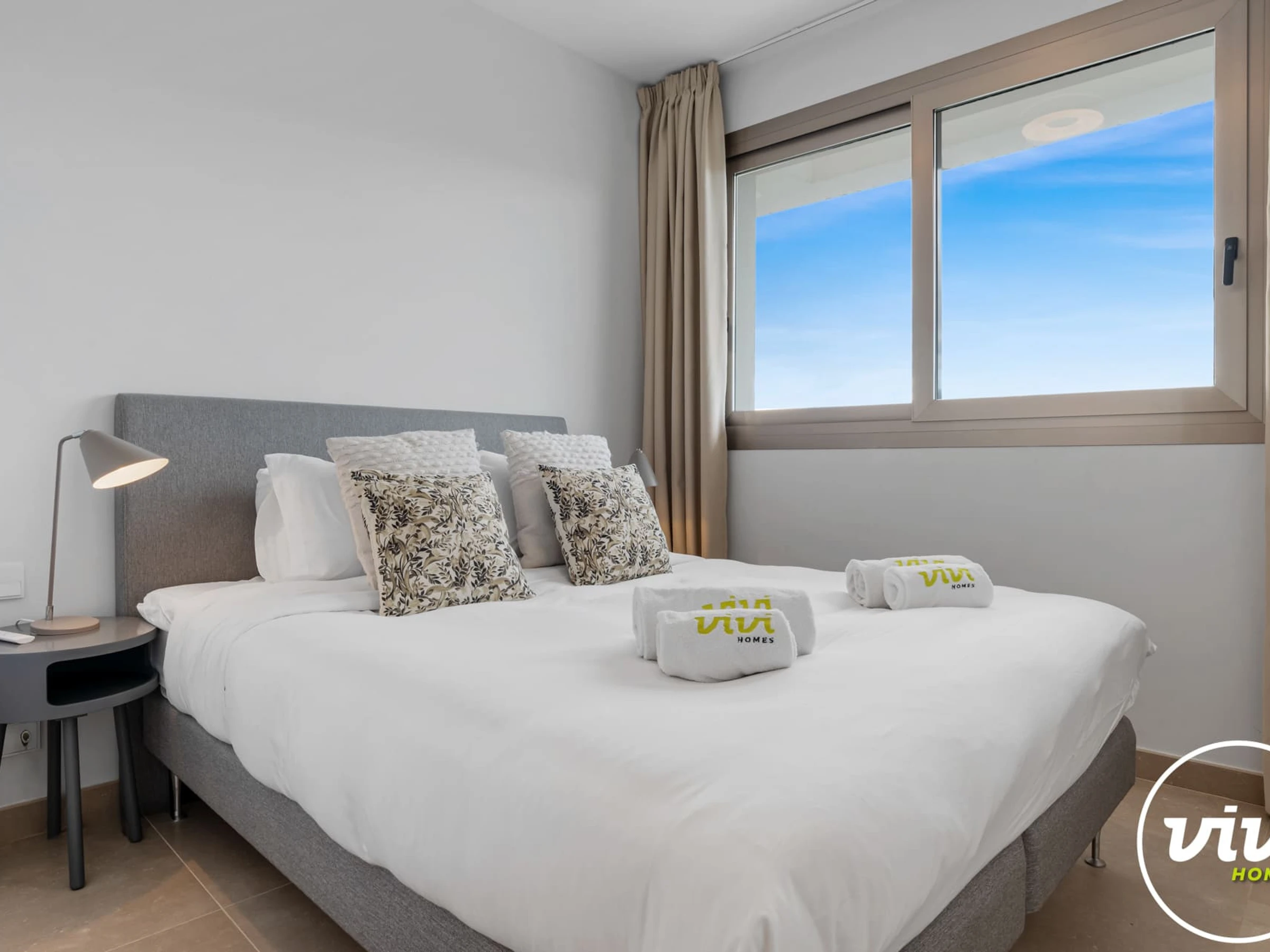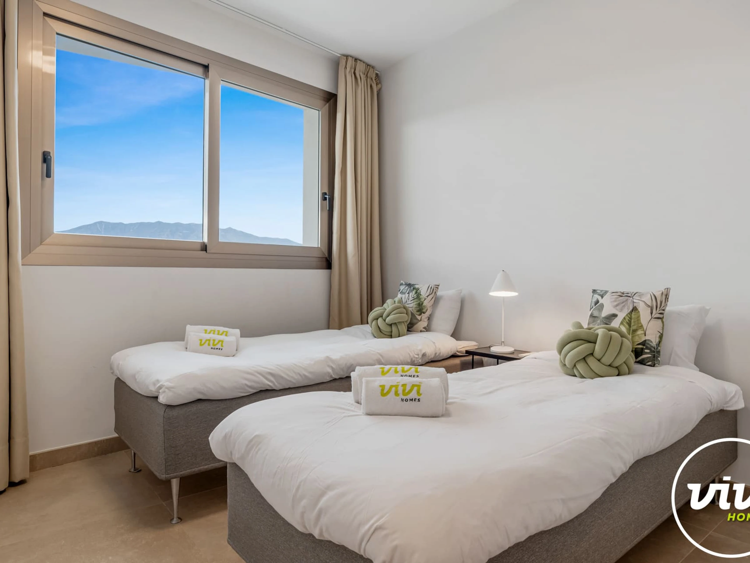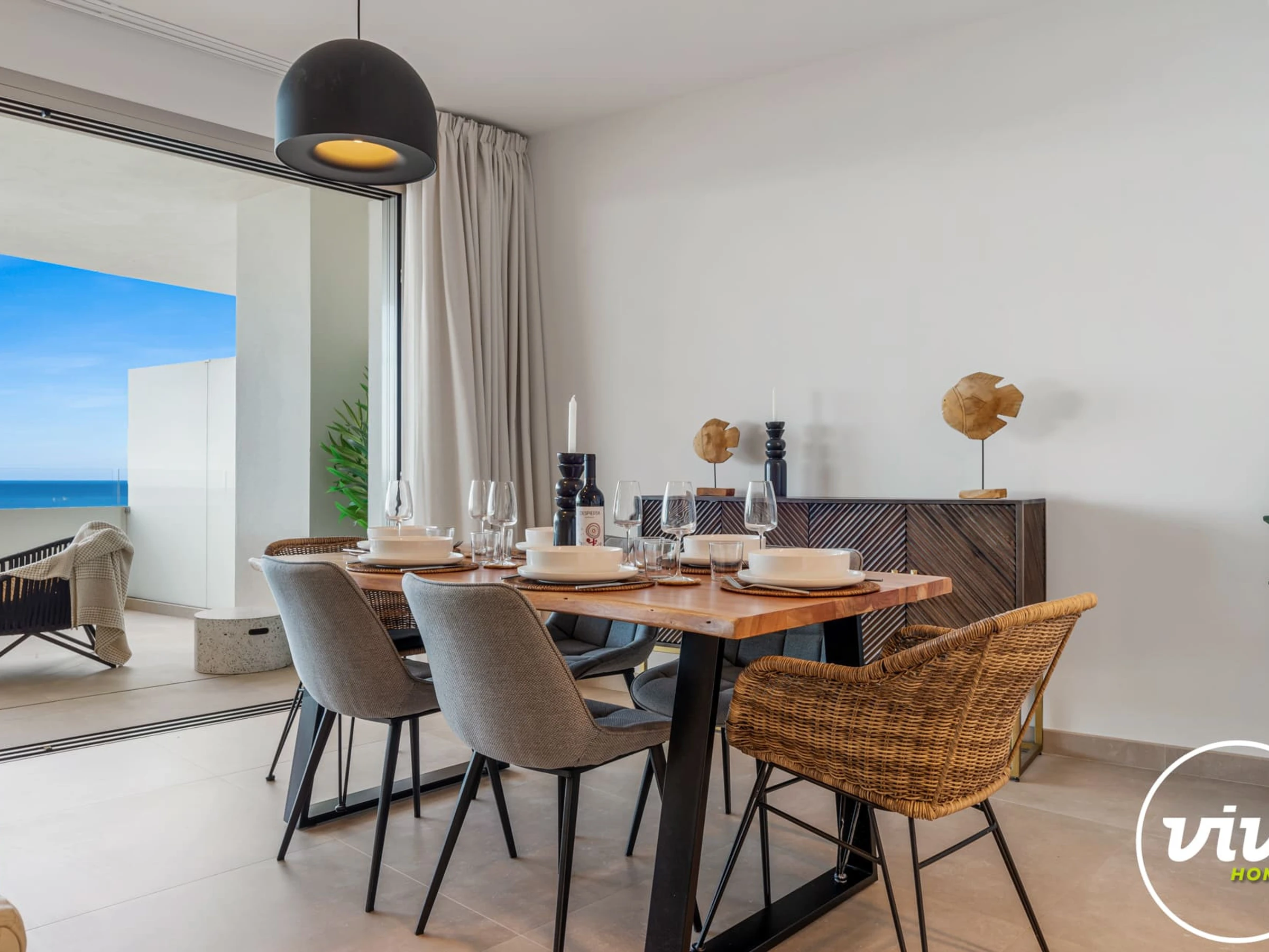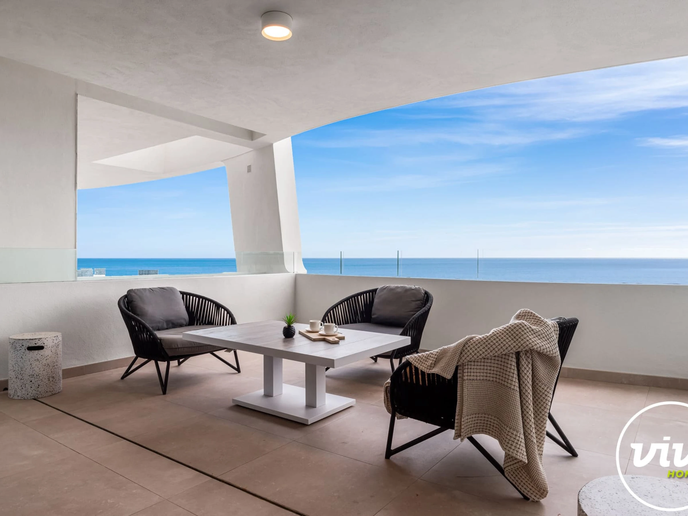 Logement de 115 m² joli et moderne, situé en front de plage, avec vue sur la mer et la montagne.