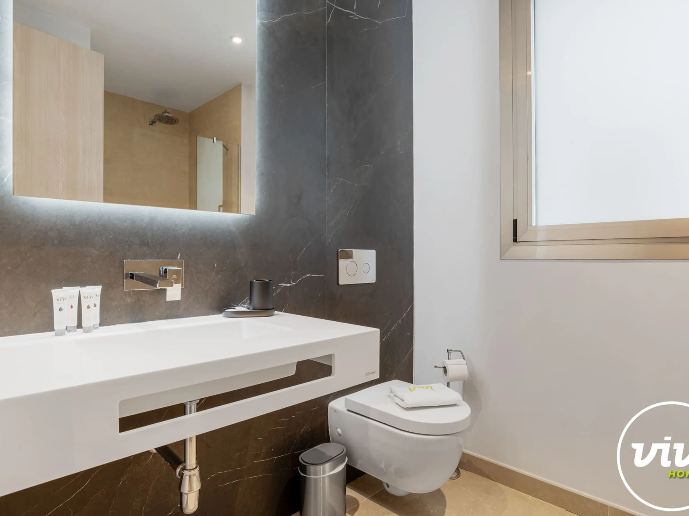 Elle dispose de ascenseur, jardin, mobilier de jardin, clôture, 30 m² de terrasse, lave-linge, sèche-linge, fer à repasser, coffre-fort, accès internet (wifi), sèche-cheveux, salle de sport, spa, chauffage central, climatisation dans tout le logement, piscine collective+infantile, garage et parking même bâtiment, 1 Télévision.
