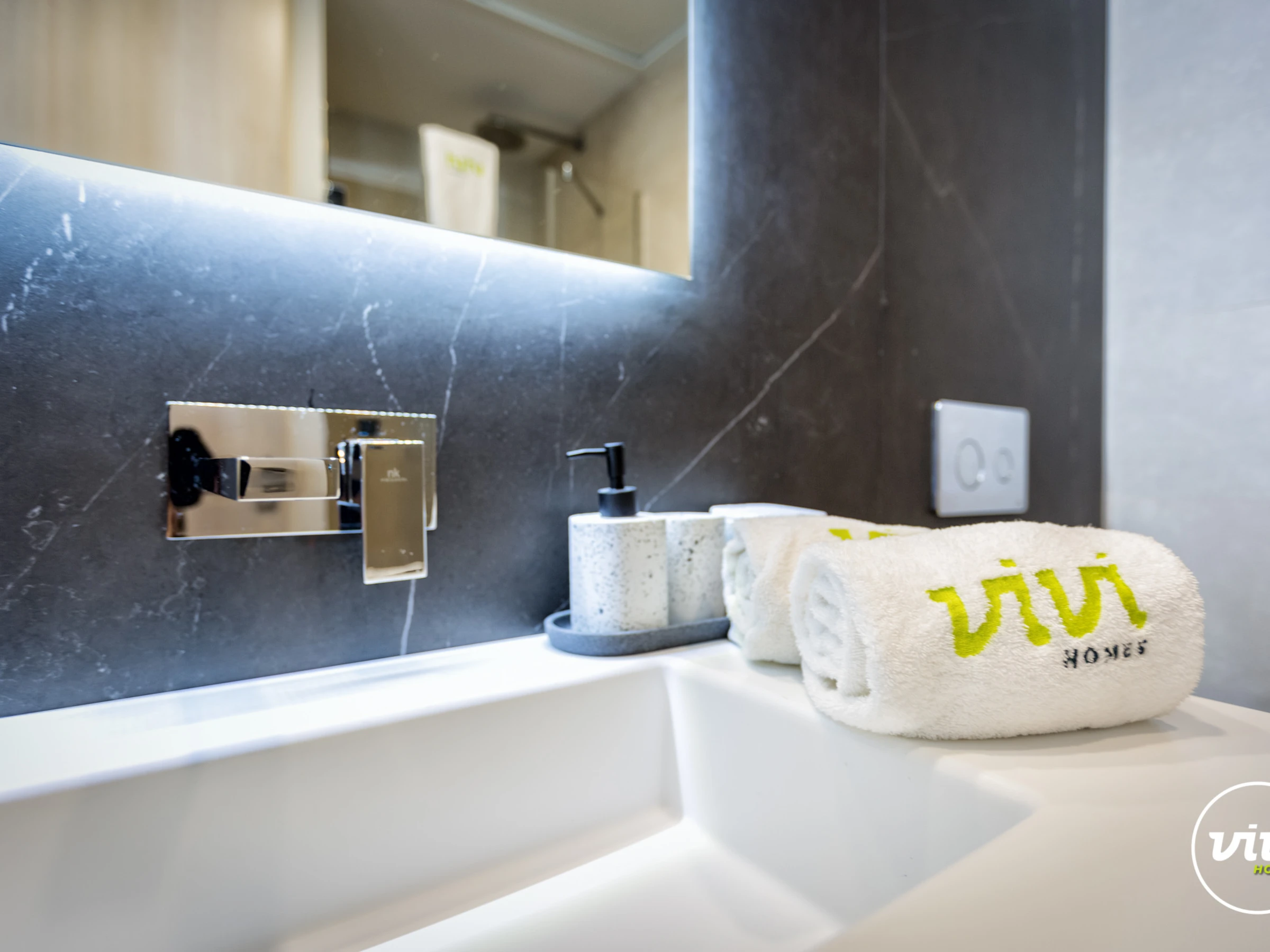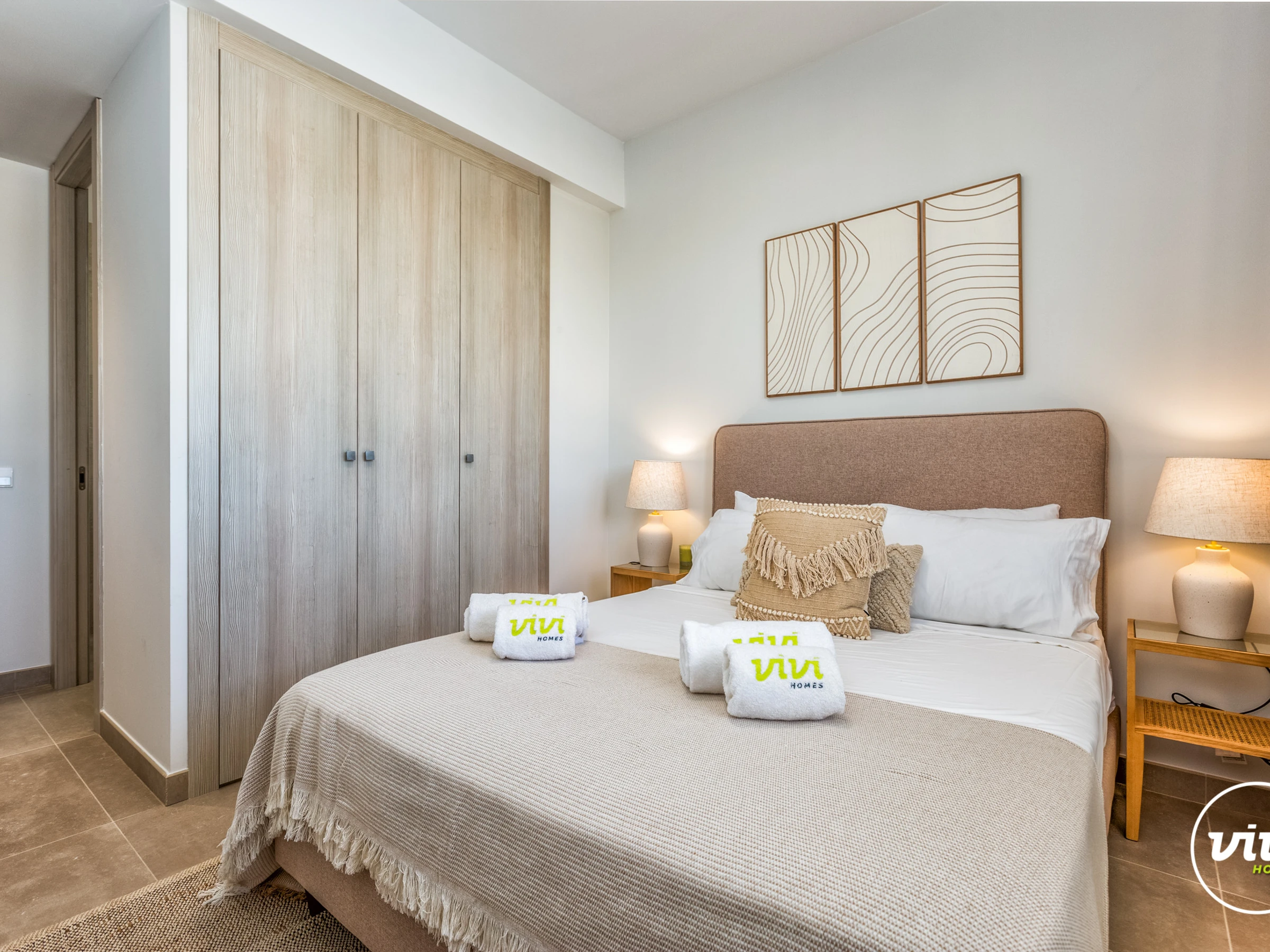 Logement de 135 m² joli et moderne, situé en front de plage, avec vue sur la mer et le jardin.