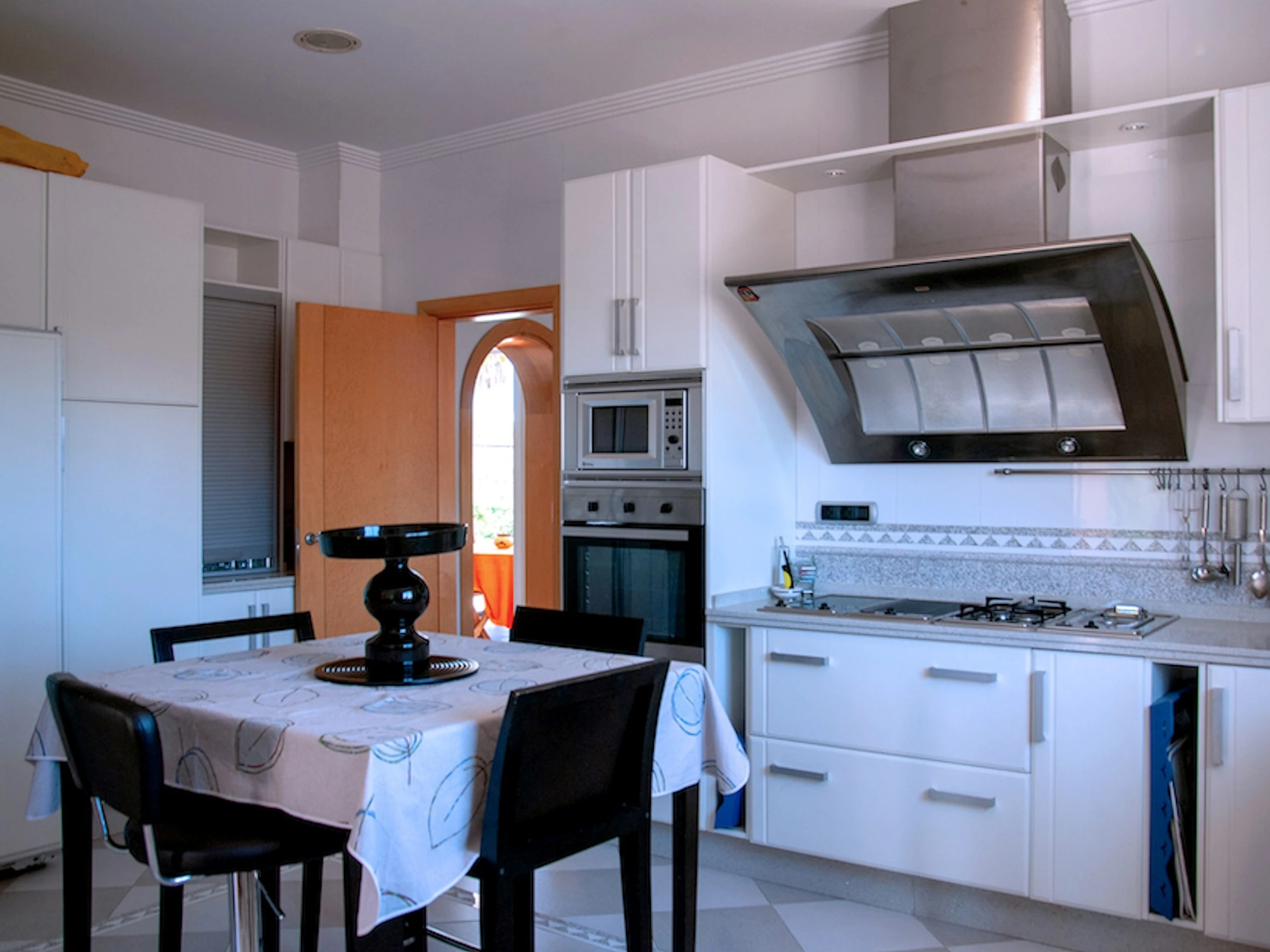 La cuisine, est équipée avec réfrigérateur, micro-ondes, four, lave-vaisselle, cafetière et grille pain.