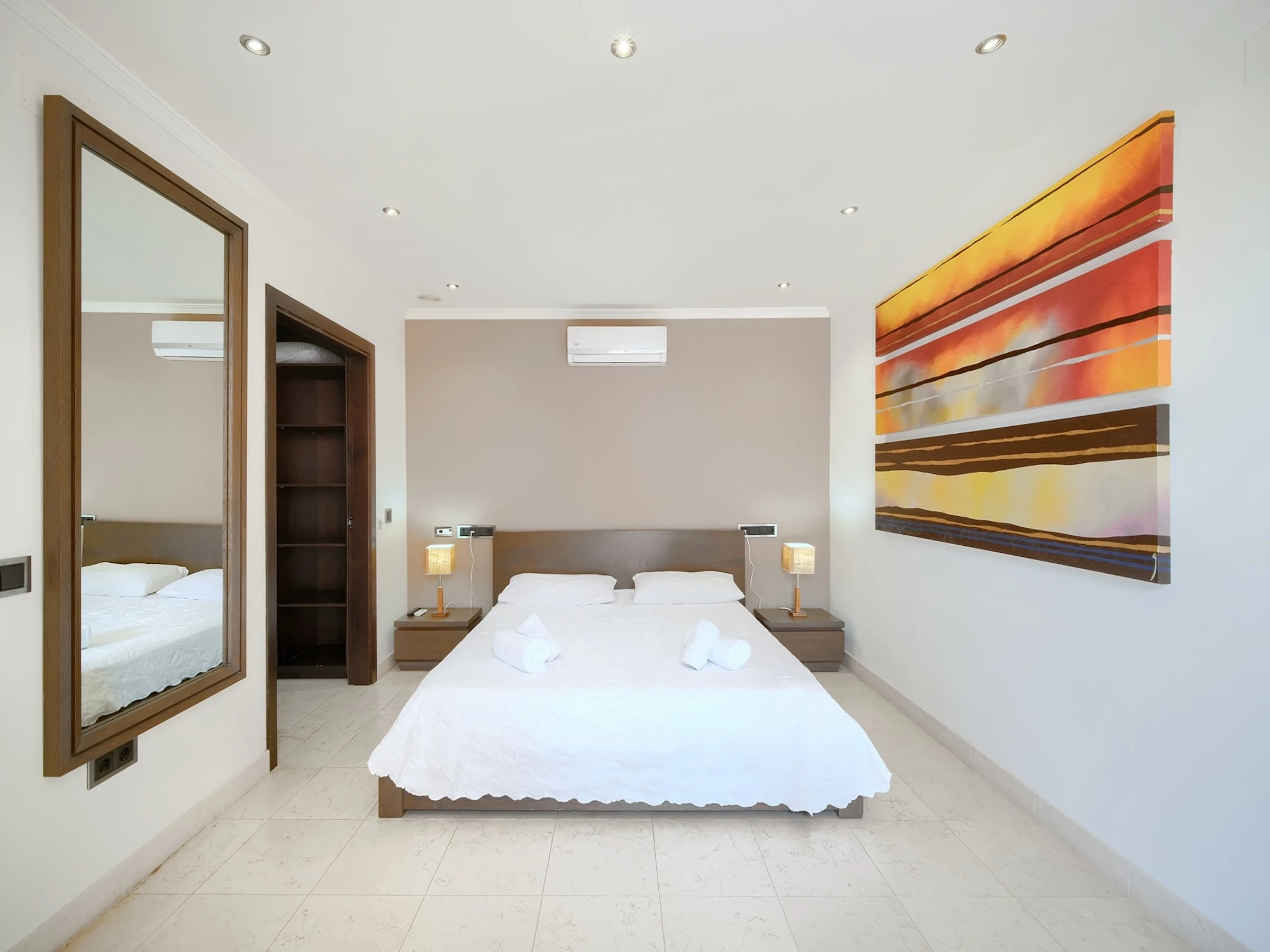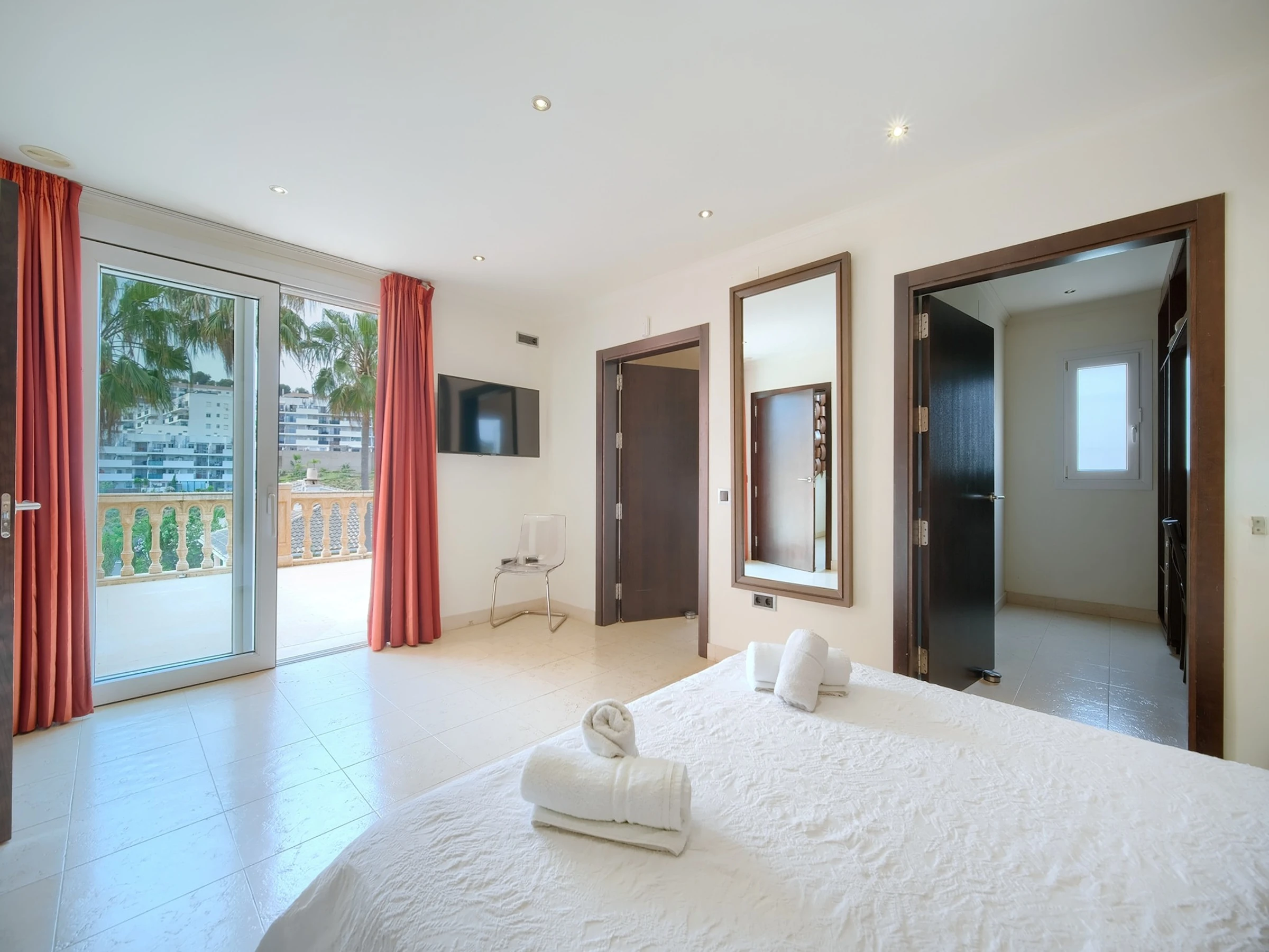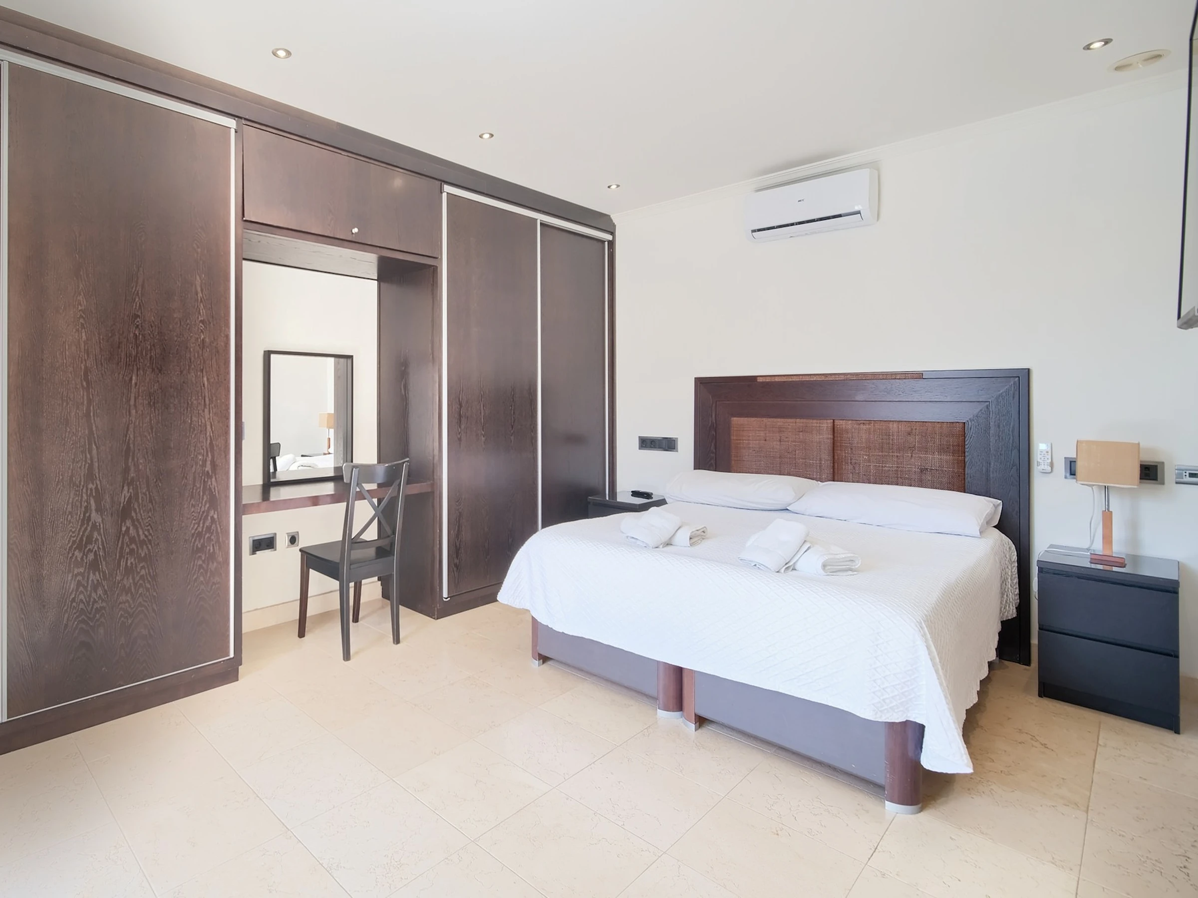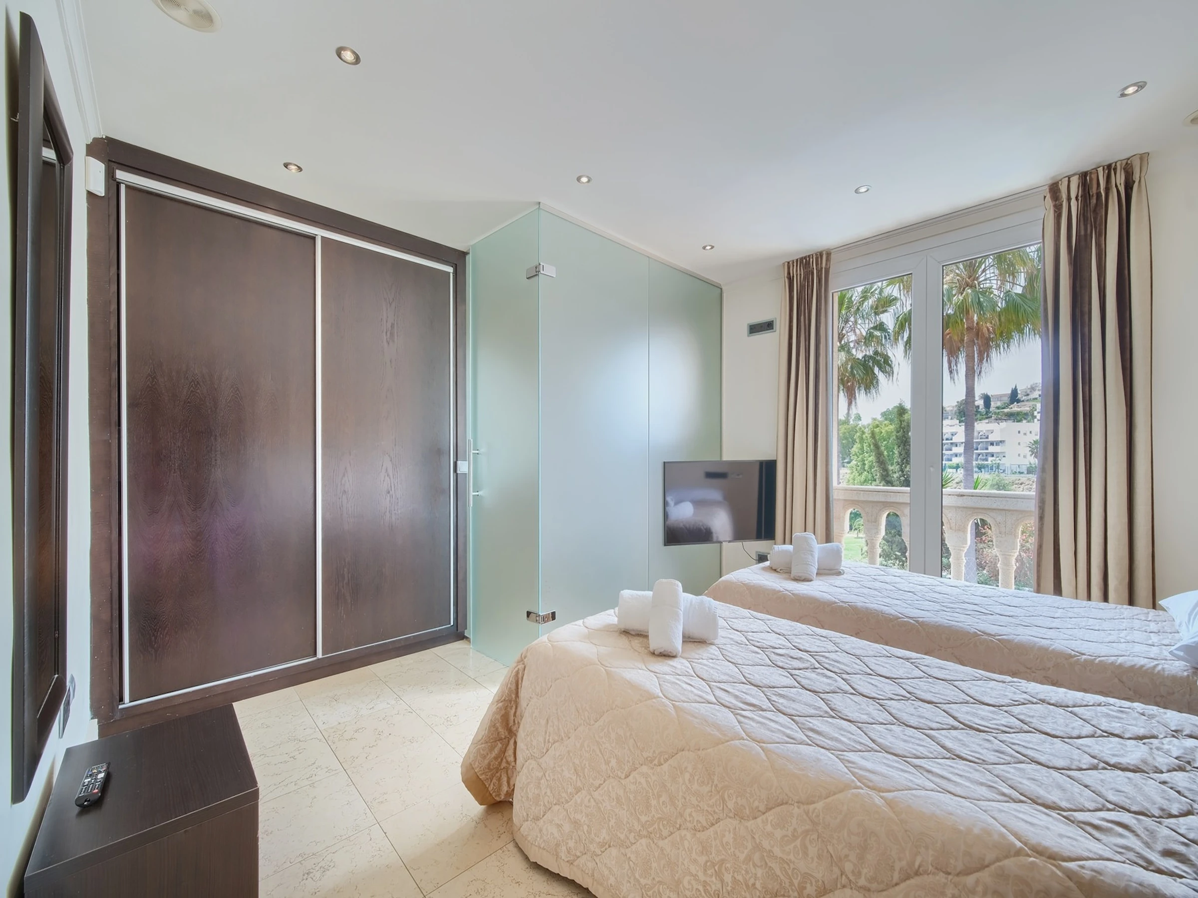 Elle dispose de lave-linge, sèche-linge, sèche-cheveux, balcon, salle de sport, sauna, jacuzzi, chauffage central, climatisation, 1 Télévision.