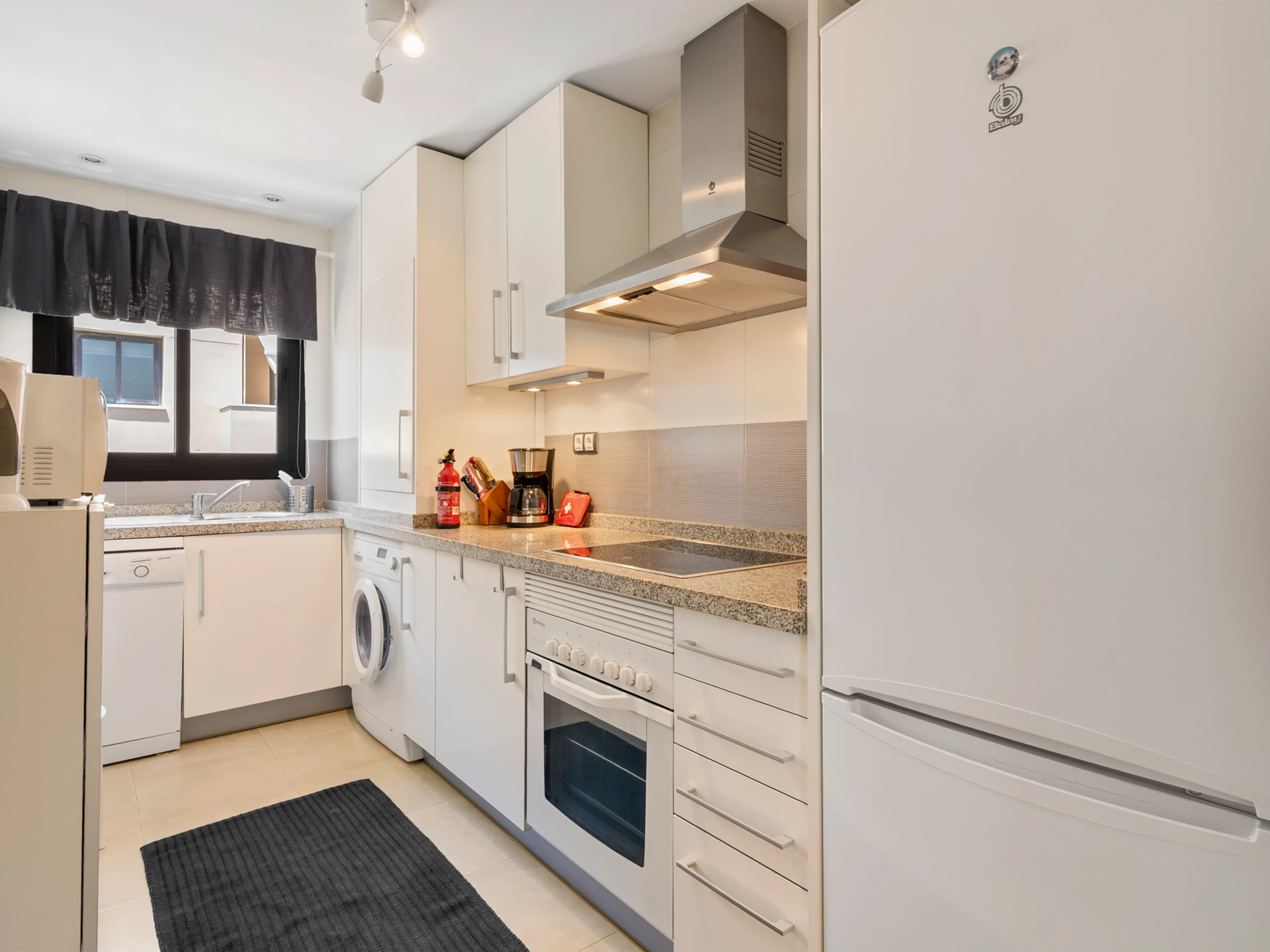 La cuisine, est équipée avec réfrigérateur, micro-ondes, four, congélateur, lave-vaisselle, ustensiles/cuisine, cafetière, grille pain et bouilloire.