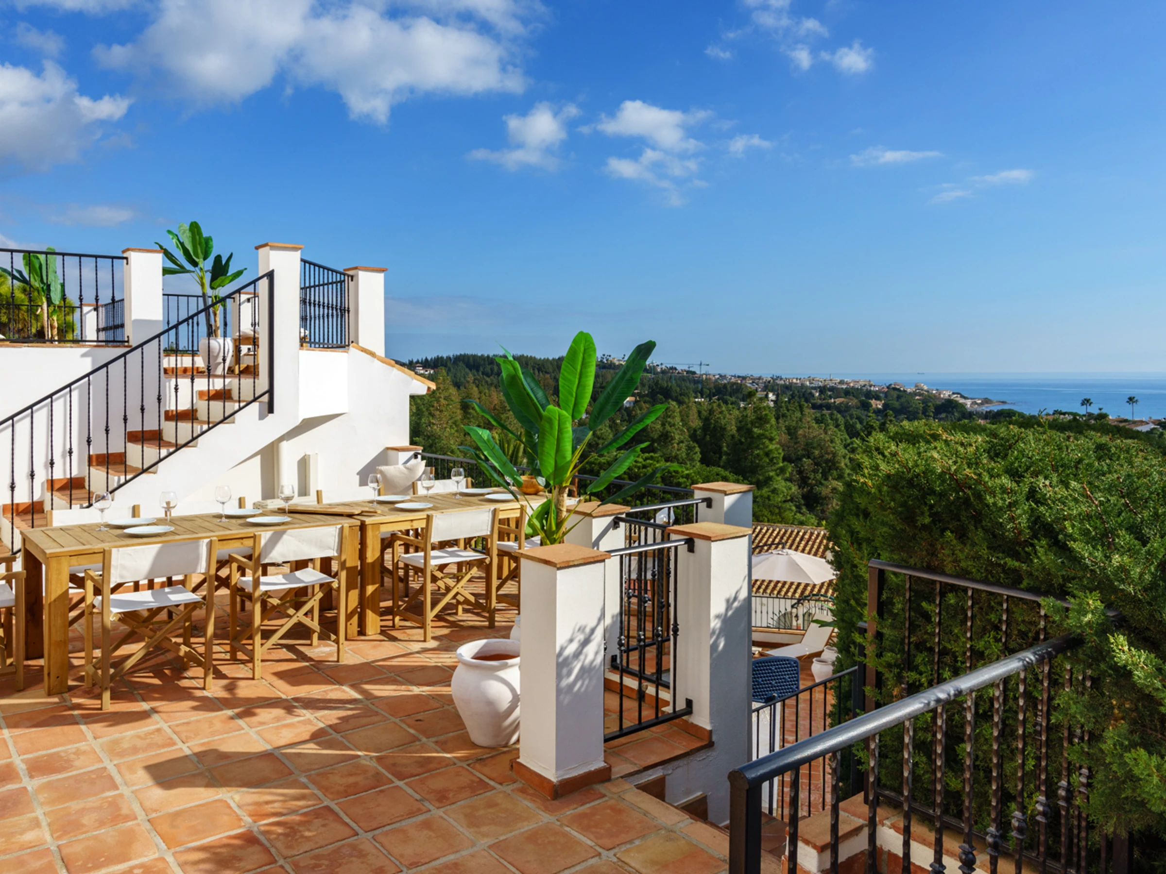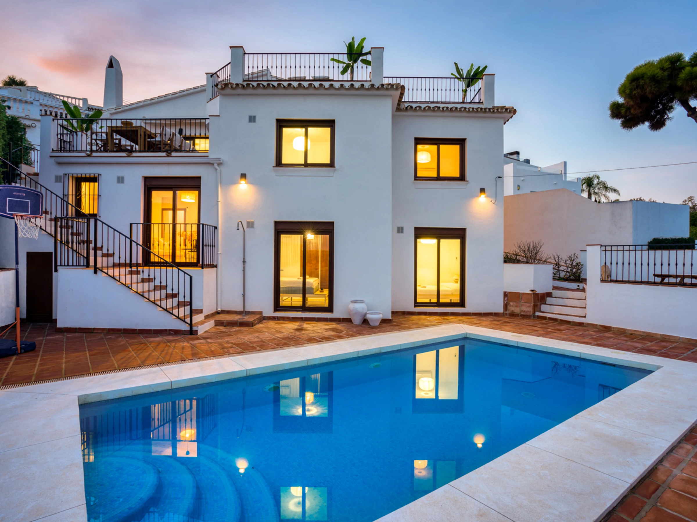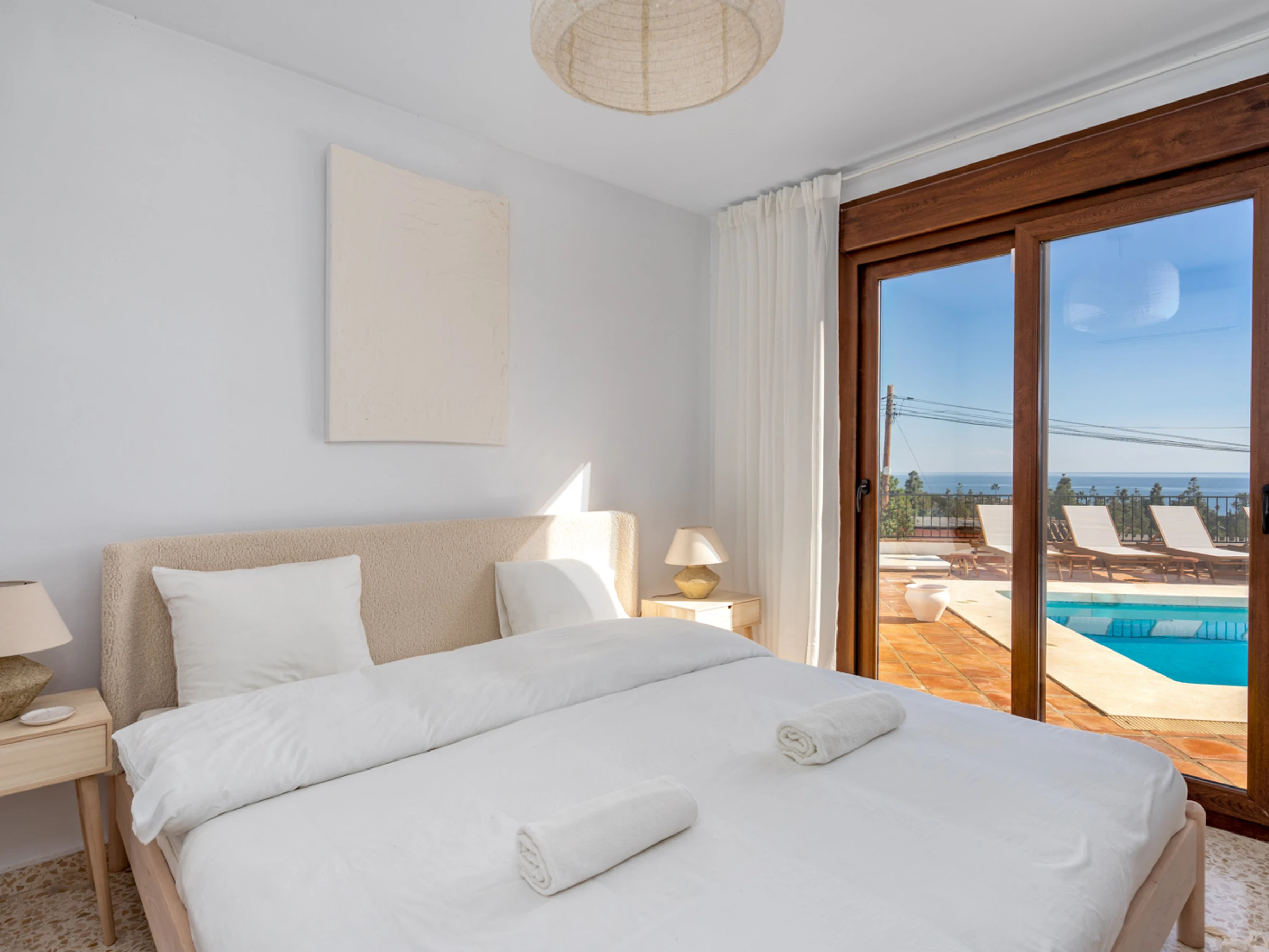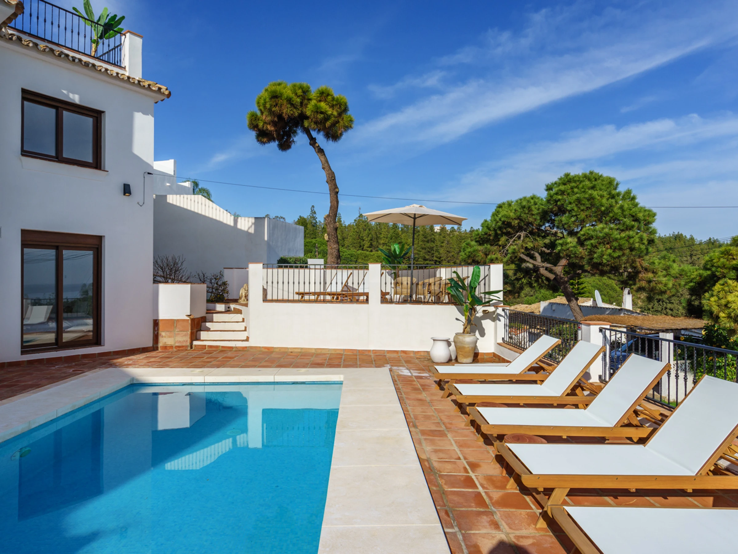 Évadez-vous en Méditerranée avec style grâce à cette luxueuse villa de 6 chambres et 4 salles de bain, située à seulement 750 m à pied de la charmante ville de La Cala de Mijas. Cette superbe propriété allie harmonieusement intérieur et extérieur, ce qui en fait le lieu de vacances idéal pour les familles ou les groupes d'amis. Son atout majeur est sa piscine privée et sa vue imprenable, où vous pourrez profiter du soleil et de la brise méditerranéenne. L'espace piscine est également doté de nombreuses chaises longues et d'un salon de jardin, idéal pour se divertir ou se détendre. La terrasse offre une atmosphère sereine et paisible. À l'intérieur, la villa est joliment décorée et bien équipée, avec tout le confort nécessaire pour un séjour confortable et inoubliable. Le spacieux séjour, idéal pour recevoir, offre des sièges confortables et une lumière naturelle abondante. La cuisine est entièrement équipée avec tout le nécessaire pour préparer vos repas, des appareils électroménagers modernes et un grand plan de travail. Chacune des six chambres est décorée avec goût et dispose de lits confortables et de nombreux rangements. Elles sont parfaites pour une nuit de sommeil paisible et offrent un refuge idéal après une journée de découverte de la région. Toutes équipées de la climatisation. La villa est située à seulement 10 minutes de certaines des plus belles plages de la région, ce qui en fait le point de départ idéal pour explorer les environs. La Cala de Mijas est une charmante ville qui regorge de restaurants, de bars et de boutiques. Elle abrite également un magnifique port de plaisance, idéal pour se promener et profiter des paysages et des sons de la Méditerranée. Cette magnifique villa est le lieu de vacances idéal pour ceux qui souhaitent s'évader du quotidien et profiter de la Méditerranée avec style. Offrant un espace généreux, elle est idéale pour les familles ou les groupes d'amis. Ne manquez pas l'occasion de créer des souvenirs inoubliables dans cette magnifique villa. Réservez votre séjour dès aujourd'hui ! Les frais de ménage comprennent un jeu de draps, de serviettes et de serviettes de piscine par personne. Le centre-ville regorge de boutiques, de restaurants et de bars, ce qui en fait l'endroit idéal pour sortir le soir. Vous y trouverez de tout, des bars à tapas traditionnels aux restaurants internationaux et aux cafés branchés. Le centre-ville accueille également un marché hebdomadaire où vous trouverez une grande variété de produits locaux, tels que des fruits et légumes frais, des vêtements et de l'artisanat. Pour des vacances plus actives, La Cala de Mijas offre de nombreuses activités de plein air. La ville est entourée de magnifiques montagnes, offrant une variété de sentiers de randonnée et de vélo. Elle compte également plusieurs terrains de golf, ce qui en fait une destination prisée des golfeurs. La Cala de Mijas est une charmante ville qui a de quoi satisfaire tous les goûts. Que vous recherchiez des vacances relaxantes à la plage ou une aventure riche en activités, vous trouverez votre bonheur ici. Avec ses belles plages, ses délicieux fruits de mer et sa culture dynamique, La Cala de Mijas est la destination idéale pour vos prochaines vacances. Forfait bébé 39 € : lit et chaise haute inclus, sur demande et sous réserve de disponibilité.